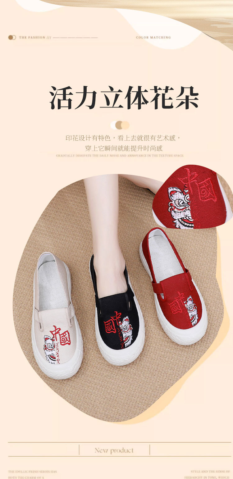 봄과 여름 오래 된 베이징 새로운 여성 소프트 솔 캔버스 신발 경량 두꺼운 유일한 게으른 신발 패션 웨스턴 스타일 올 매치 어부 신발스토어 가기