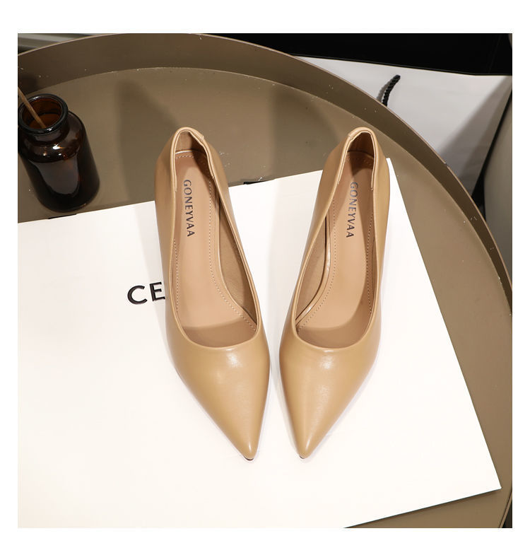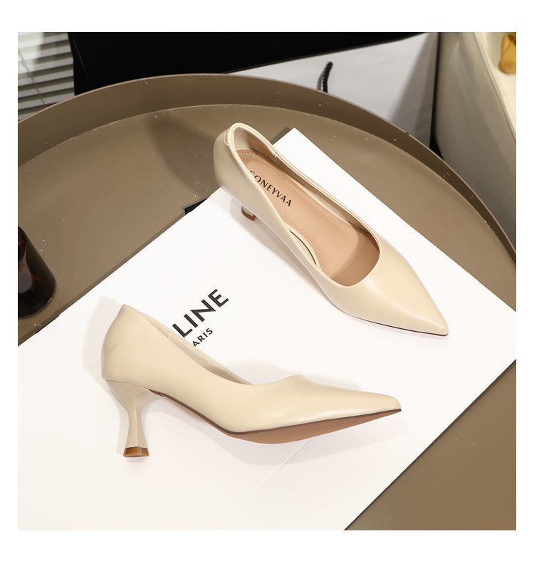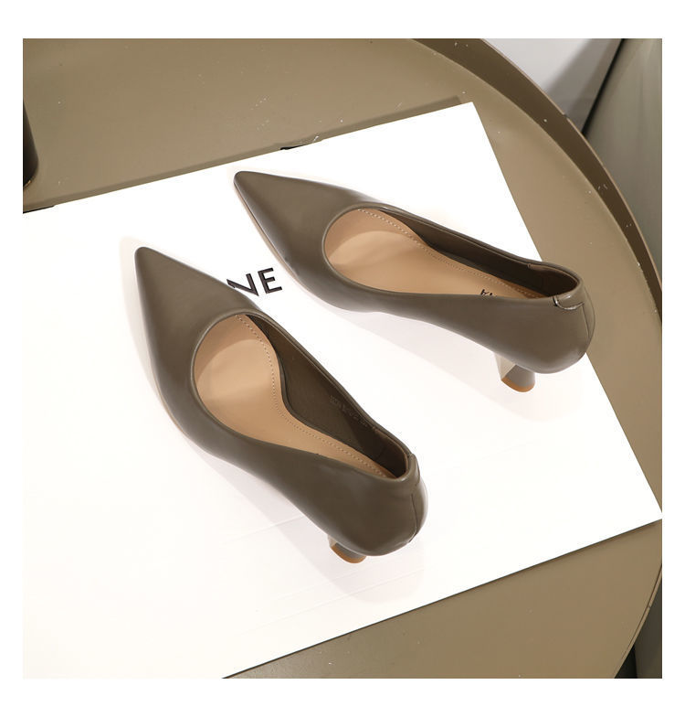 스몰 사이즈 313233 스틸레토 힐 부드러운 가죽 하이힐 봄과 여름 2024 새로운 우유 차 패션 다용도 신발 여성 41