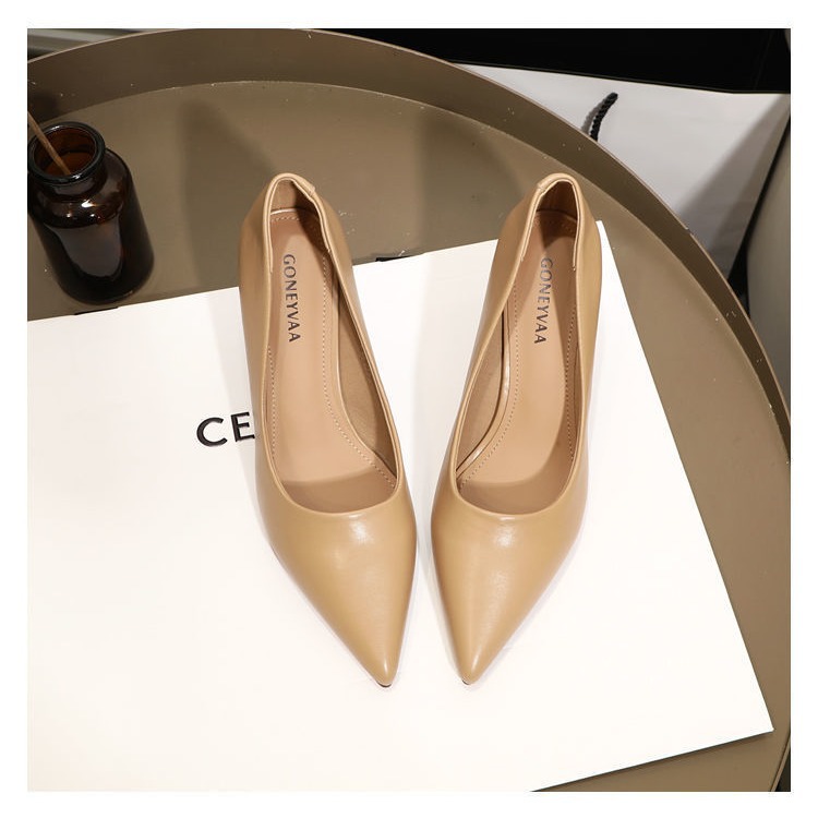 스몰 사이즈 313233 스틸레토 힐 부드러운 가죽 하이힐 봄과 여름 2024 새로운 우유 차 패션 다용도 신발 여성 41스토어 가기