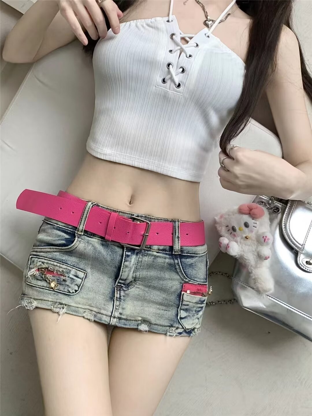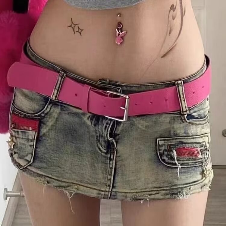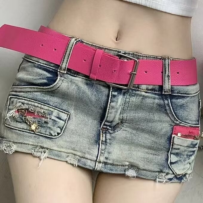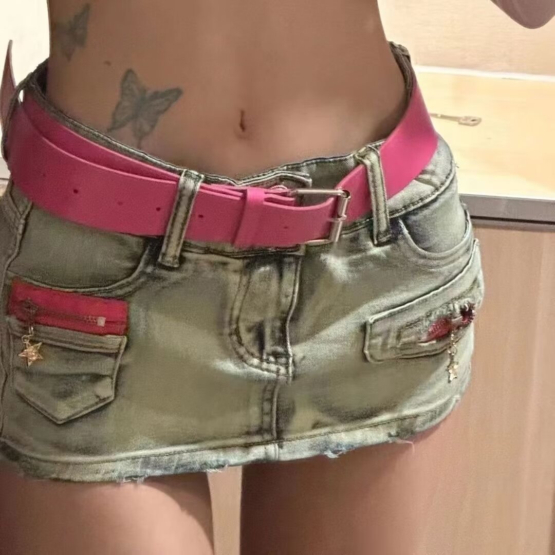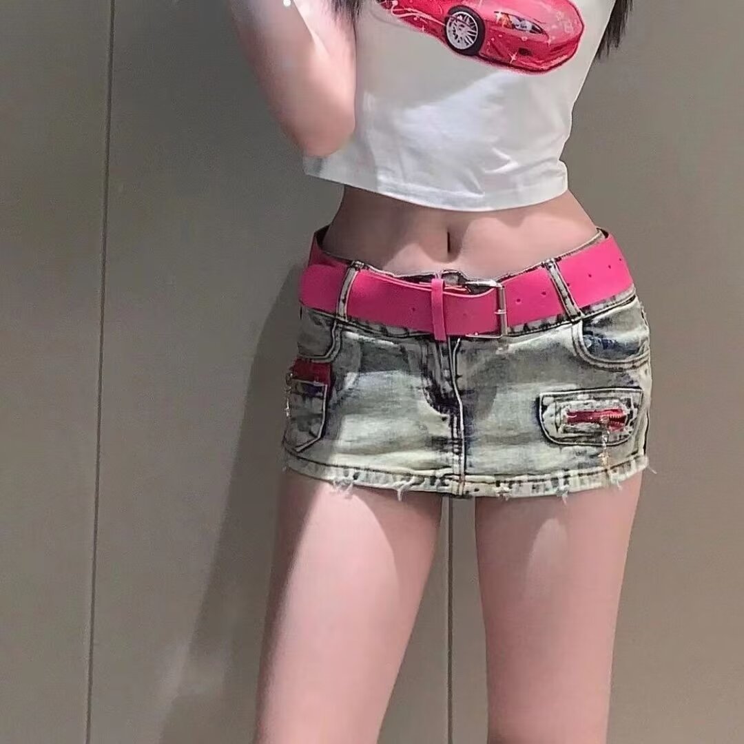 블루 데님 스커트 여성의 봄/여름 2024 낮은 허리 작은 디자인 감각 슬리밍 안티 러닝 핫 걸 반바지 스커트