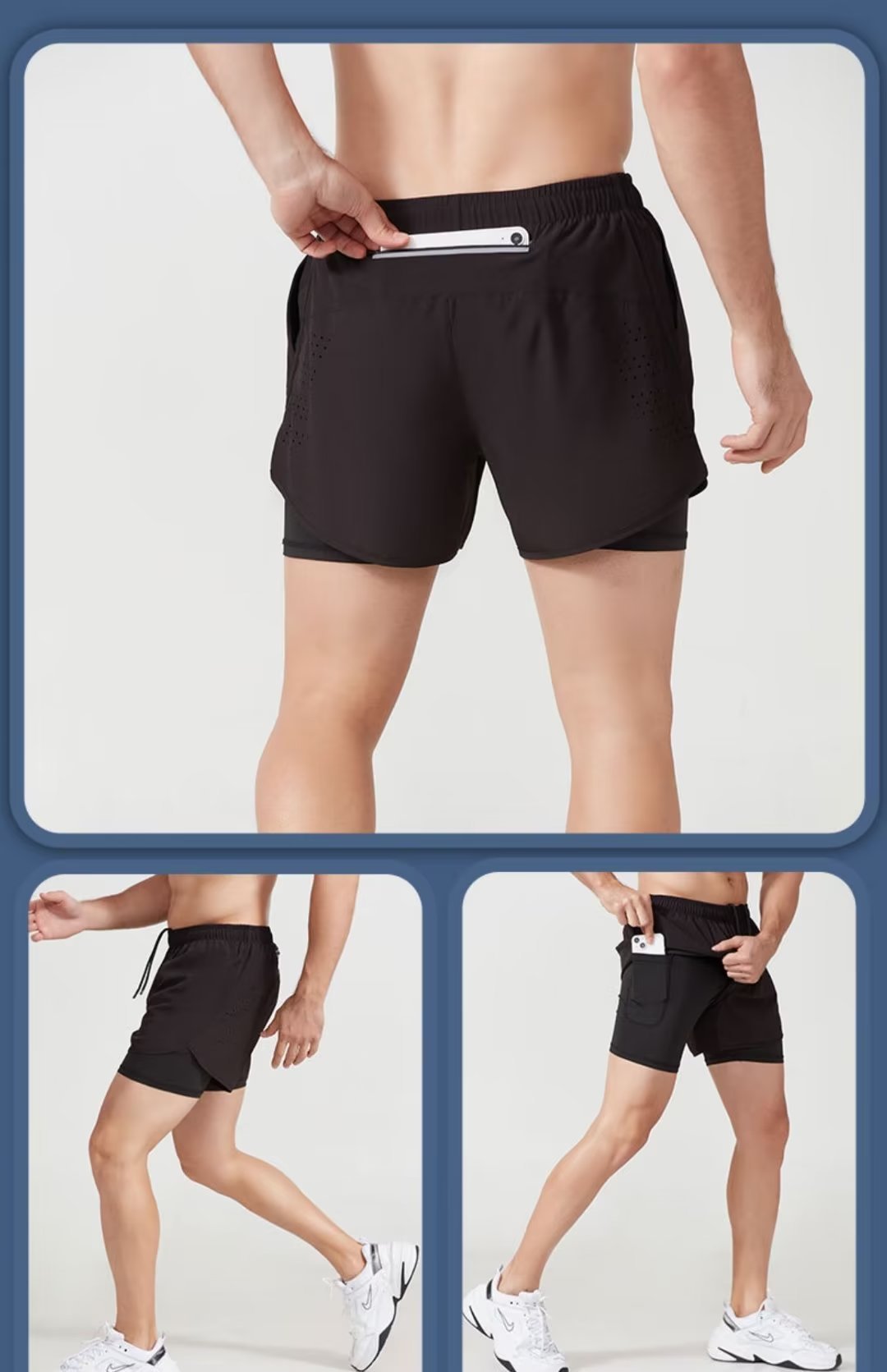 남성용 런닝반바지, 프로 마라톤 육상 3점팬츠, 속건 안감팬츠, 휴대폰 수납이 가능한 스포츠 페이크 투피스스토어 가기