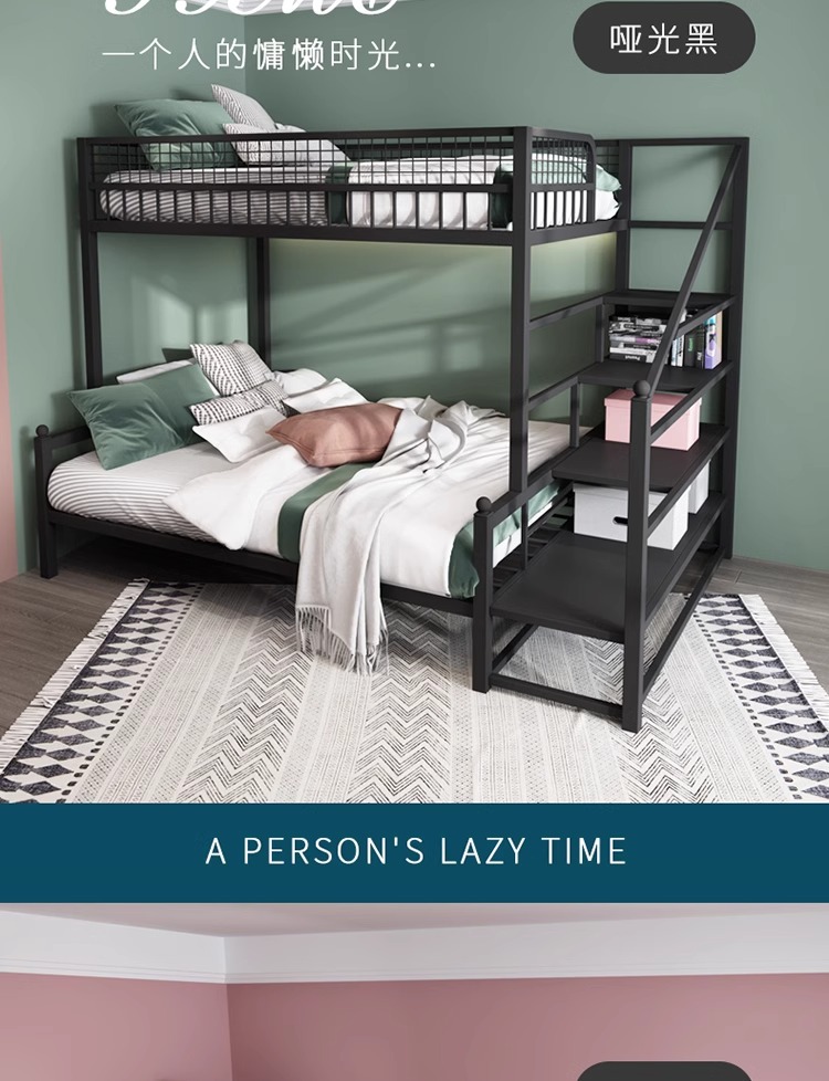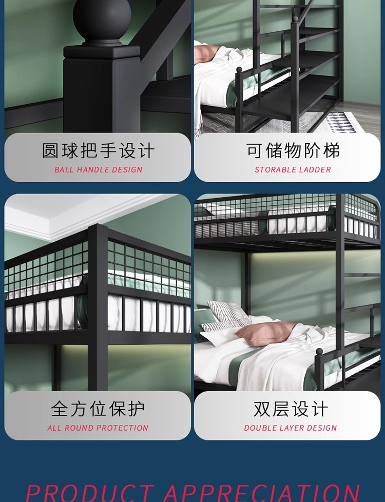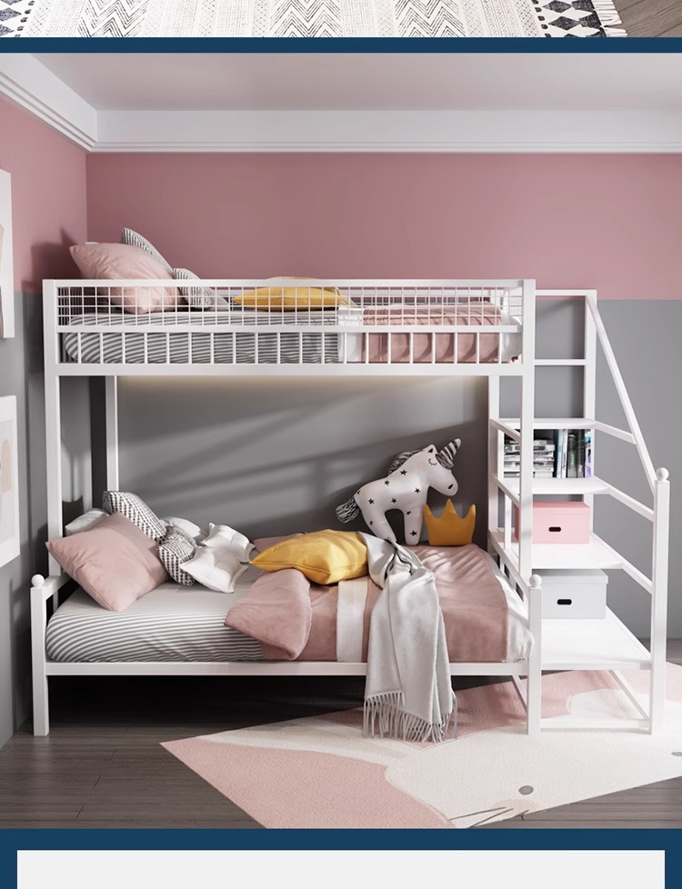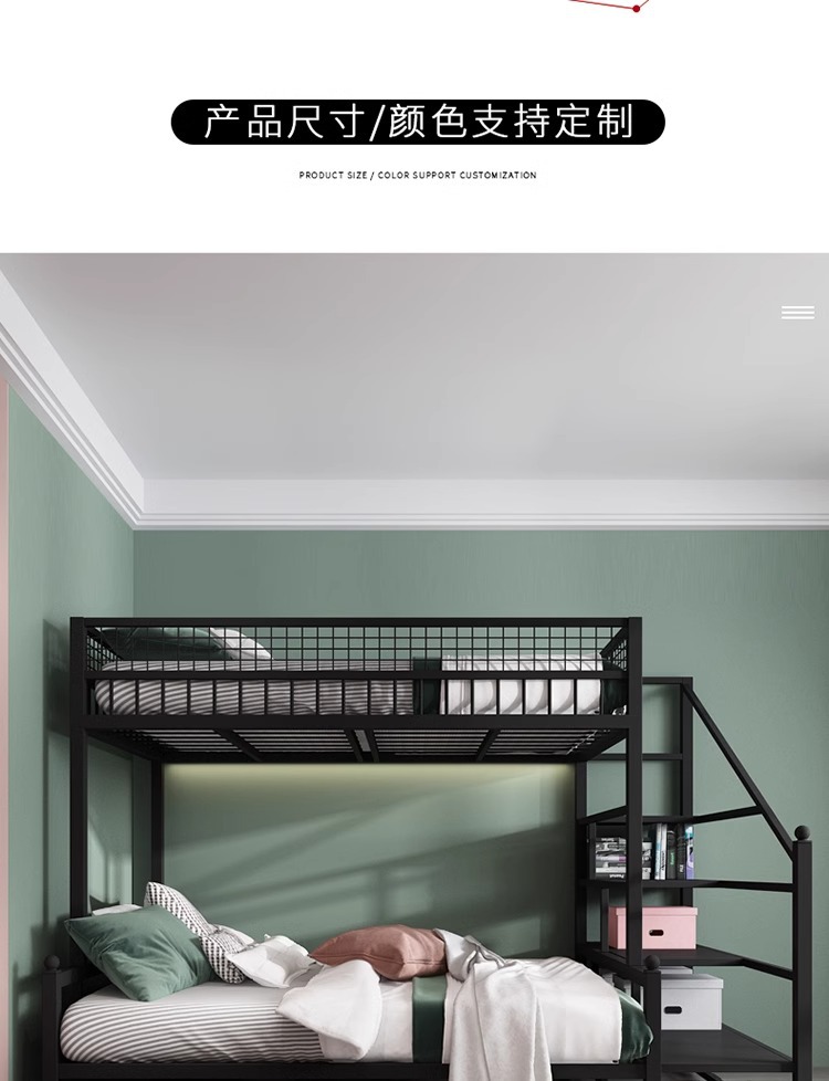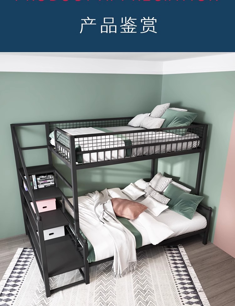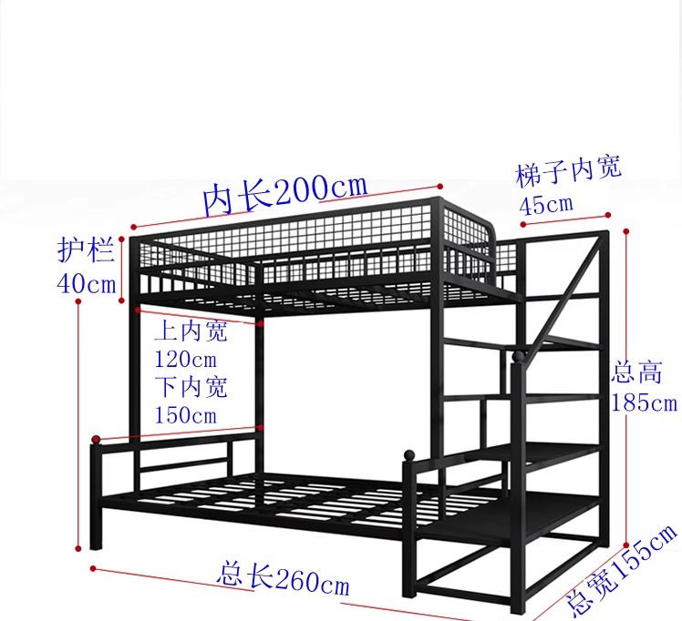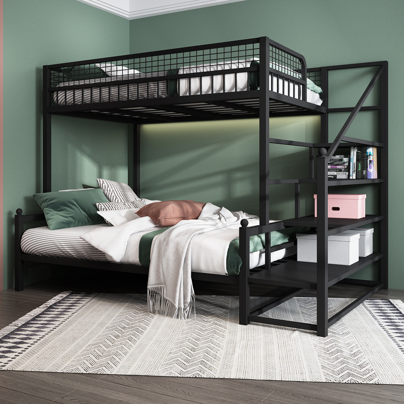 더블 침대 어린이 침대 어린이 높고 낮은 침대 공간 절약 기숙사 성인 철 프레임 침대 간단한 아파트 철 침대스토어 가기