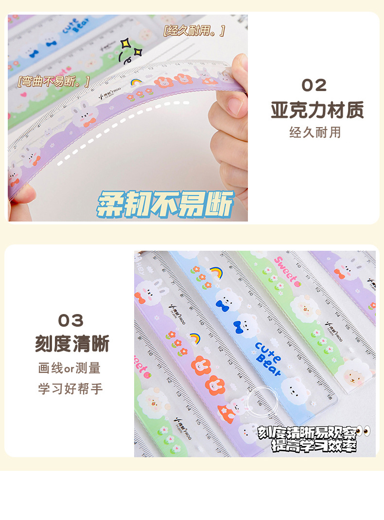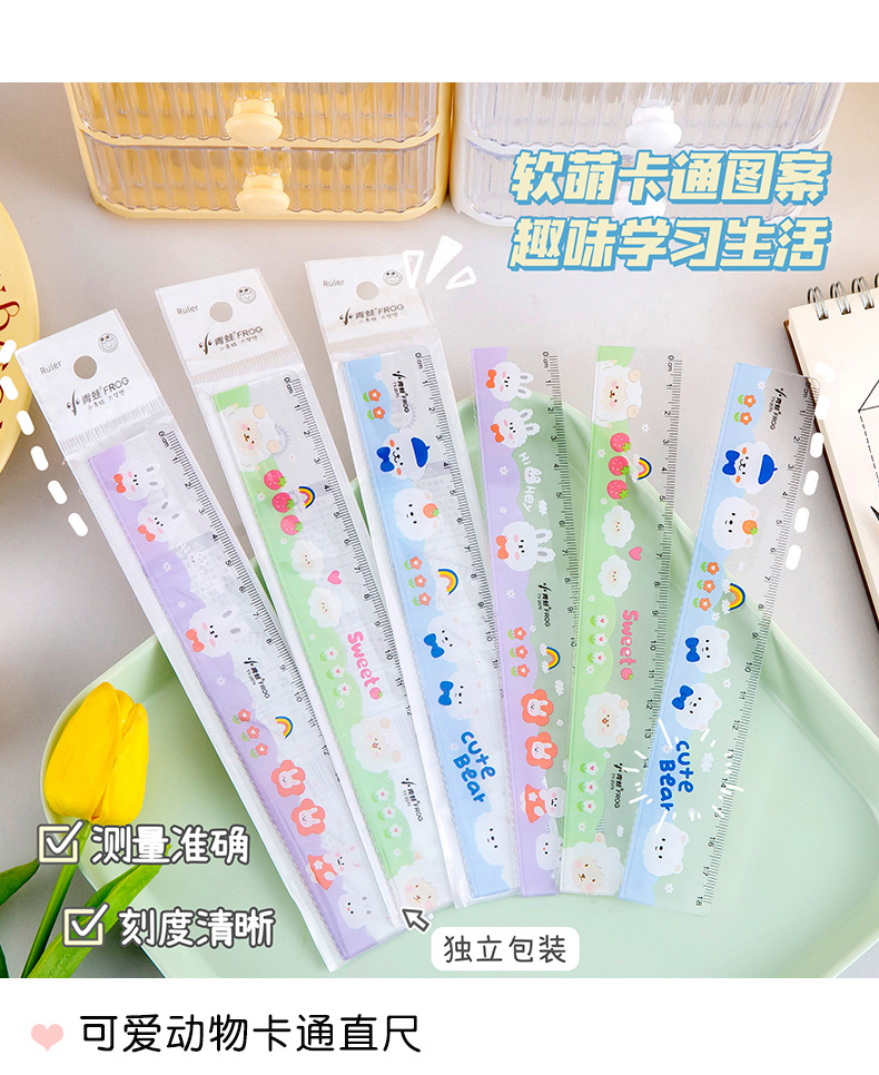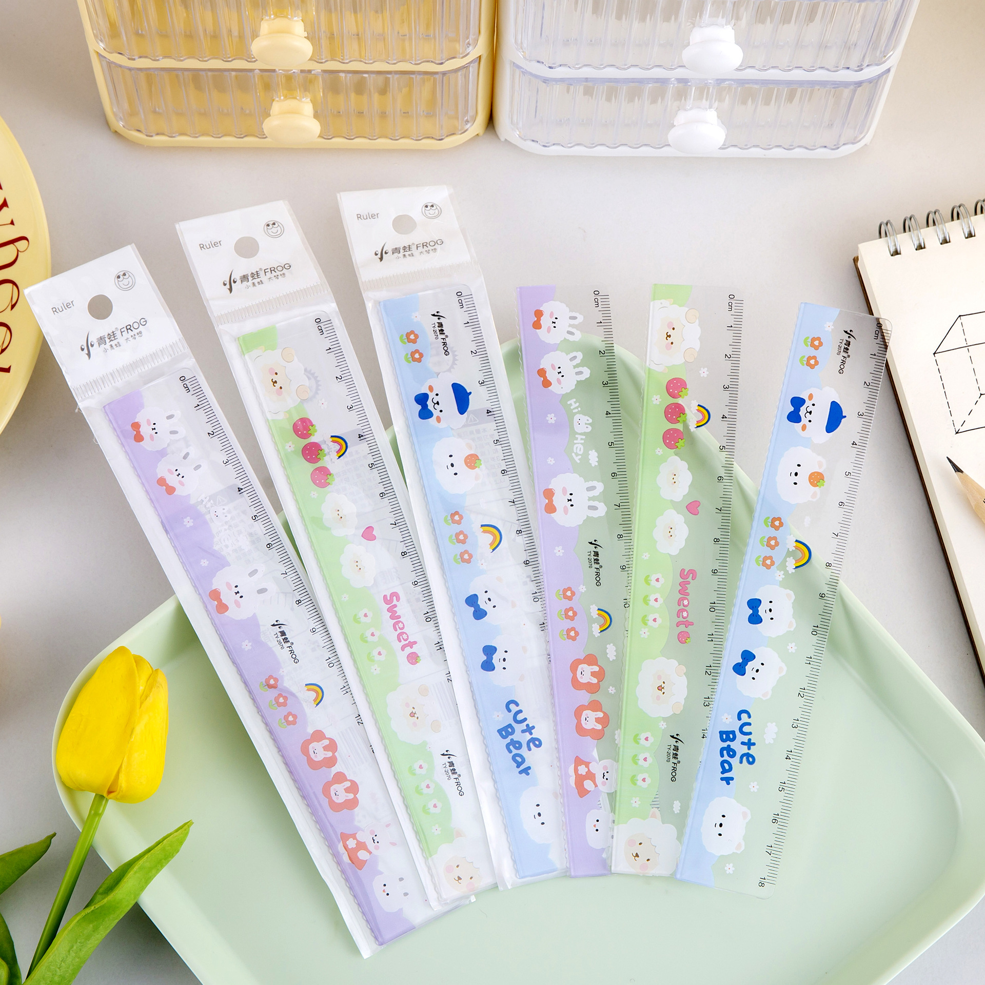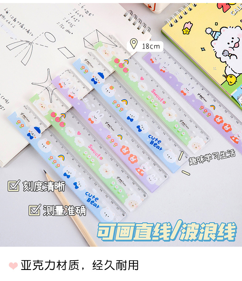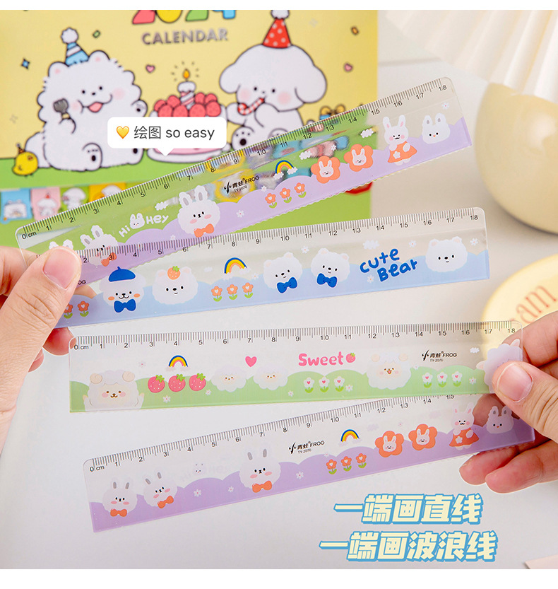 초등학교 만화 투명 통치자 18cm 어린이 다기능 드로잉 기하학적 통치자 도매 물결 선 통치자스토어 가기