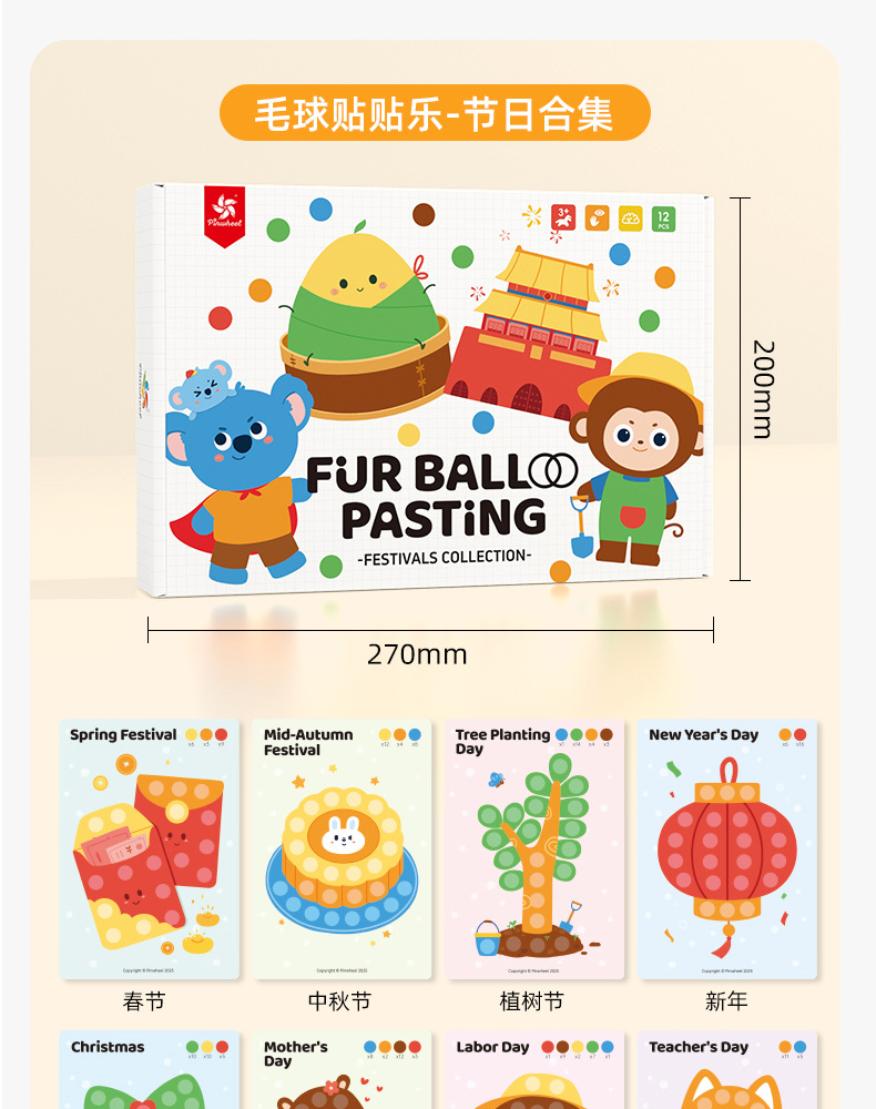 핀휠 모피 공 스티커 어린이 DIY 수제 창조적 인 소재 패키지 휴일 선물 인사말 카드 교육 장난감