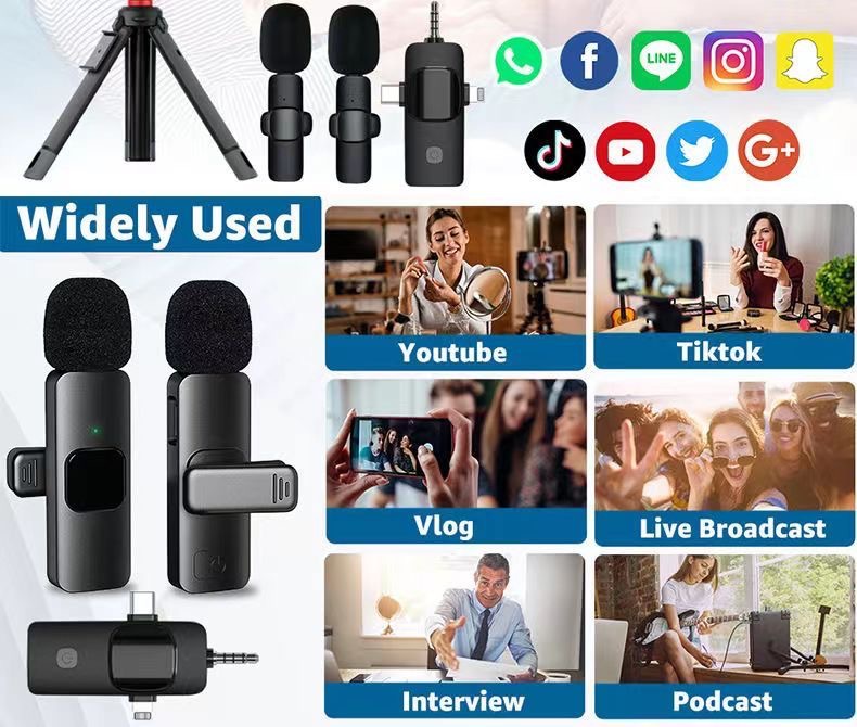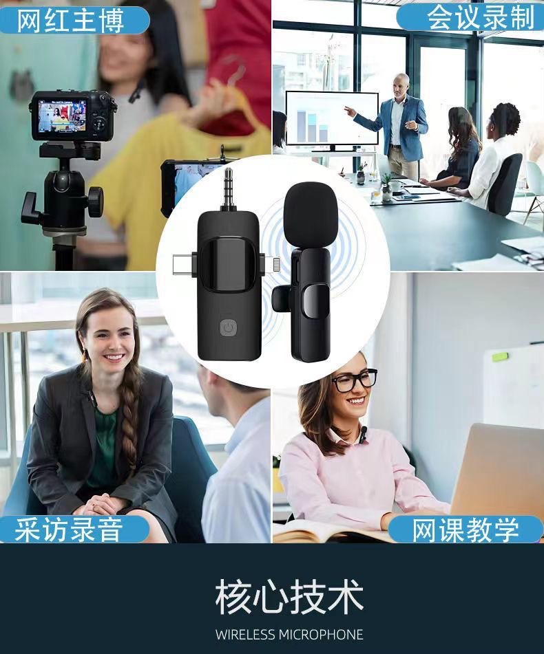 국경을 넘는 인기 상품 K15 라발리에 마이크 3-in-1 인터페이스 야외 라이브 방송 촬영 소음 감소 휴대용 마이크