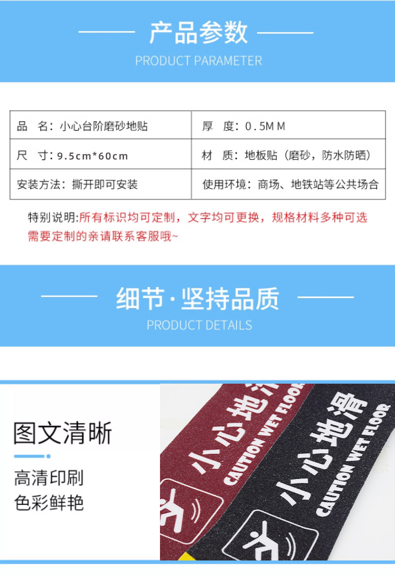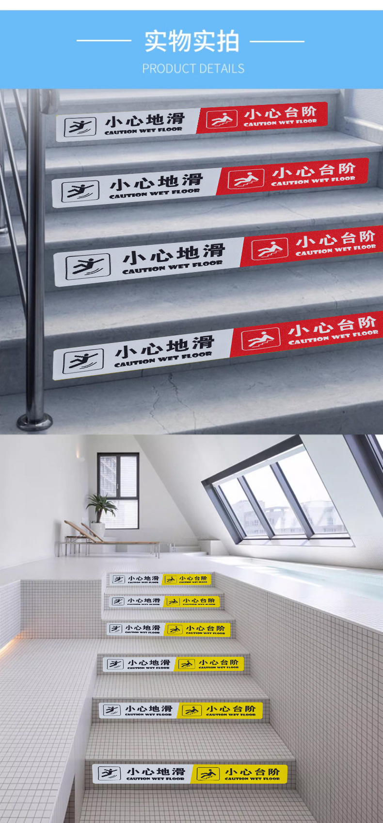 계단에 하이 스틱 계단을 붙이고 안전 표지판, 슬라이드 표지판, 경고 스티커, 미끄럼 방지 접착 테이프에주의하십시오.스토어 가기