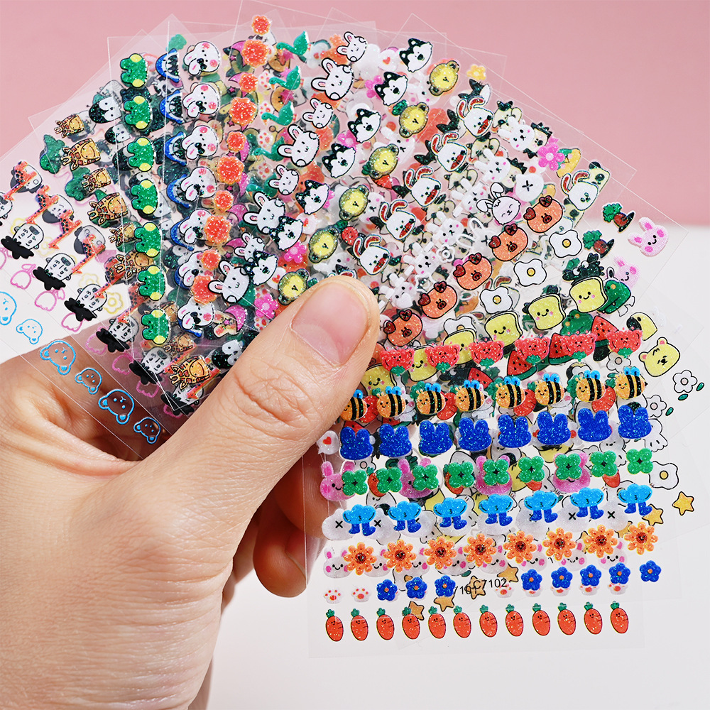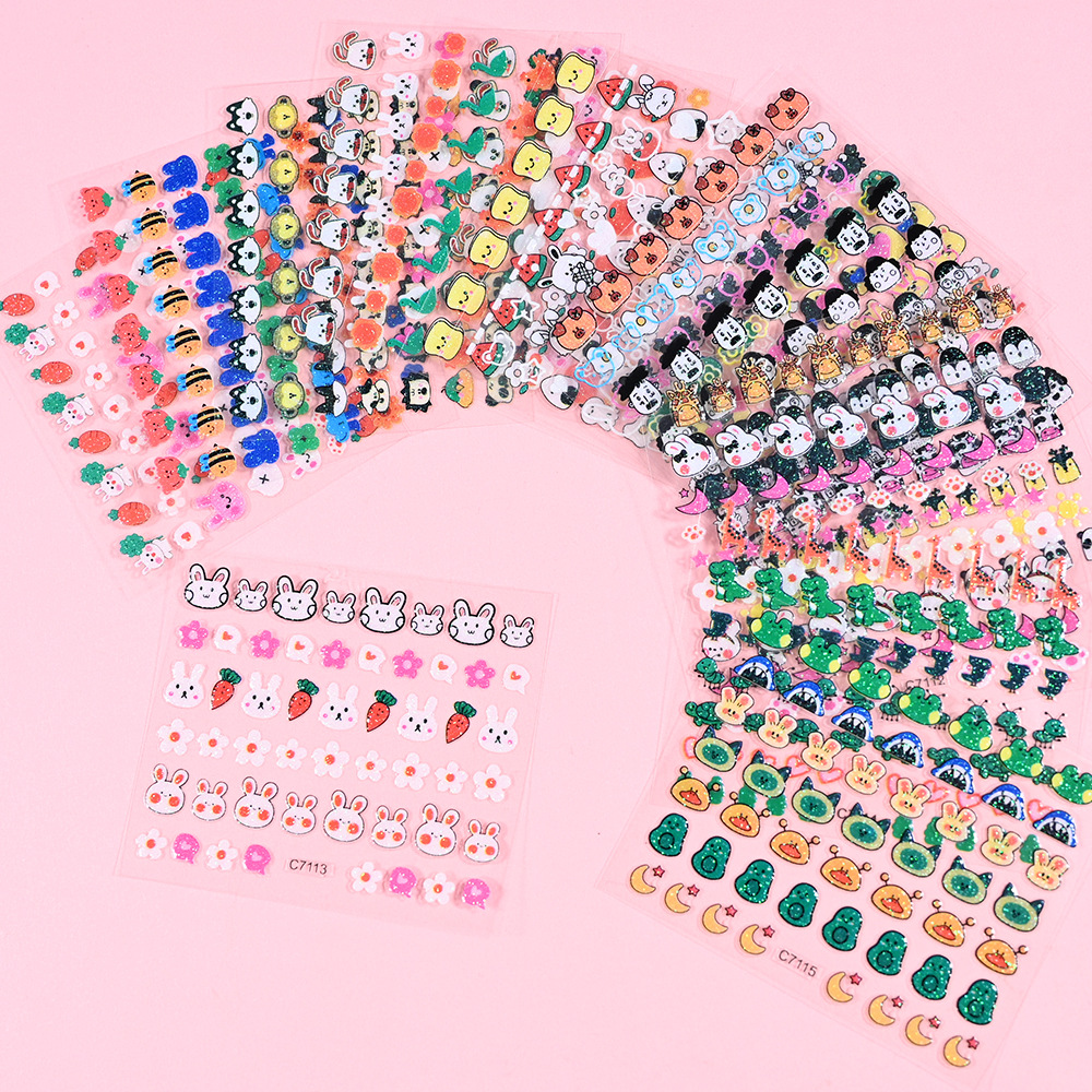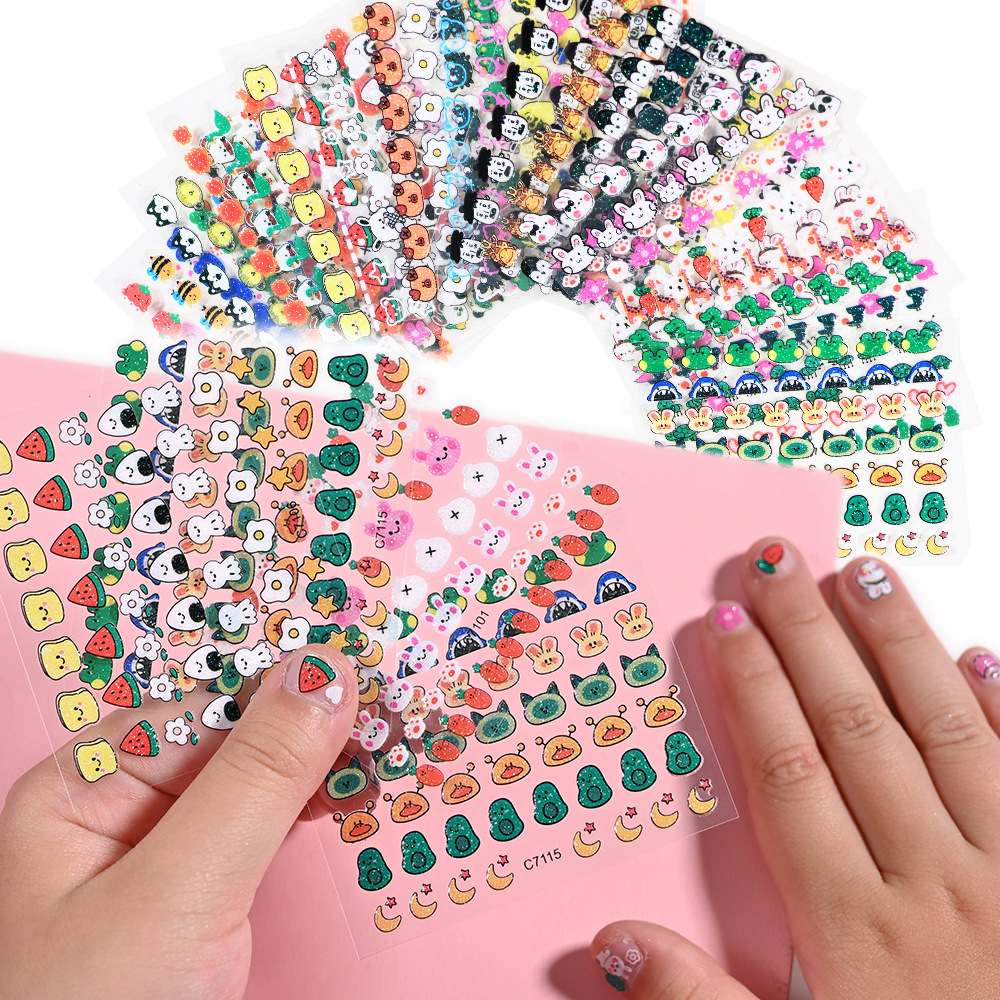 반짝이 토끼 어린이 네일 스티커 귀여운 만화 돼지 유치원 어린이 보너스 스티커 하프 팩 세트