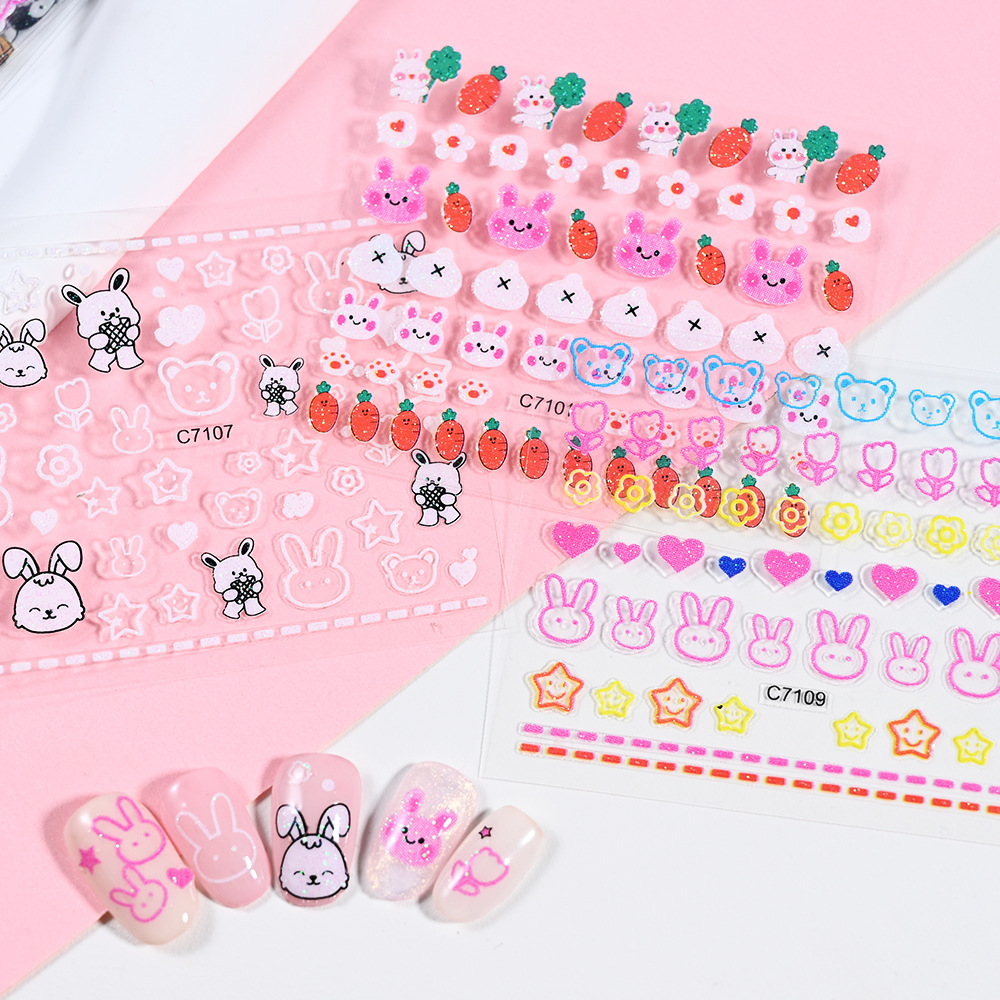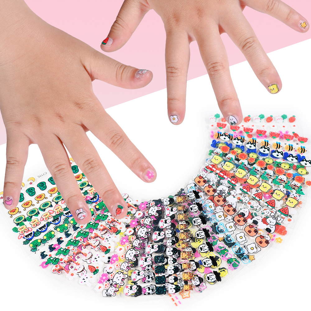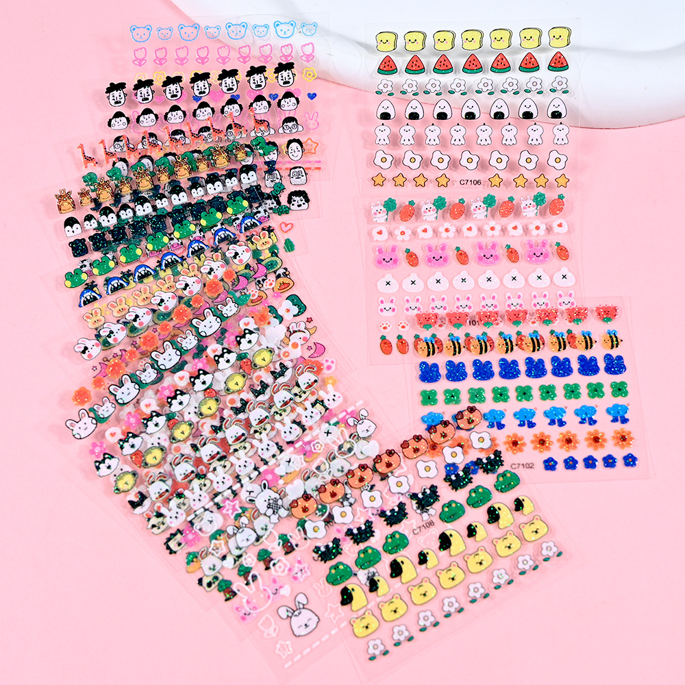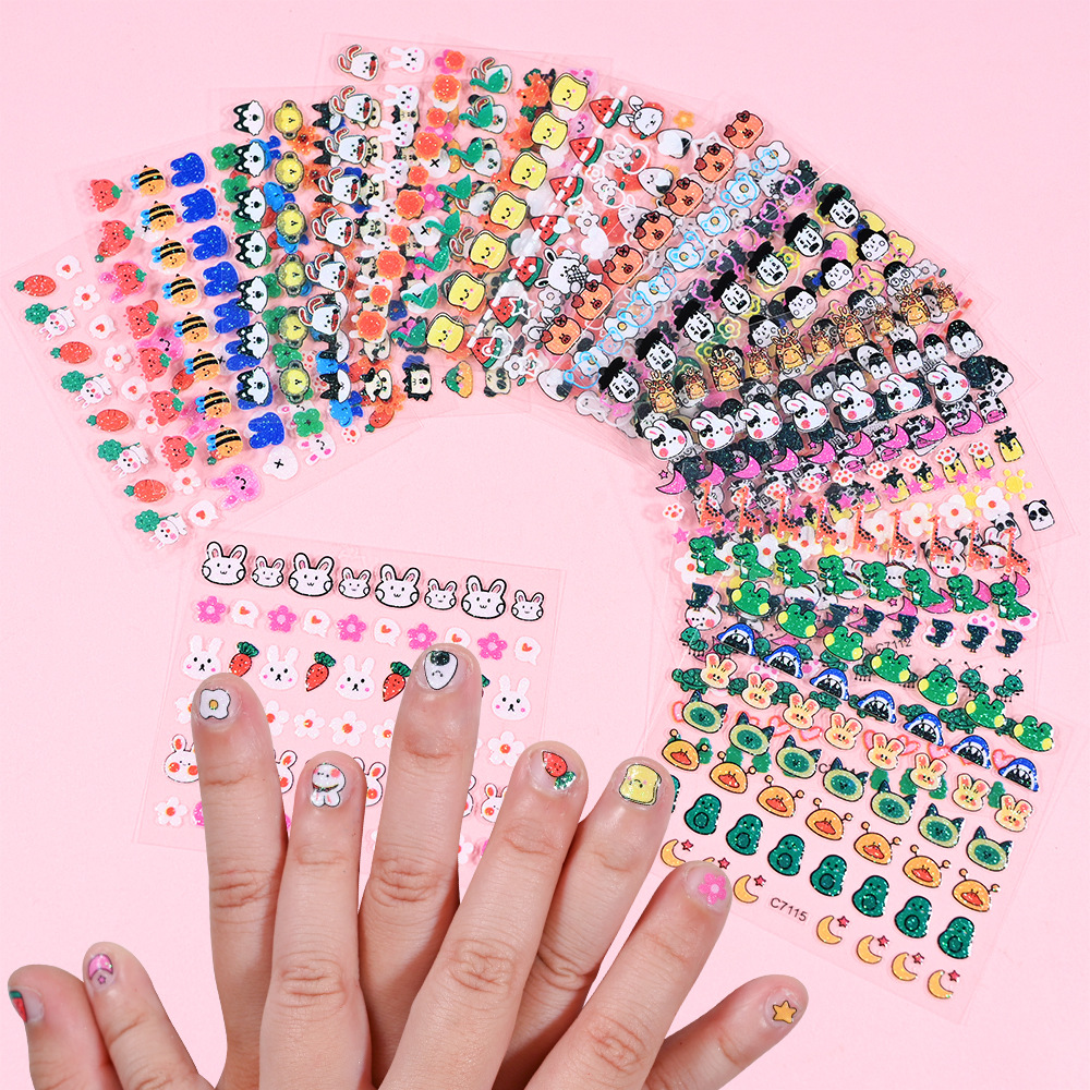 반짝이 토끼 어린이 네일 스티커 귀여운 만화 돼지 유치원 어린이 보너스 스티커 하프 팩 세트