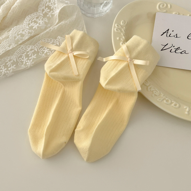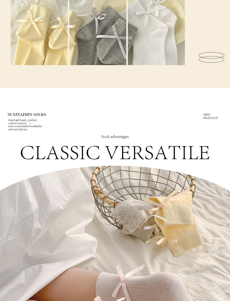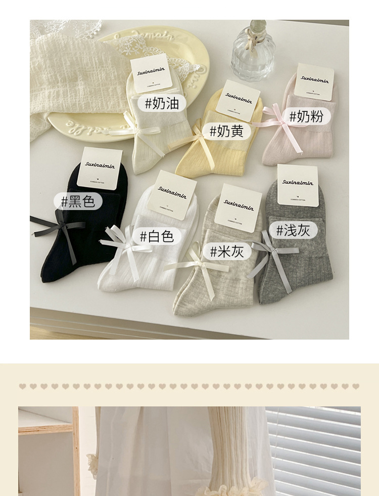 Suxinaimin 틈새 유행 디자인 일본 달콤한 귀여운 리본 활 크림 양말 인터넷 빨간 양말스토어 가기
