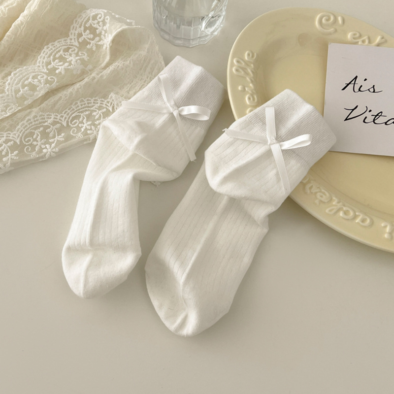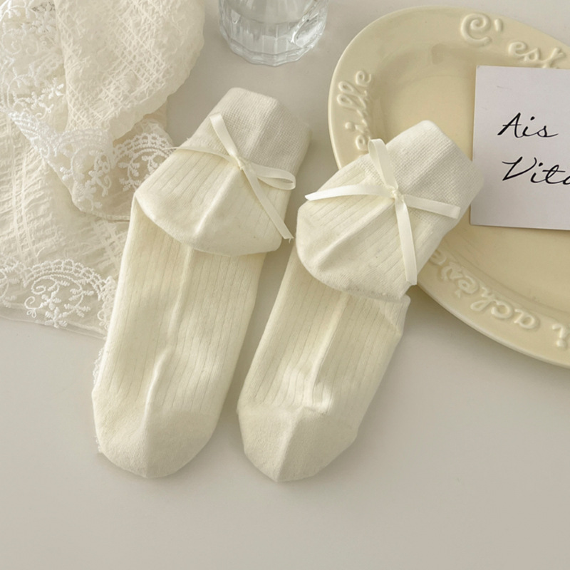 Suxinaimin 틈새 유행 디자인 일본 달콤한 귀여운 리본 활 크림 양말 인터넷 빨간 양말