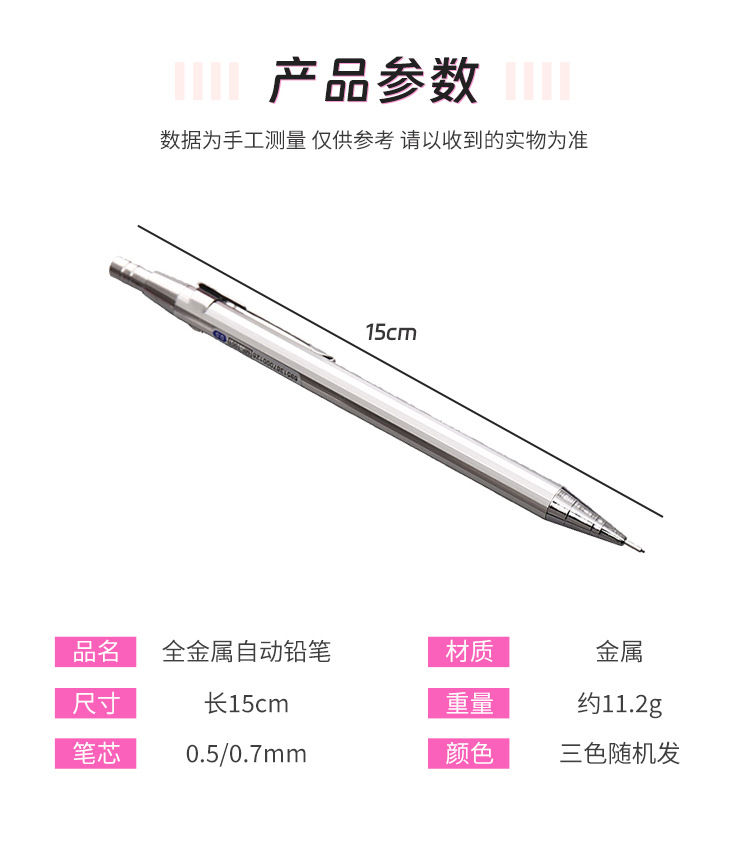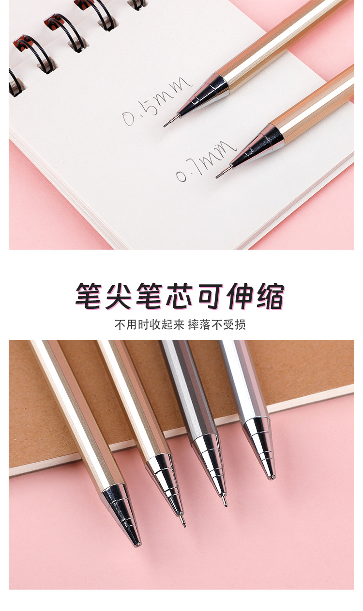 모든 금속 0.5/0.7mm 자동 연필 가을 내마모성 학생 활동 연필 공장 직접 문구 도매스토어 가기