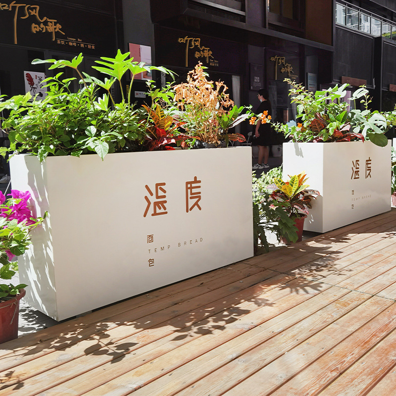 상업 거리 판매 부서 광장 꽃 침대 울타리 직사각형 꽃 냄비 꽃 줄기 외부 야외 단철 꽃 상자