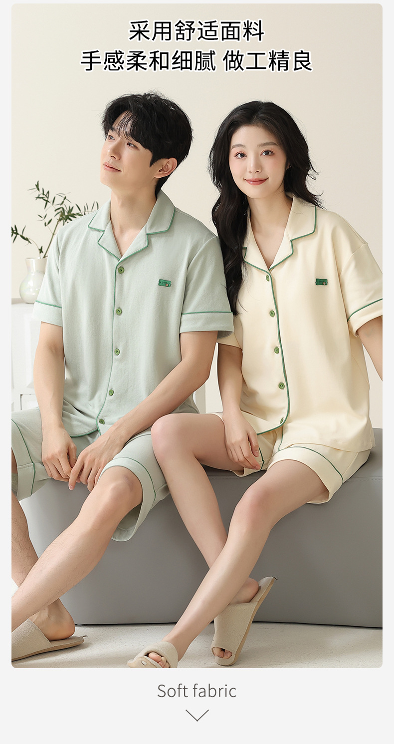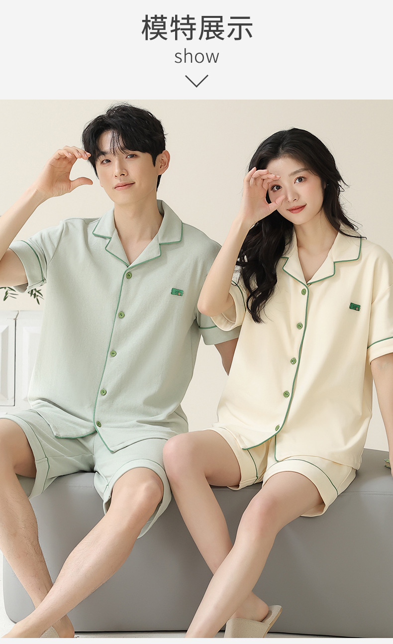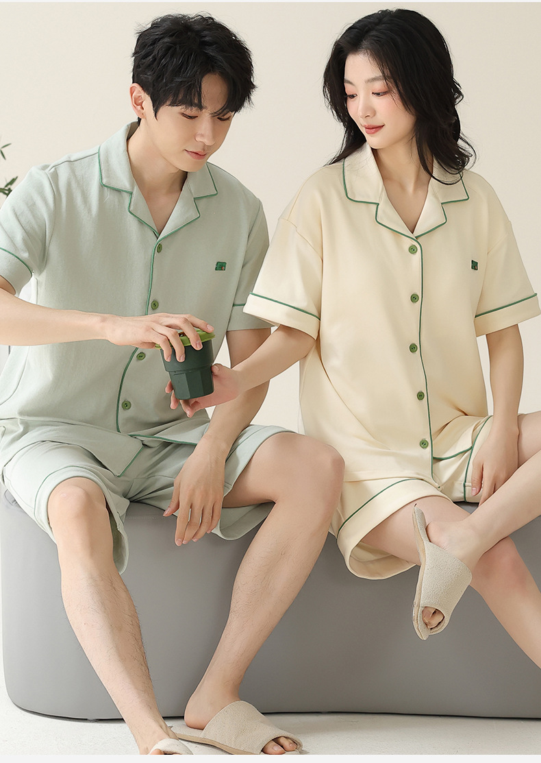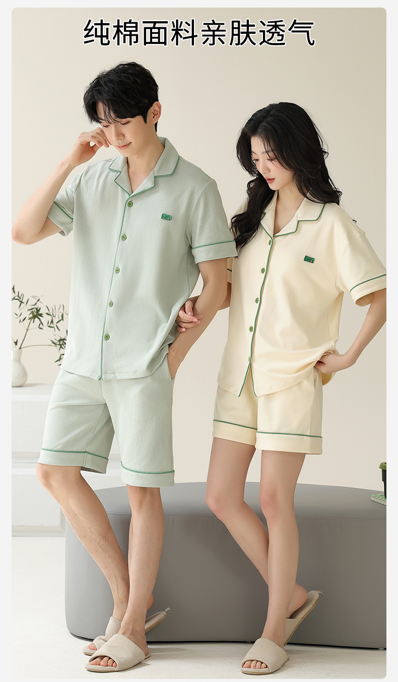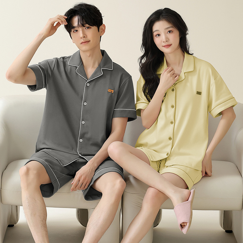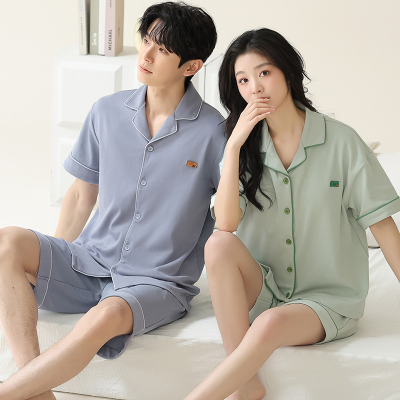 순면 커플 잠옷 여성 여름 반팔 반바지 캐주얼 심플 남성 여름 겉옷 홈 세트 모든면