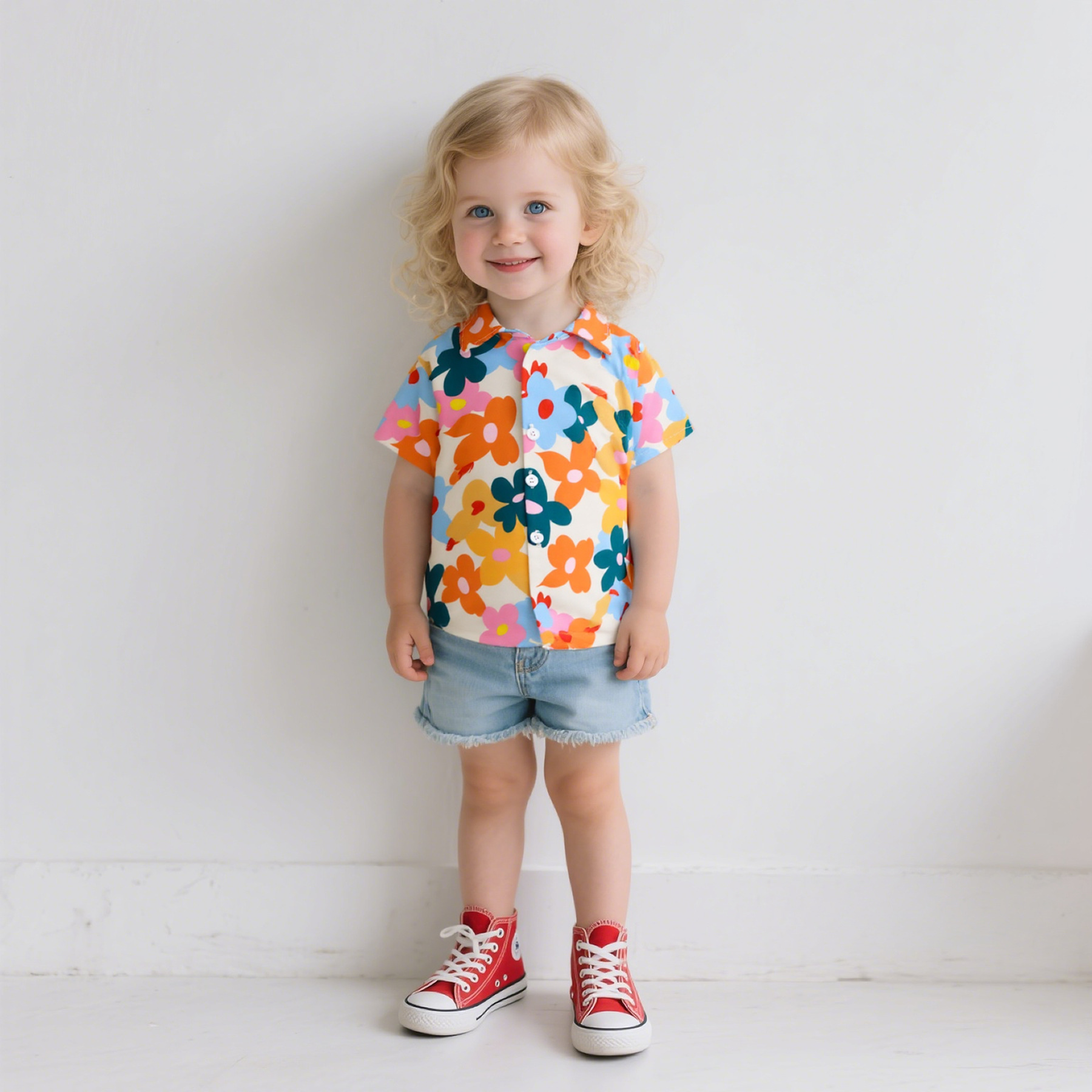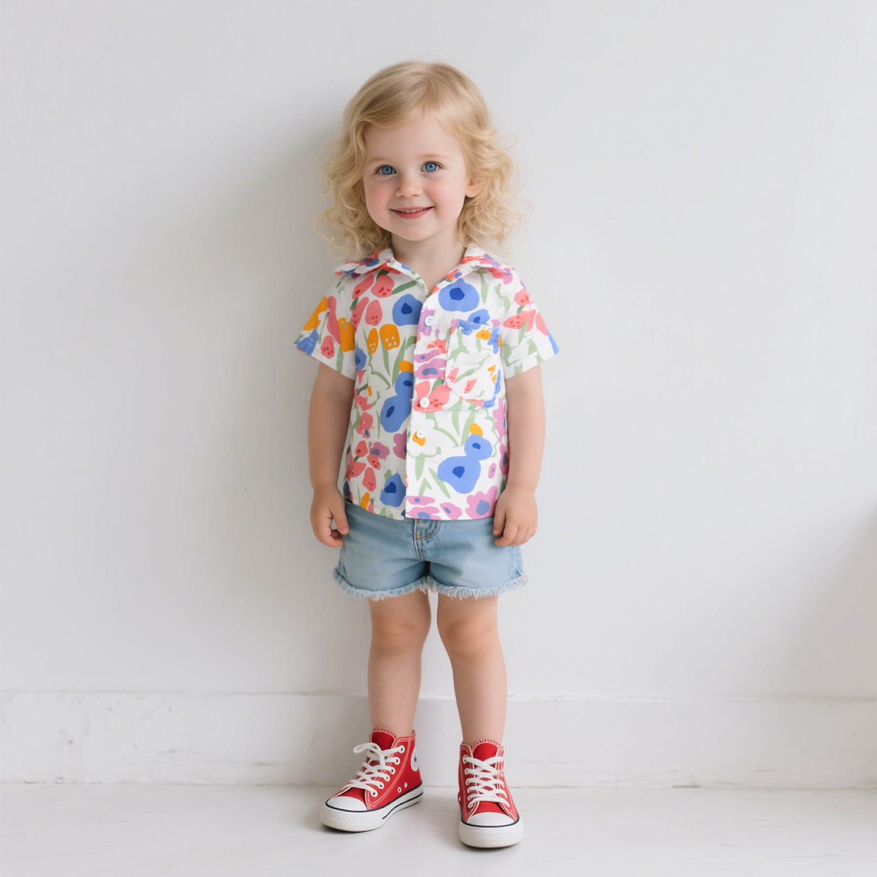 새로운 여름 소녀 유아 캐주얼 다목적 멀티 컬러 인쇄 패션 아기 얇은 한국 짧은 소매 셔츠 도매스토어 가기
