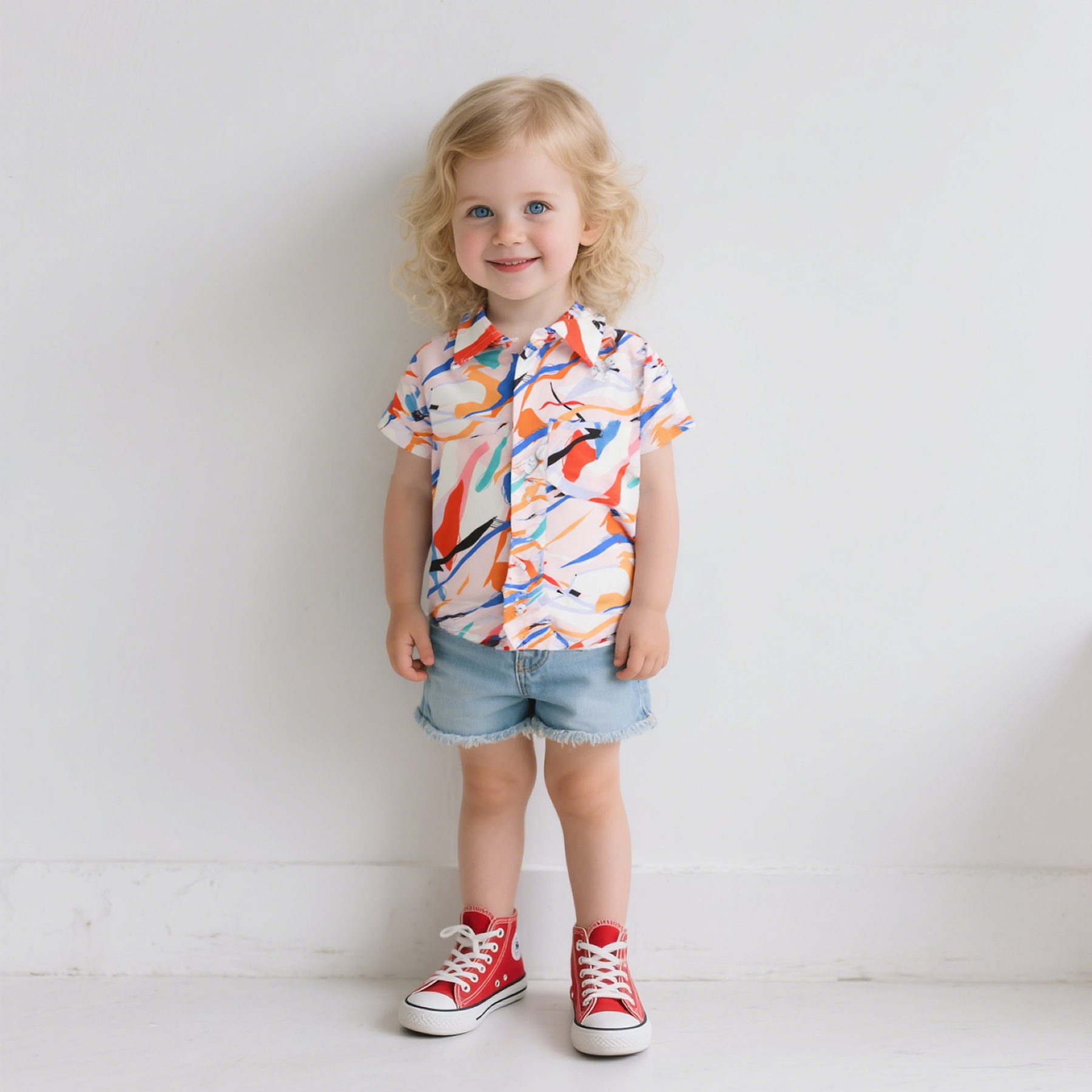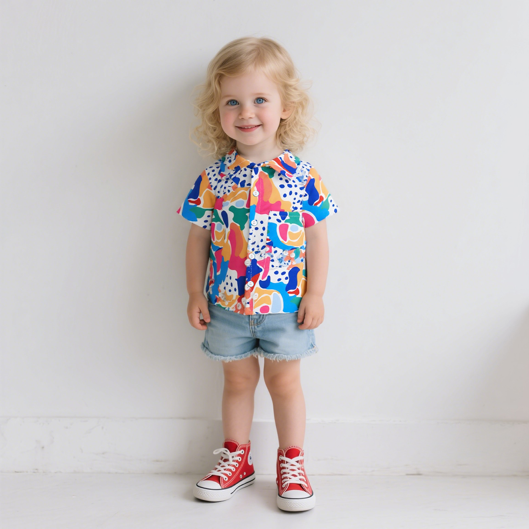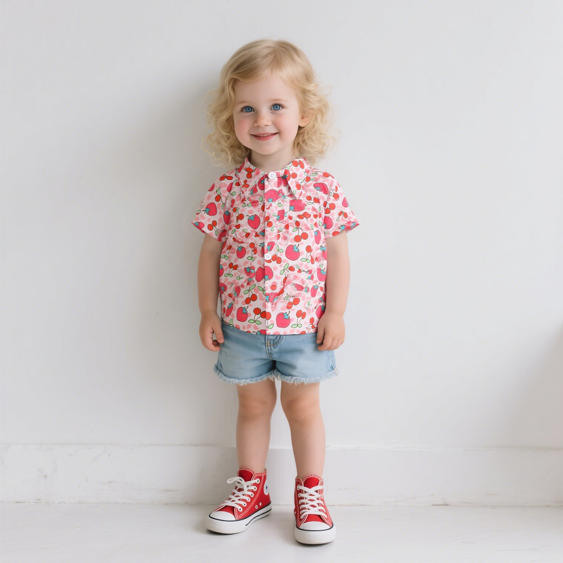 새로운 여름 소녀 유아 캐주얼 다목적 멀티 컬러 인쇄 패션 아기 얇은 한국 짧은 소매 셔츠 도매