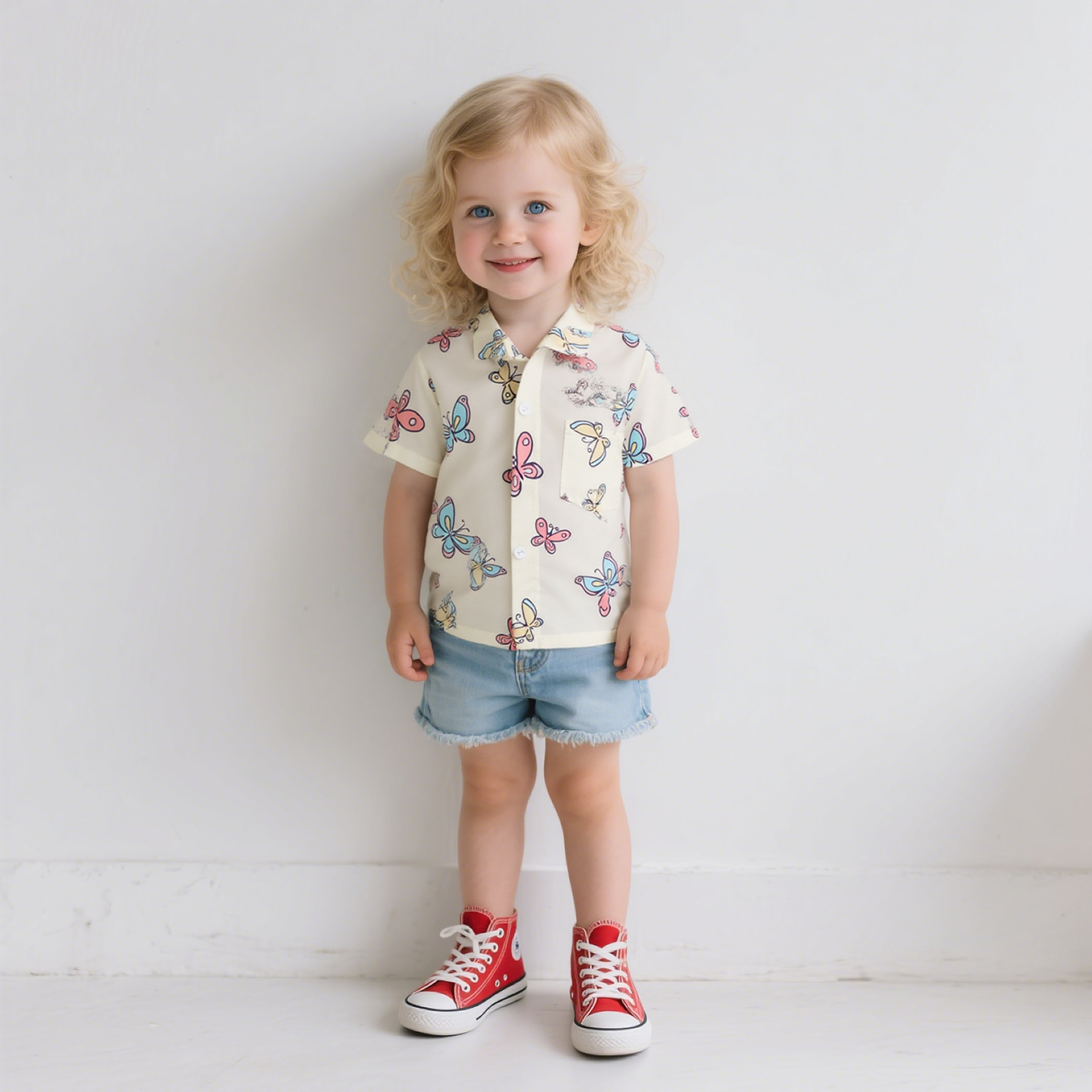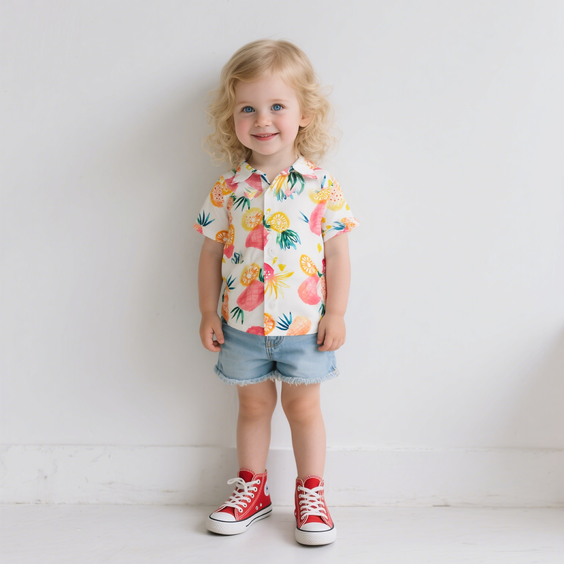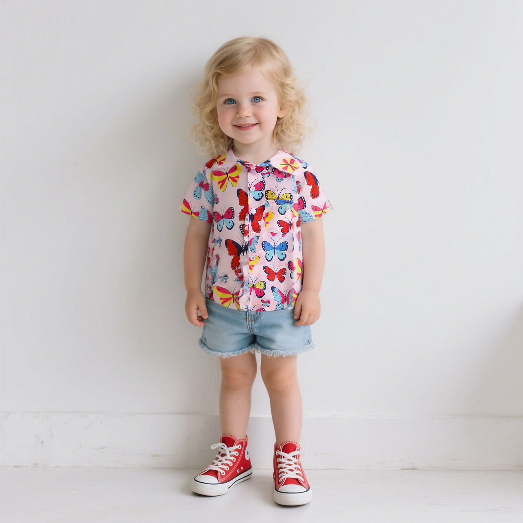 새로운 여름 소녀 유아 캐주얼 다목적 멀티 컬러 인쇄 패션 아기 얇은 한국 짧은 소매 셔츠 도매