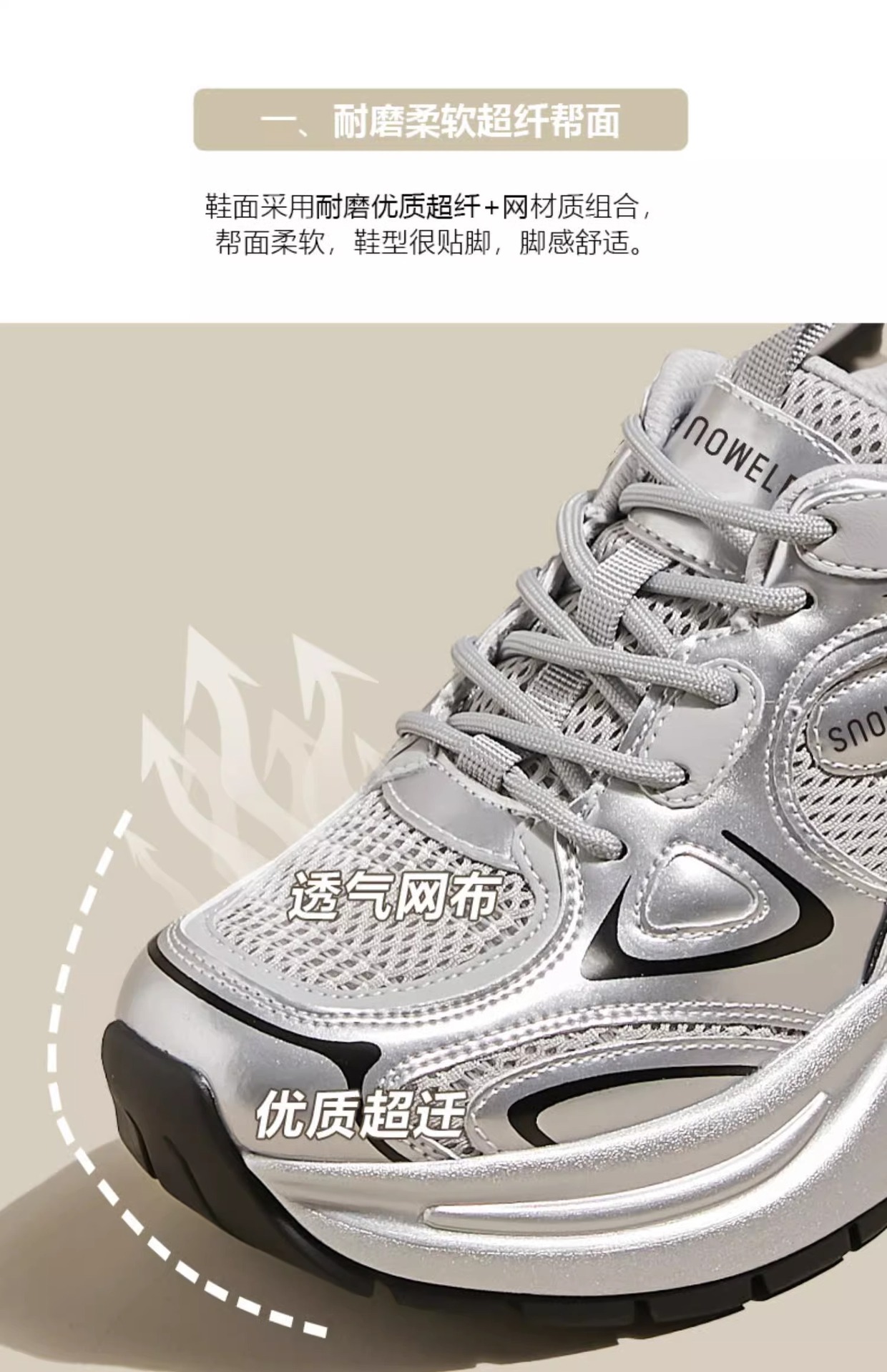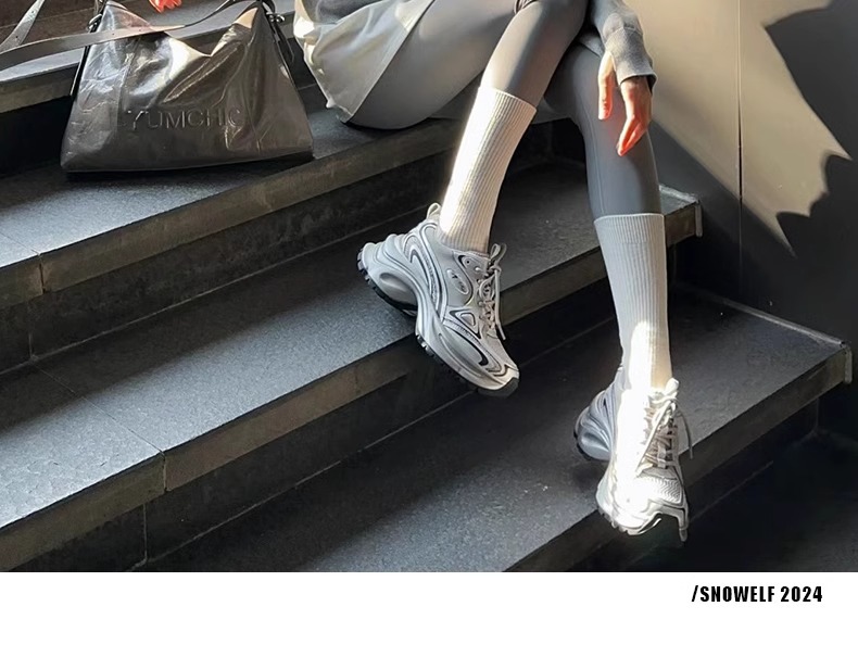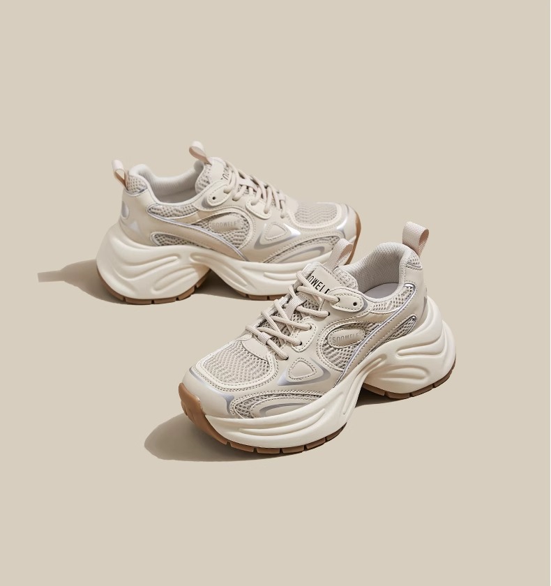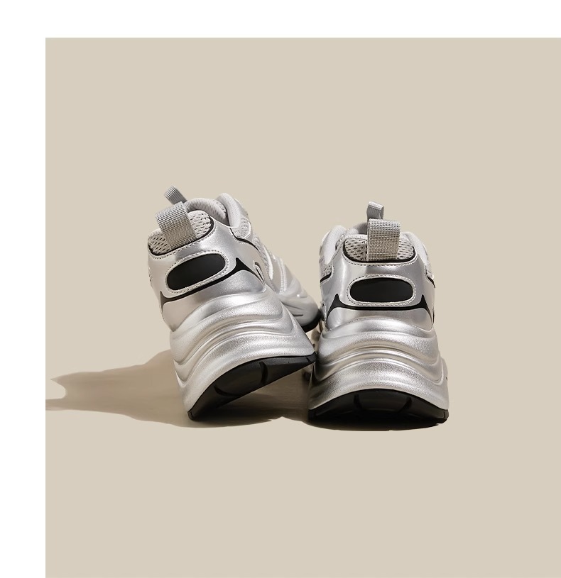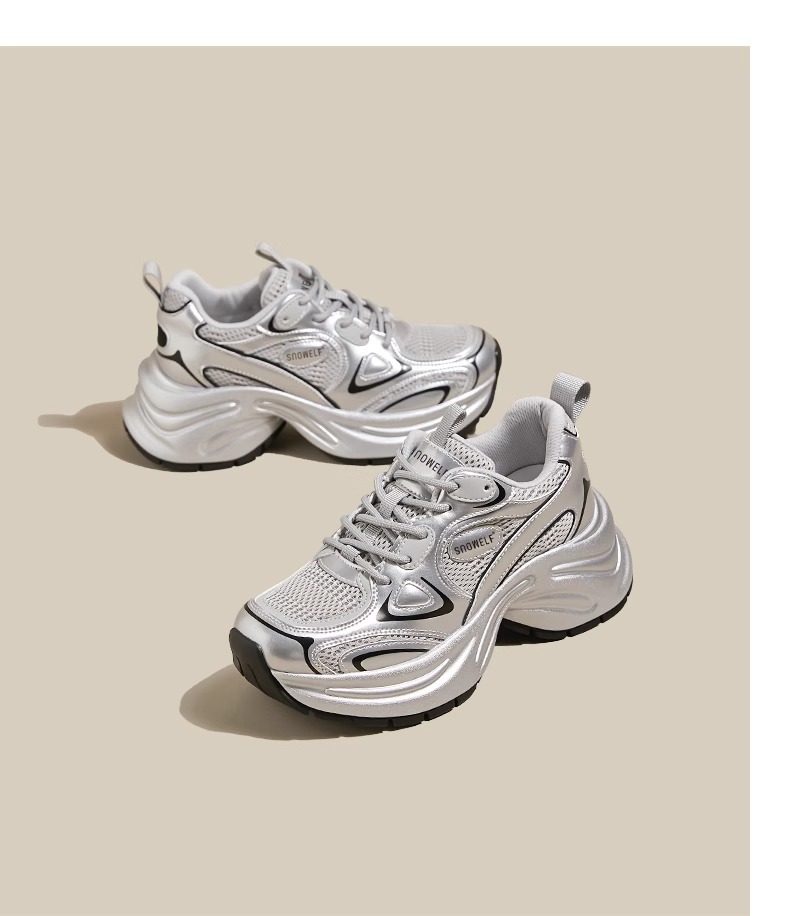 화이트 루와 같은 스타일의 두꺼운 밑창 아빠 신발 여성용 2025년 신상 봄 메쉬 통기성 실버 레트로 키높이 캐주얼 운동화