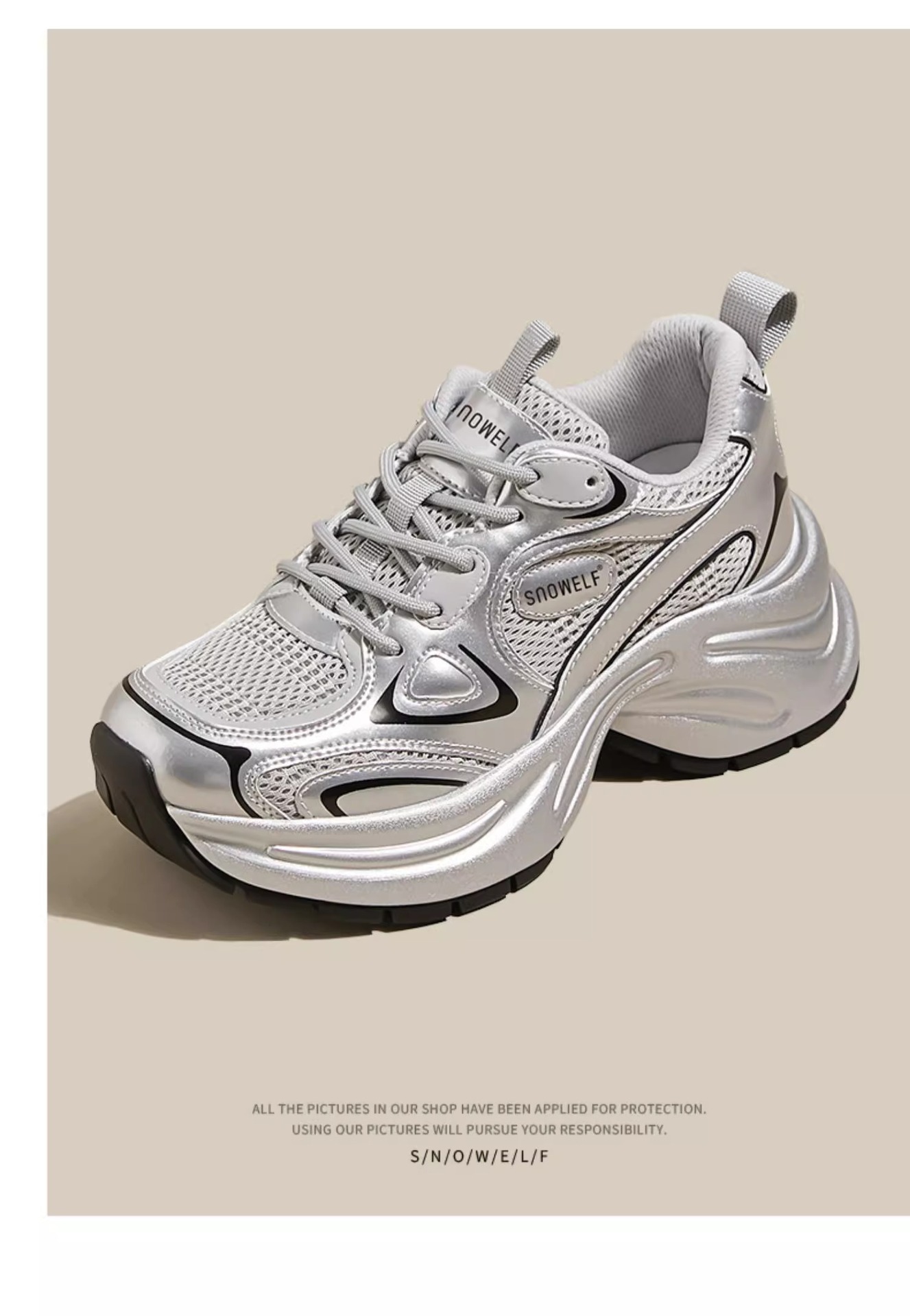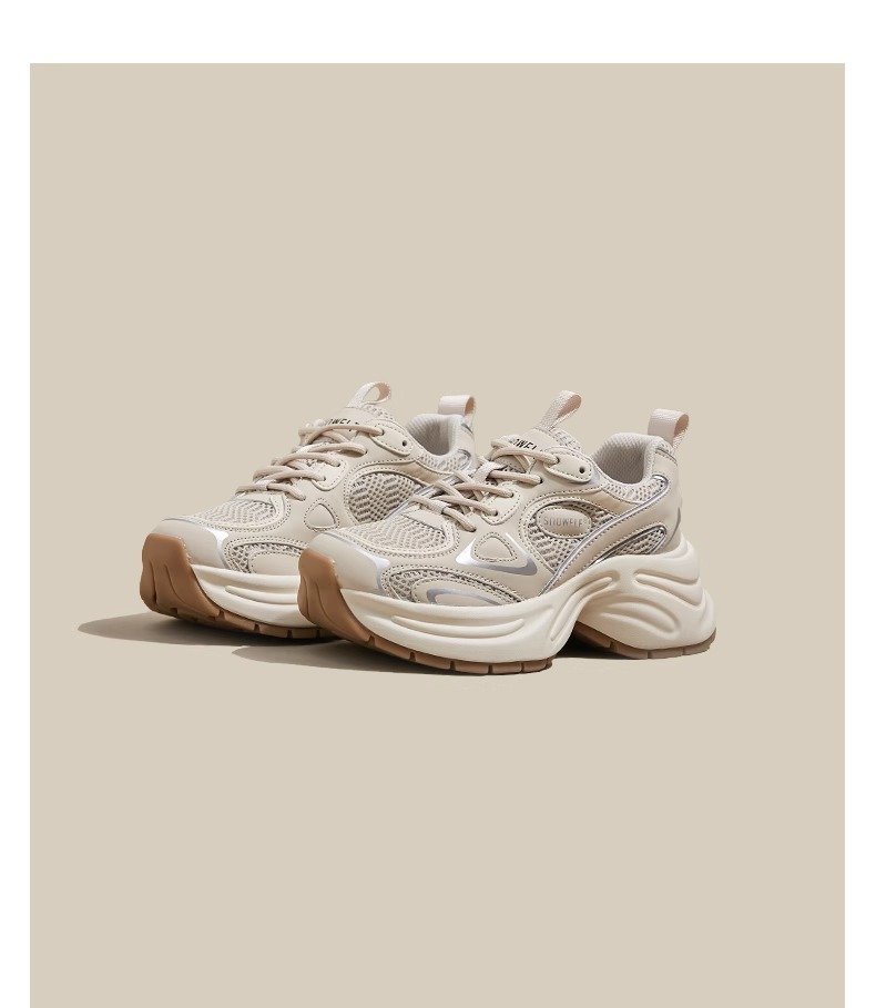 화이트 루와 같은 스타일의 두꺼운 밑창 아빠 신발 여성용 2025년 신상 봄 메쉬 통기성 실버 레트로 키높이 캐주얼 운동화스토어 가기