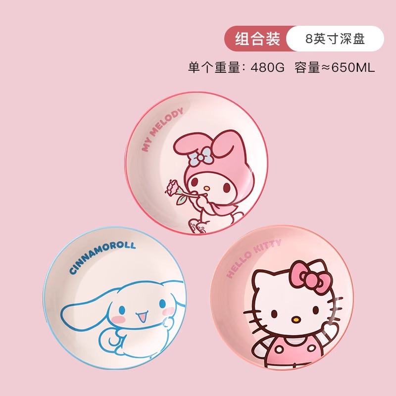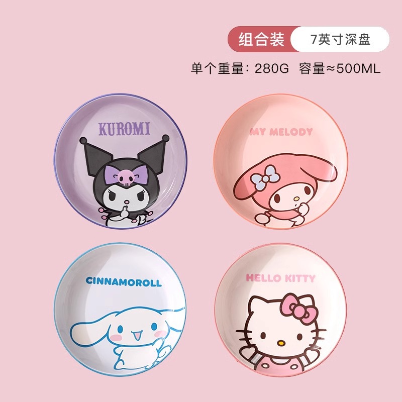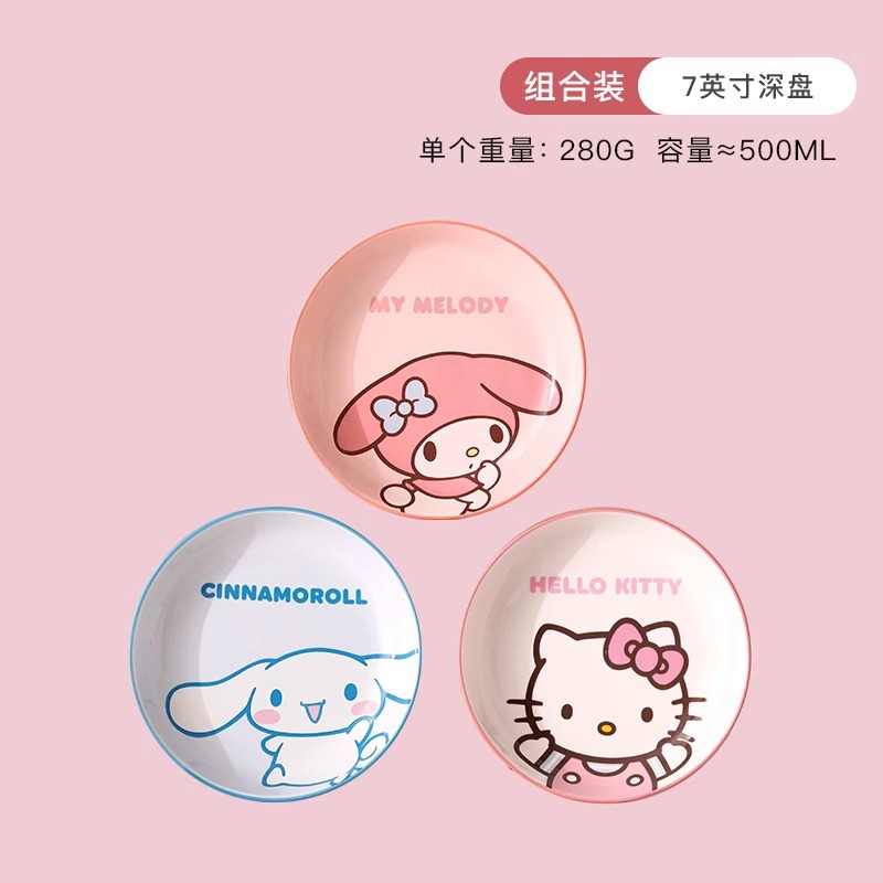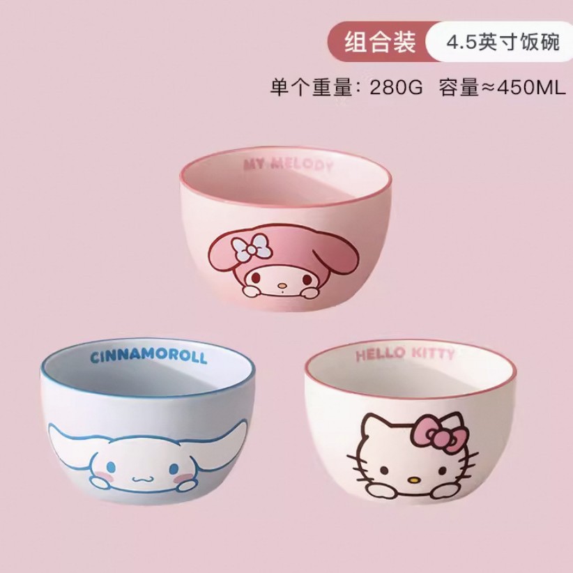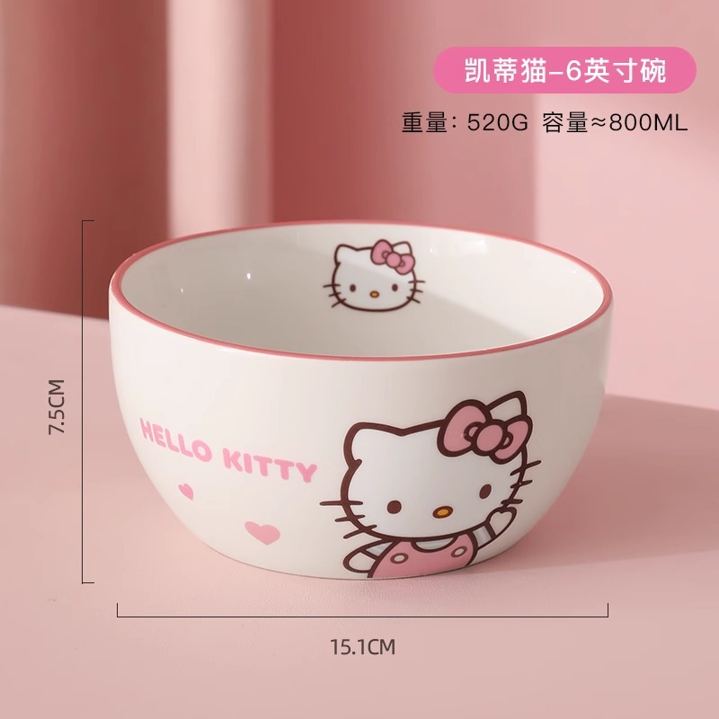 산리오 세라믹 그릇 멜로디 헬로키티 가정용 밥그릇 귀여운 고급 고온 식기 세트 M