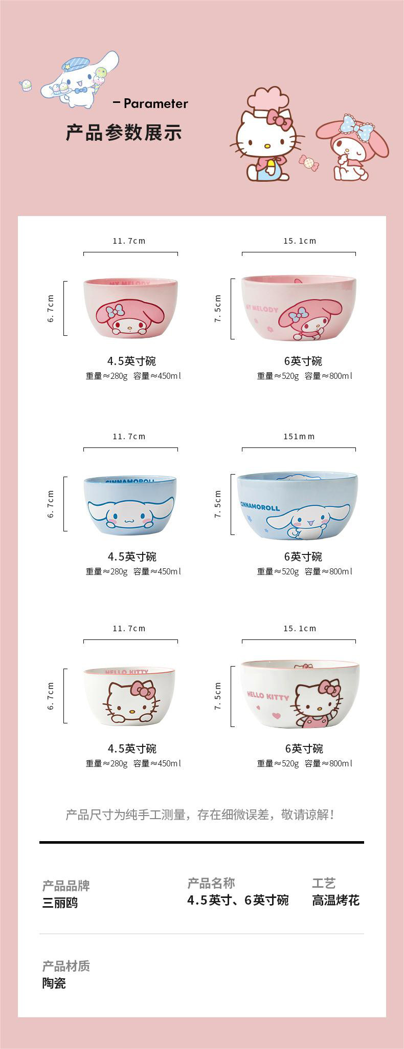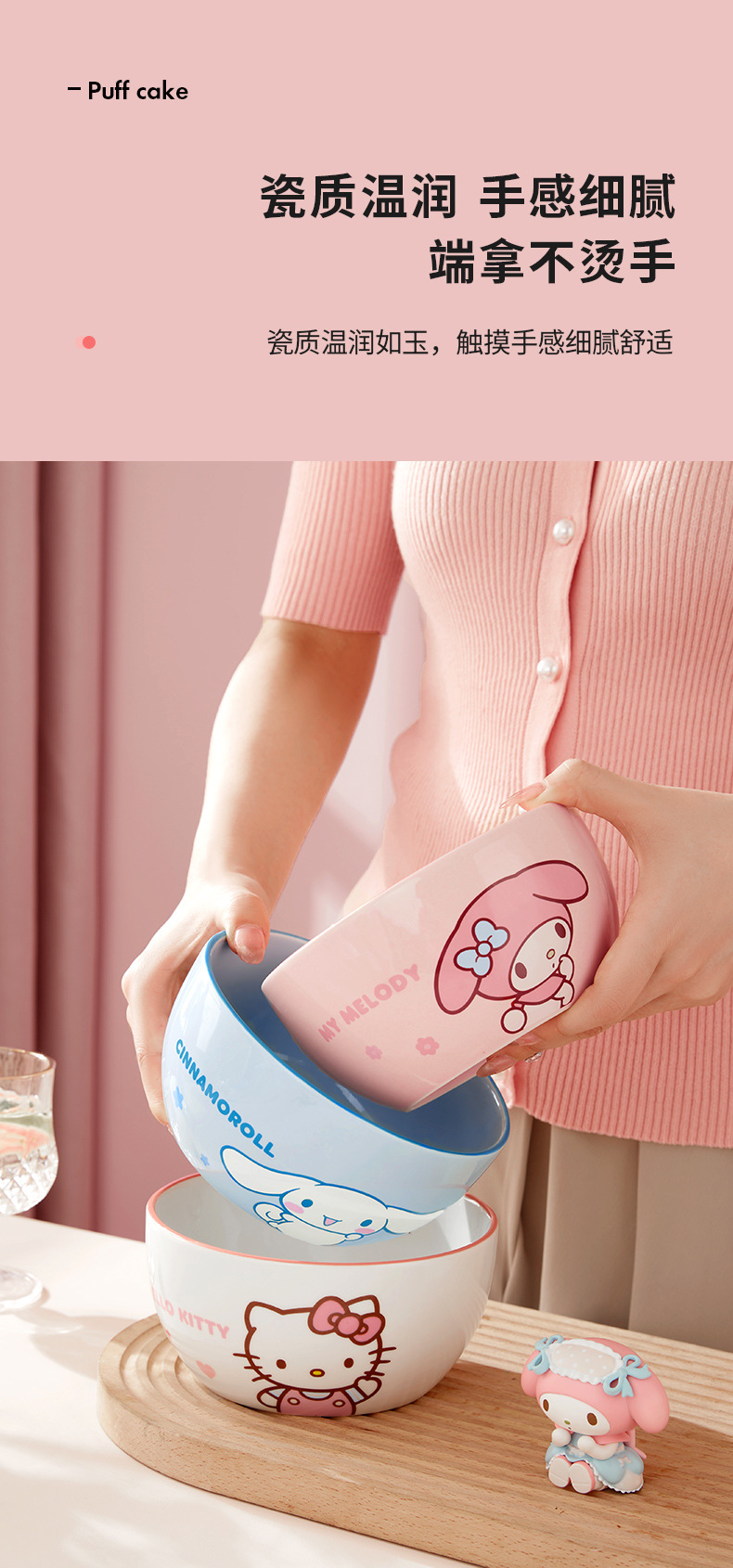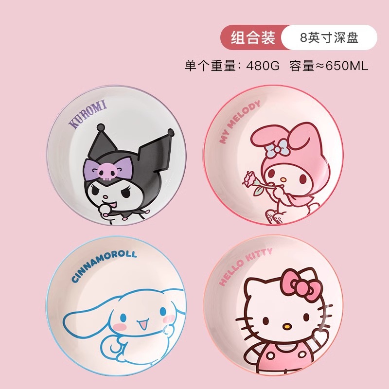 산리오 세라믹 그릇 멜로디 헬로키티 가정용 밥그릇 귀여운 고급 고온 식기 세트 M