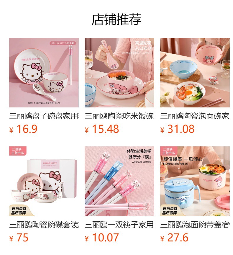 산리오 세라믹 그릇 멜로디 헬로키티 가정용 밥그릇 귀여운 고급 고온 식기 세트 M스토어 가기