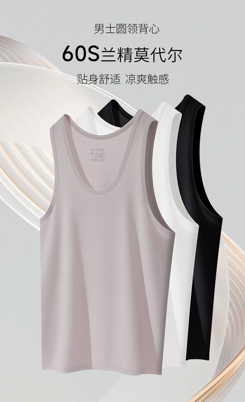 란징 모달 무봉제 라운드넥 조끼 통기성 활성 염색 주름 방지 내구성 있는 상의 청소년 남성복스토어 가기