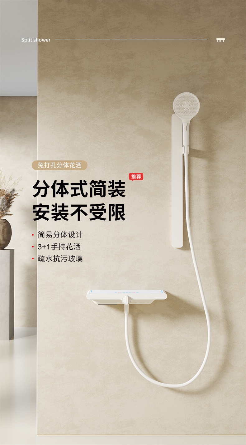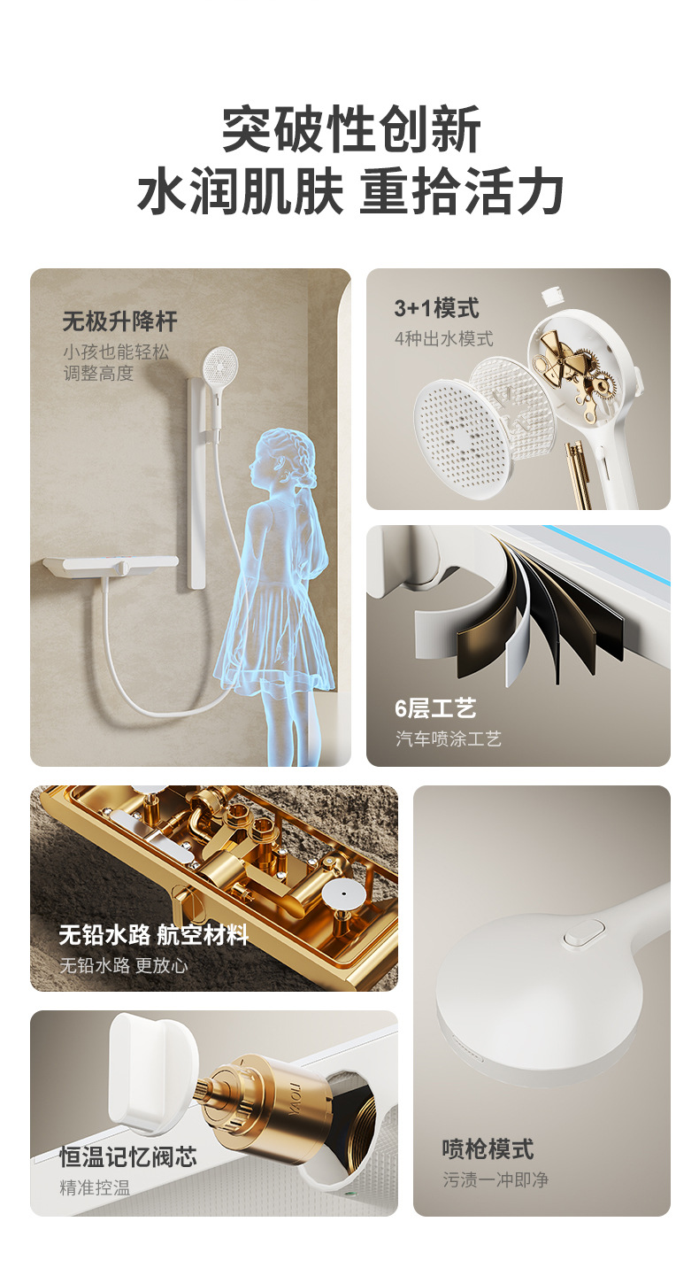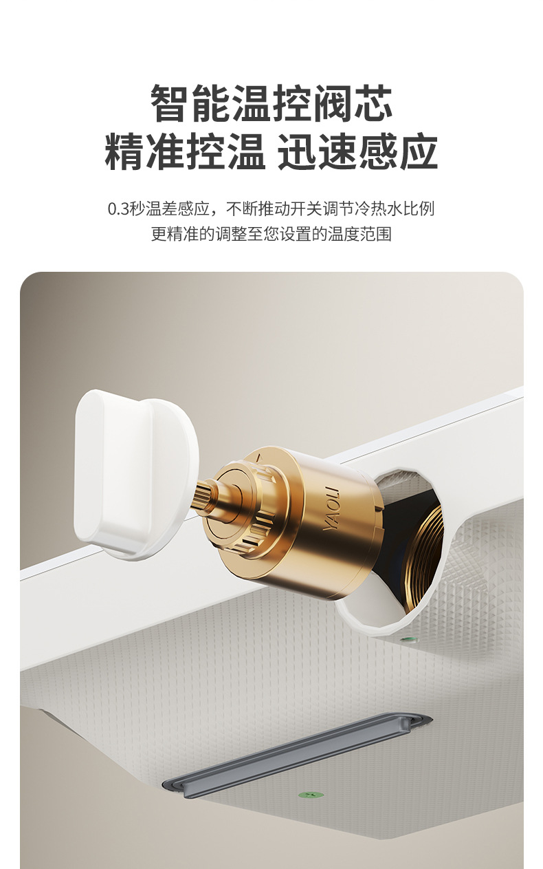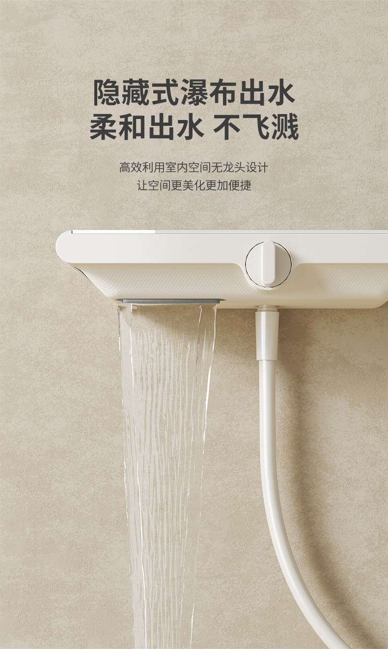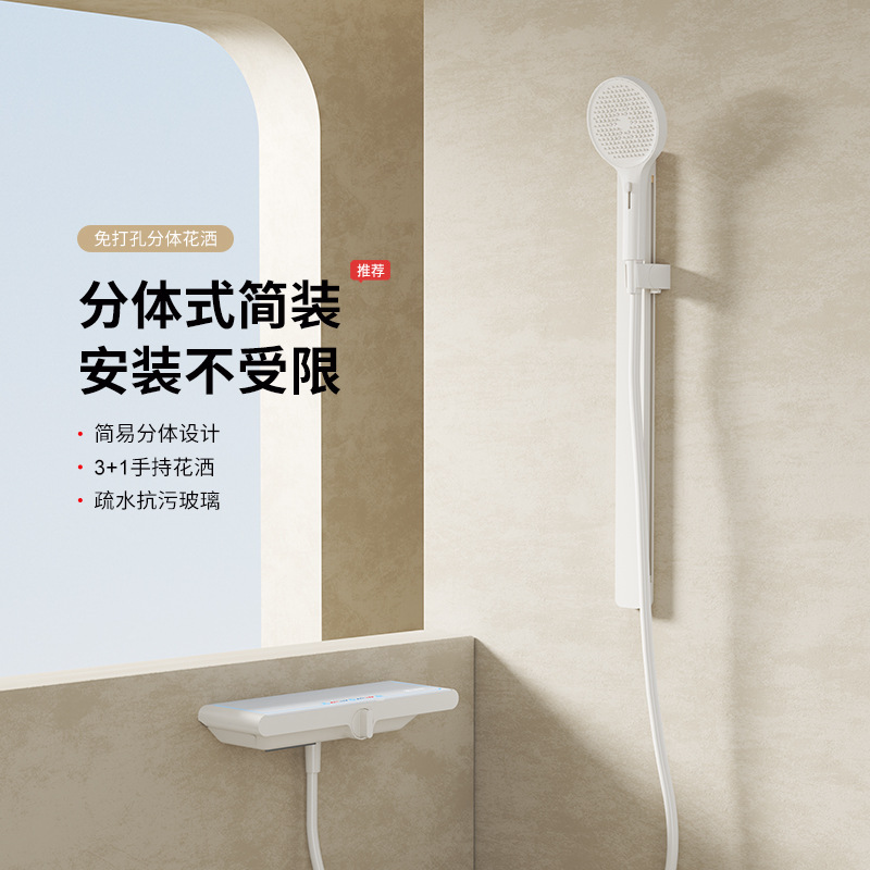 밀크 화이트 크림 컬러 지능형 온도 제어 샤워 세트 구리 가정용 샤워 비 목욕 작은 아파트 간단한 욕조 수도꼭지