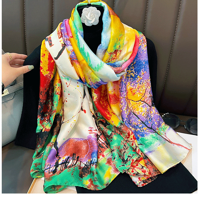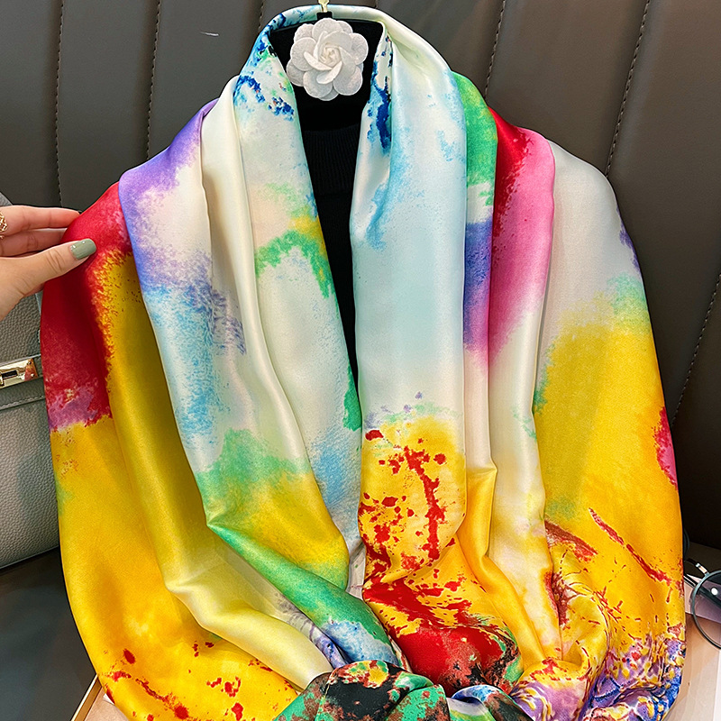 봄 한국식 브로케이드 새틴 실크 스카프 여성의 얇은 에어컨 목도리 여행 선 스크린 외부 장식 비치 타월