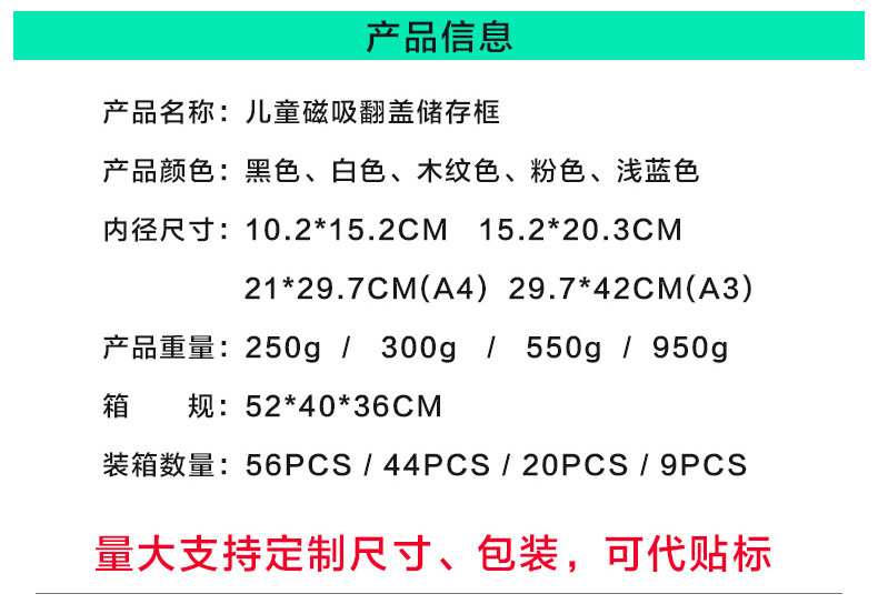 국경 간 인기 플립 커버 6/ 8inch 수제 자기 사진 프레임 어린이 미술 그림 보관 직사각형 벽걸이 사진 프레임스토어 가기