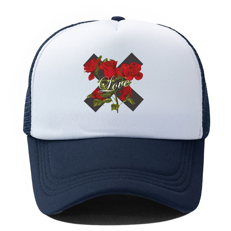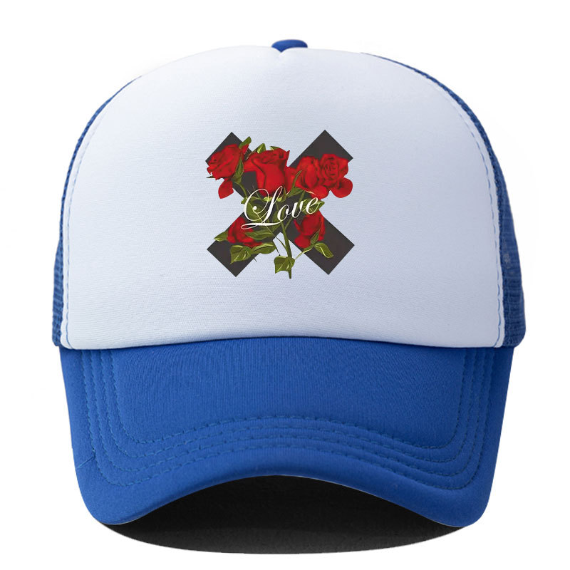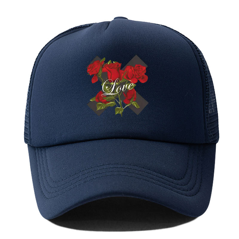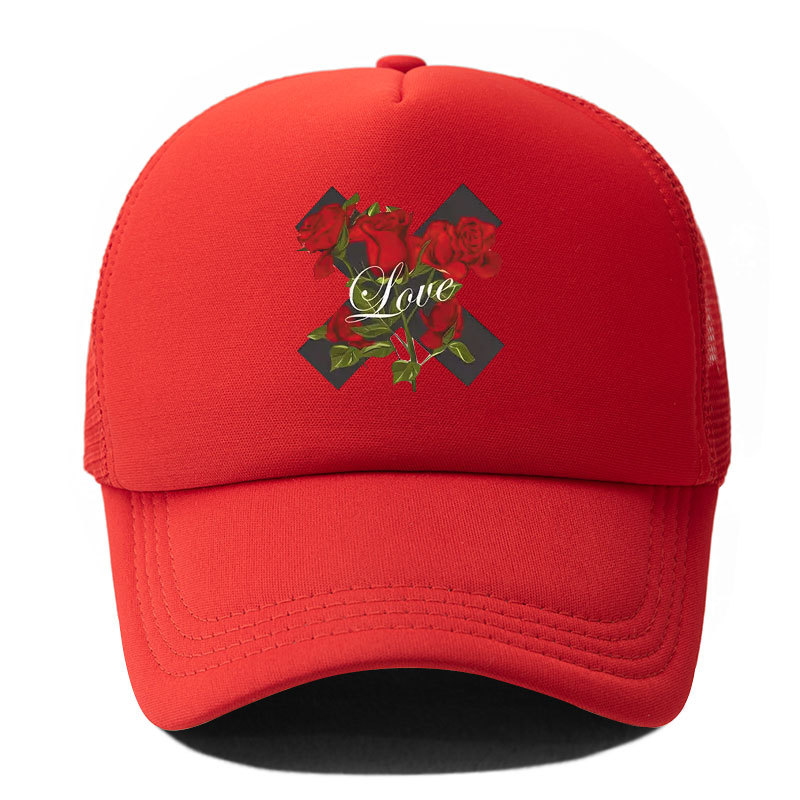 대외 무역 봄과 여름 빨간 장미 야구 모자 인쇄 차양 캐주얼 메쉬 캡 트럭 캡 야외 태양 모자