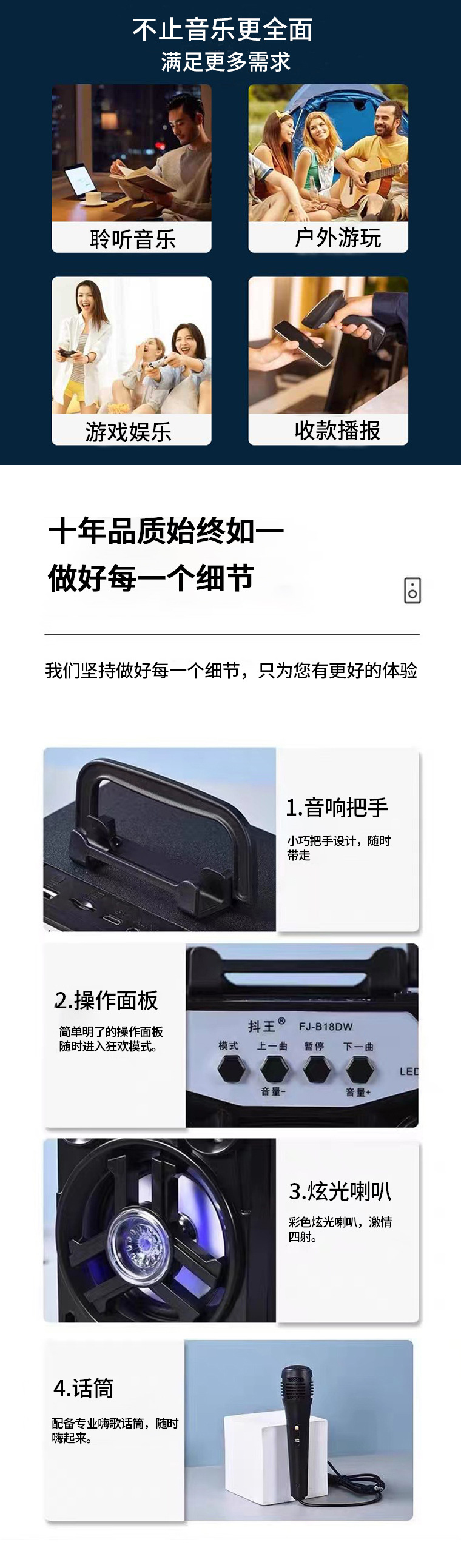 휴대용 블루투스 스피커 휴대용 야외 광장 댄스 K-노래 오디오 카드 다채로운 밴드 마이크 재고 도매스토어 가기