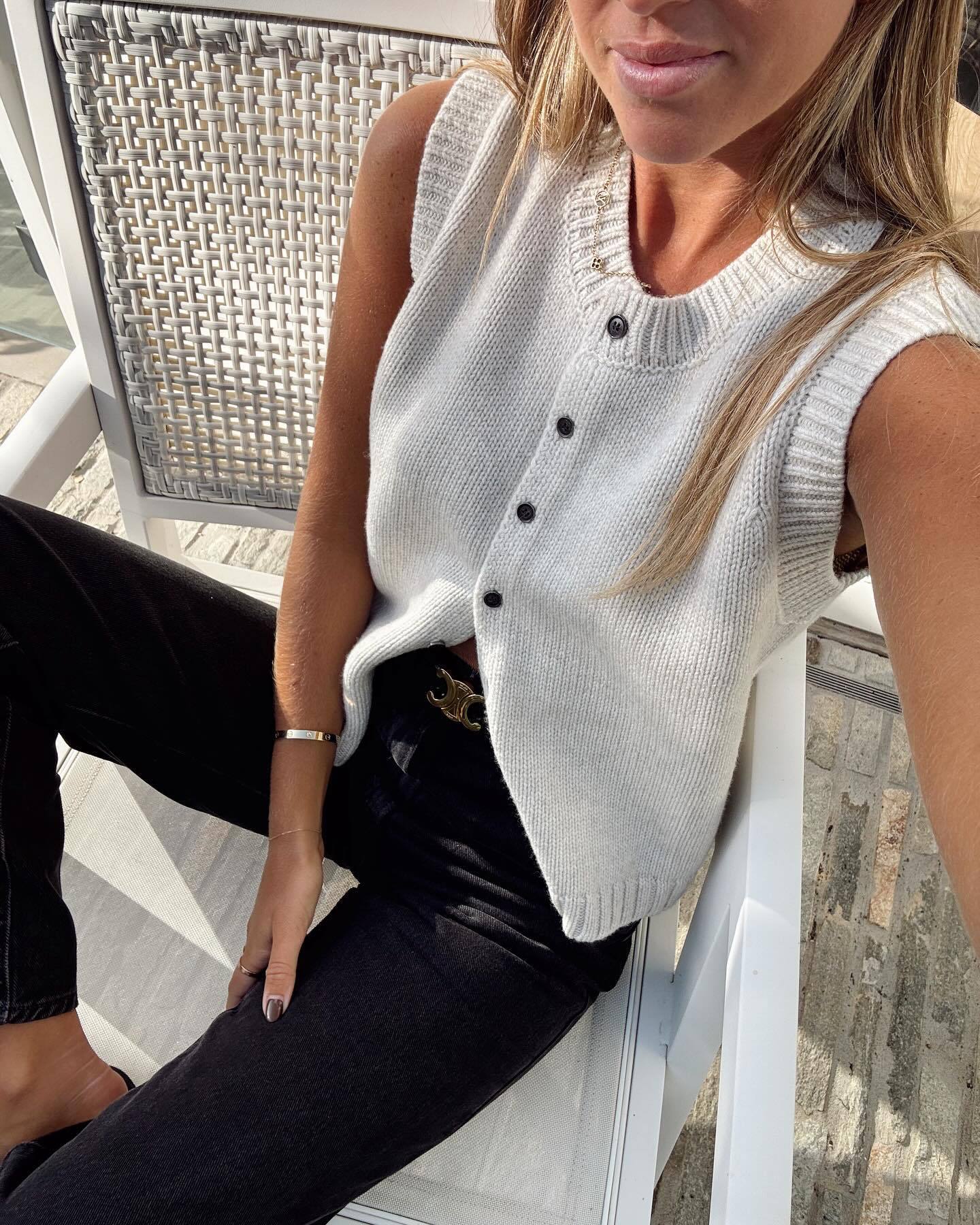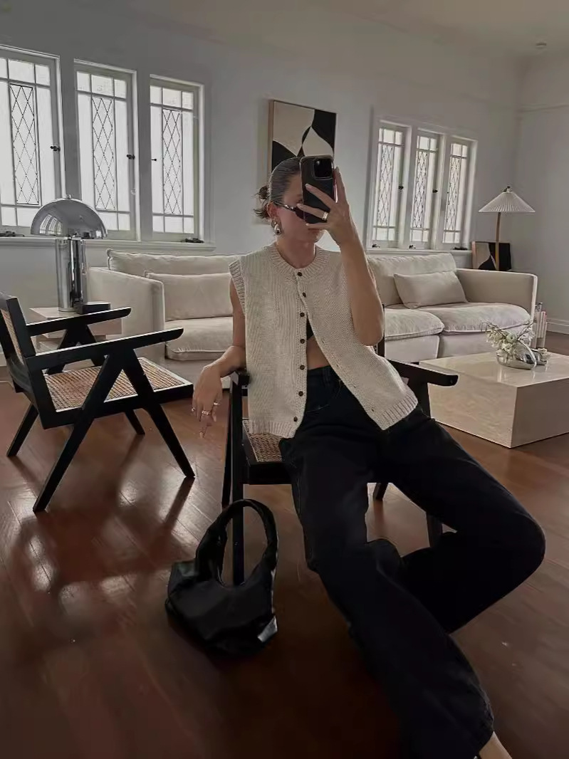 4 색 크로스 보더 니트 조끼 캐주얼 마일 라드 스타일 올 매치 싱글 브레스트 니트 카디건 탑 여성