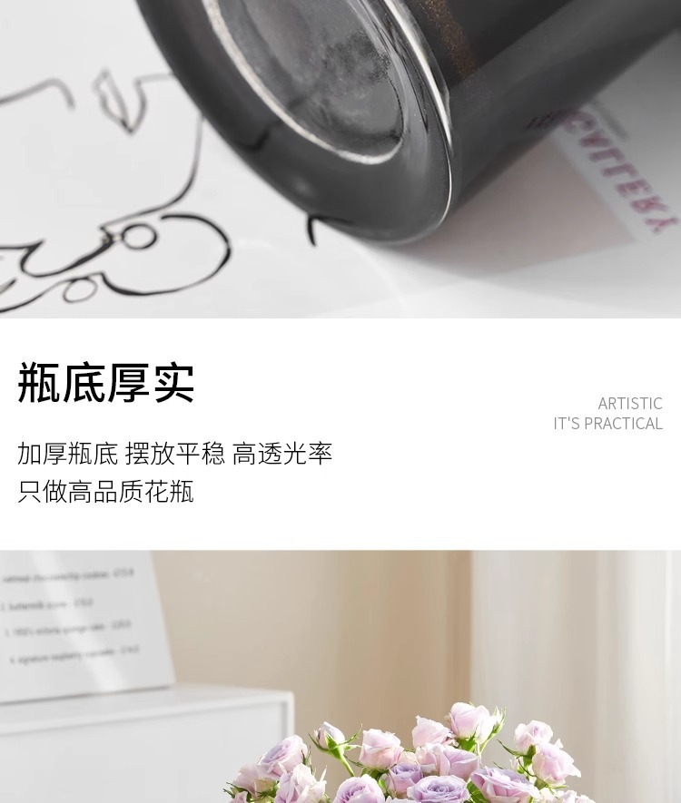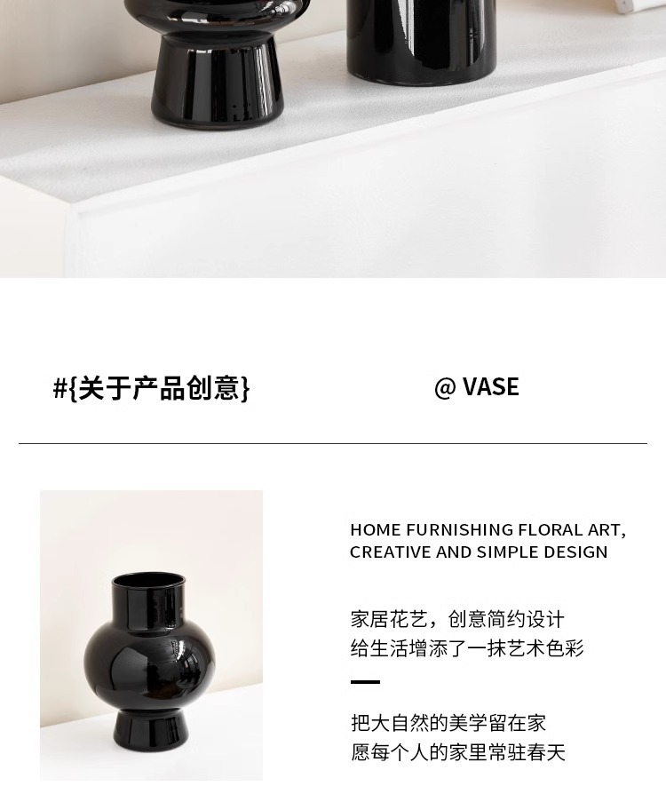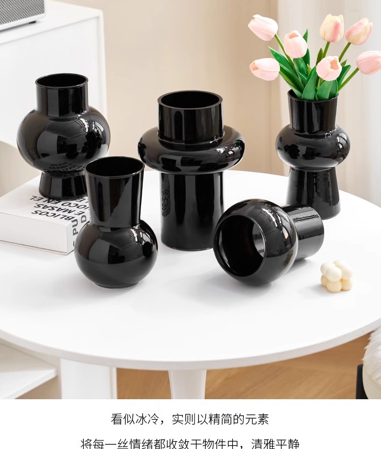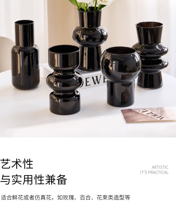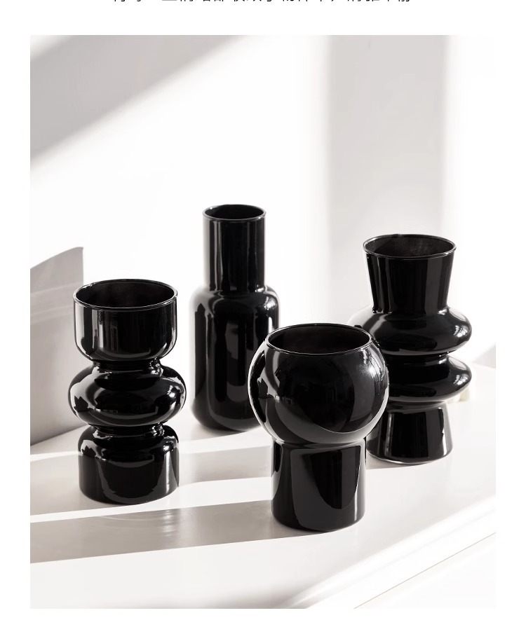 현대 간단한 검은 유리 꽃병 중간 고대 고급 홈 수경 꽃병 스타일 높은 색상 값 작은 장식품스토어 가기