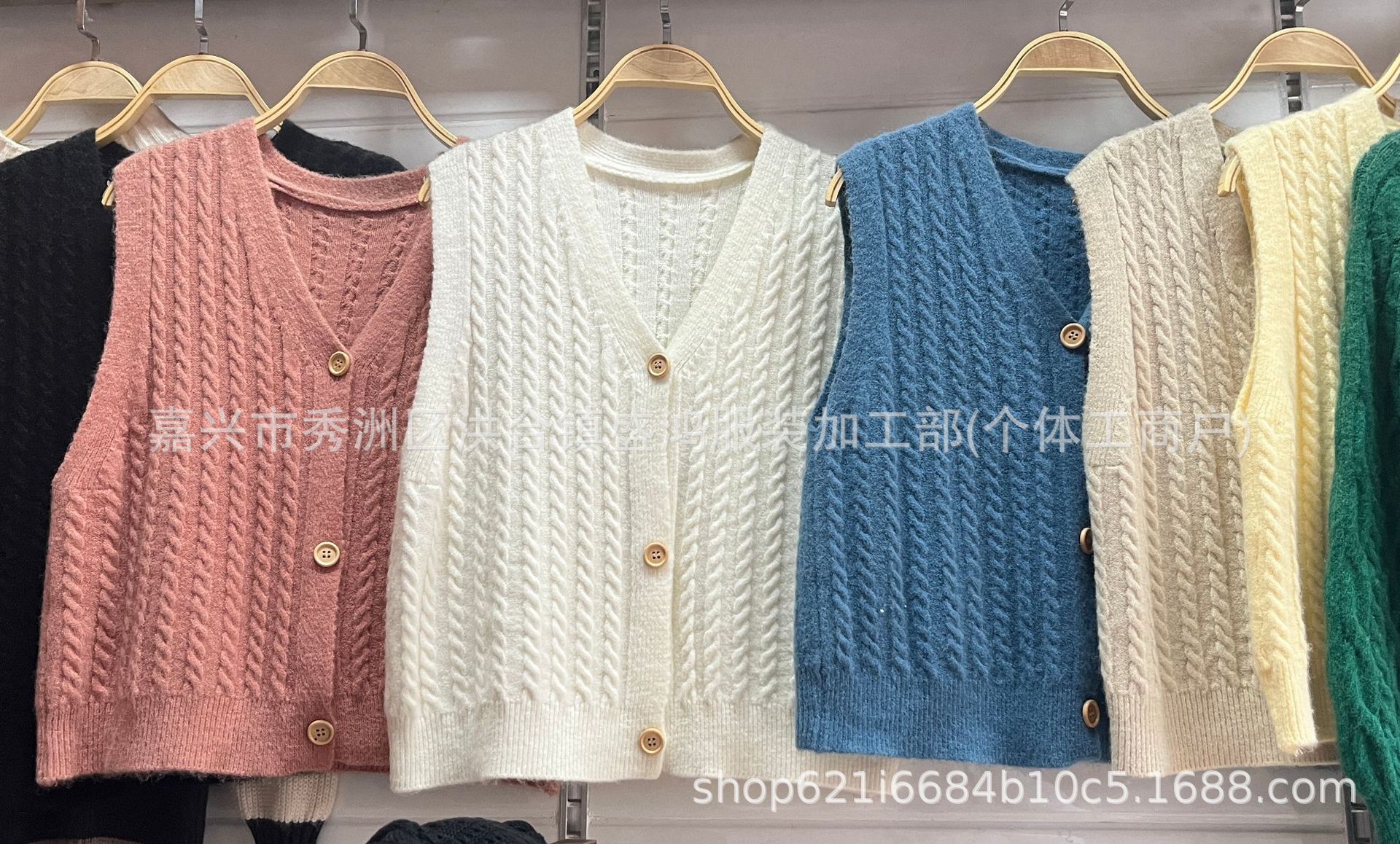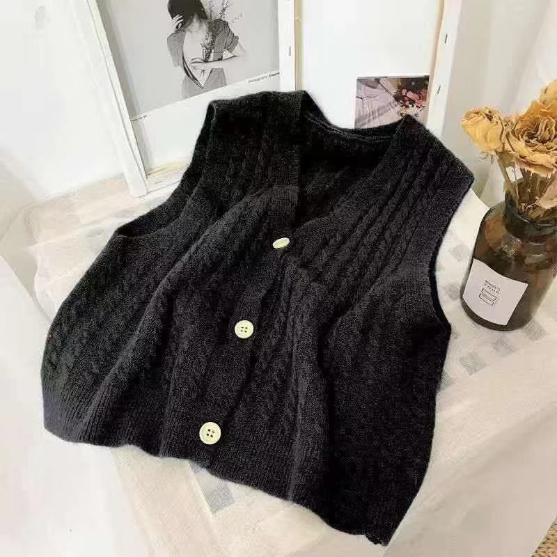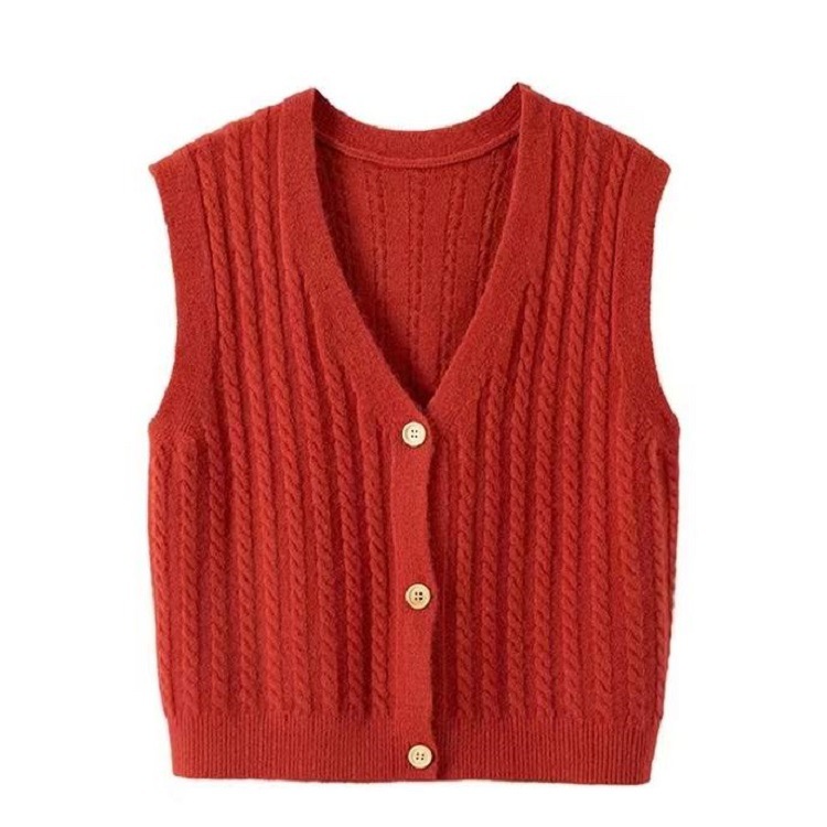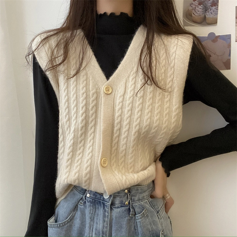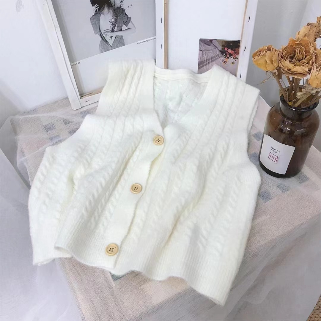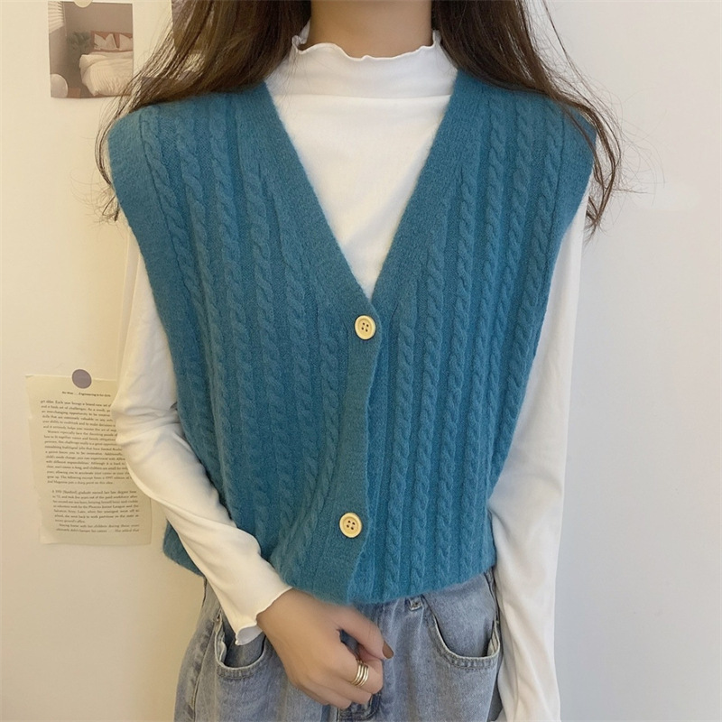 한국 버전의 빈티지 트위스트 니트 조끼 여성복 V 넥 스위트 캔디 컬러 민소매 스웨터 조끼 도매스토어 가기