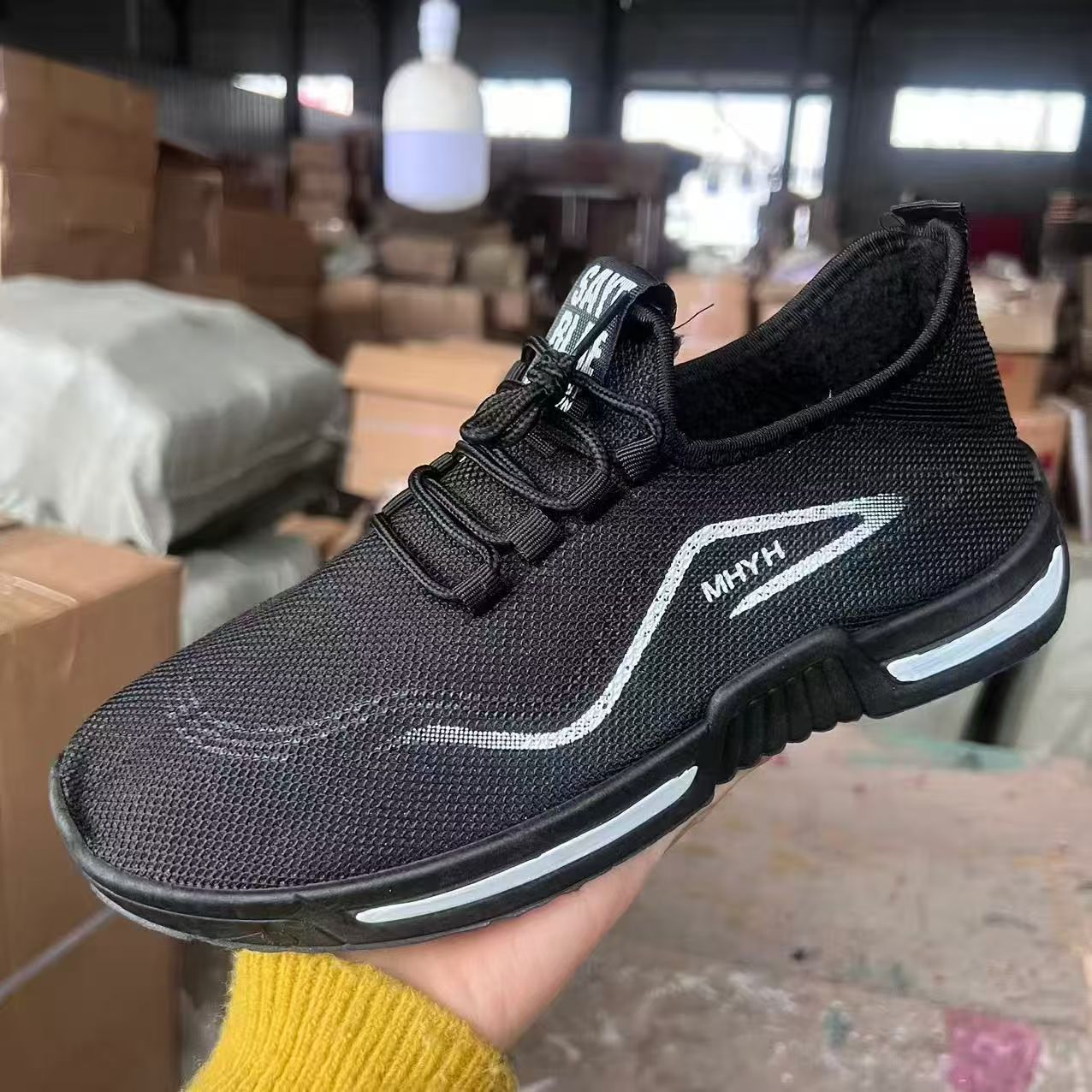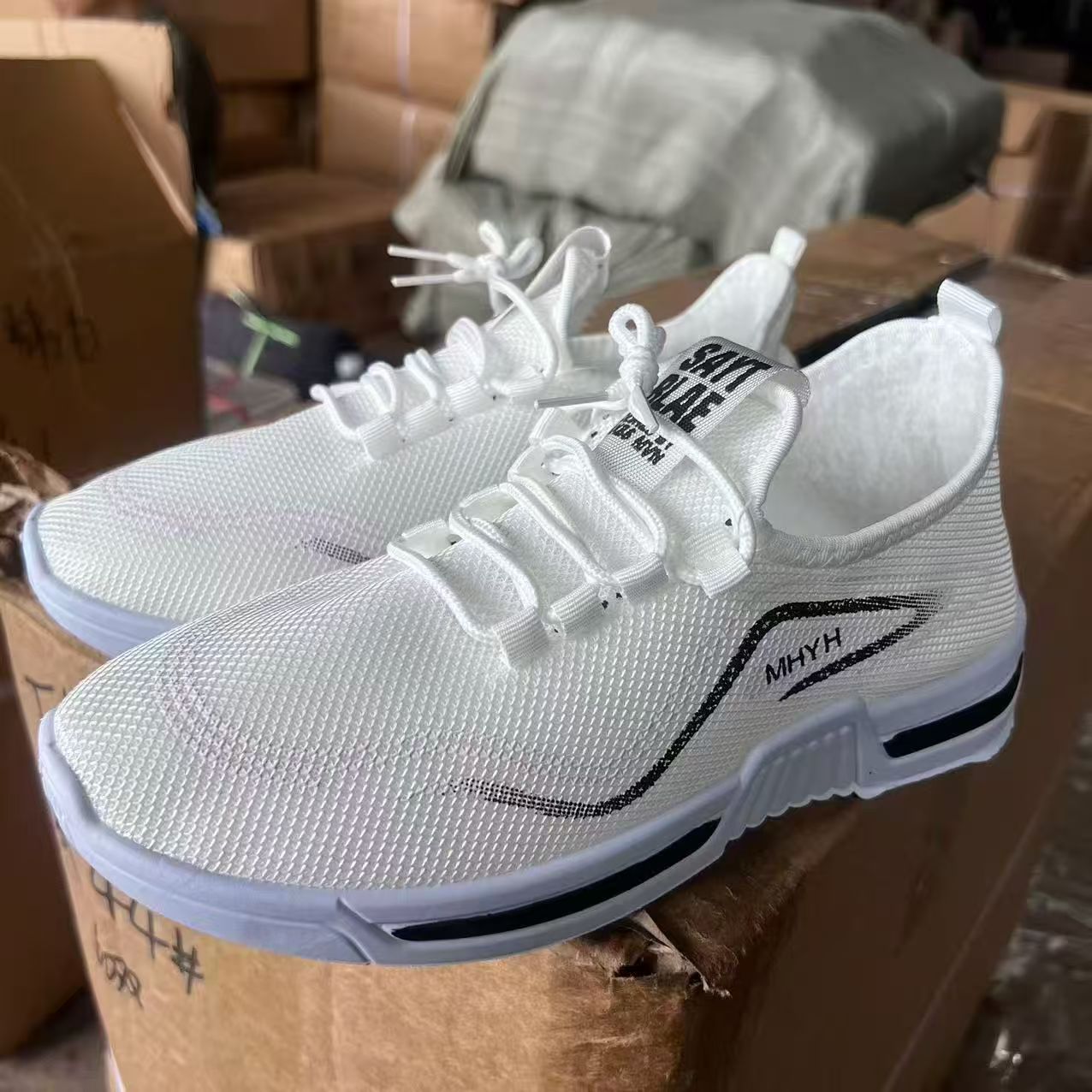 2024 새로운 스포츠 신발 편안한 통기성 작은 흰색 신발 플라이 짠 통기성 캐주얼 신발 대외 무역 신발 남성 머리카락