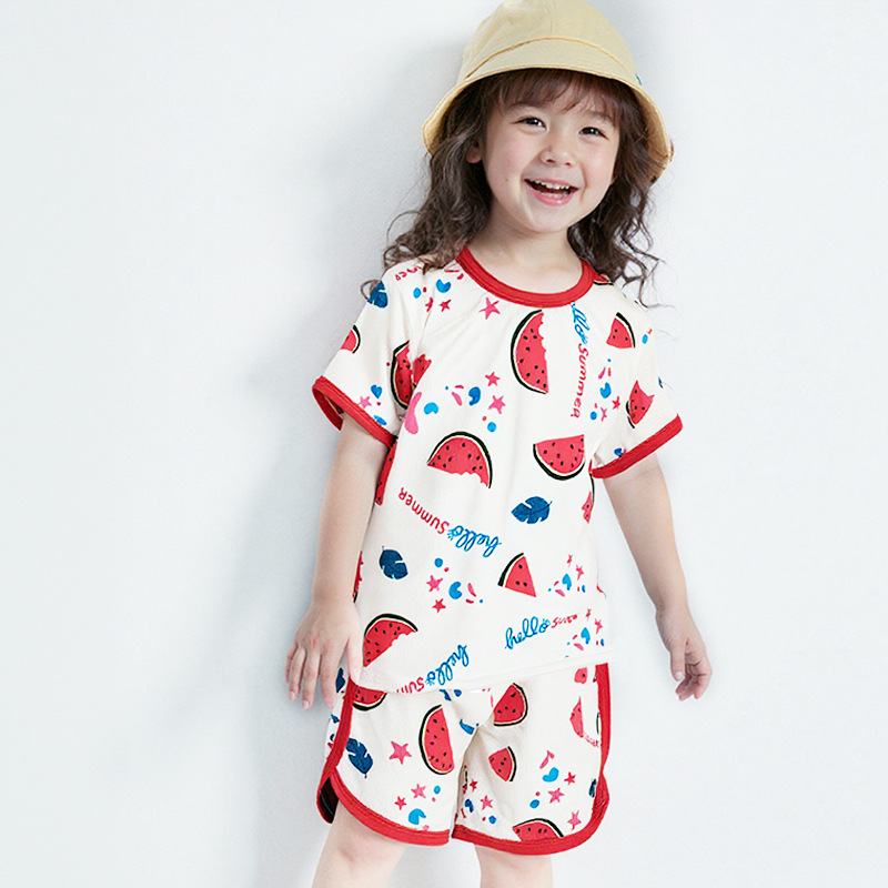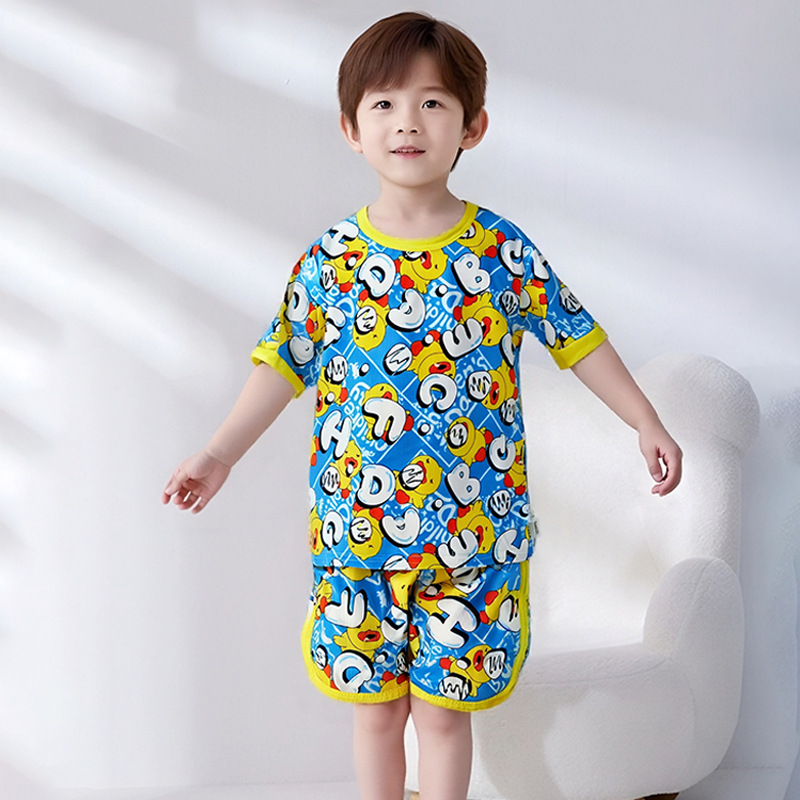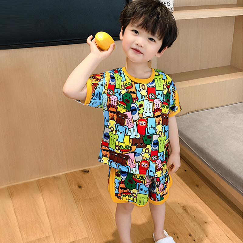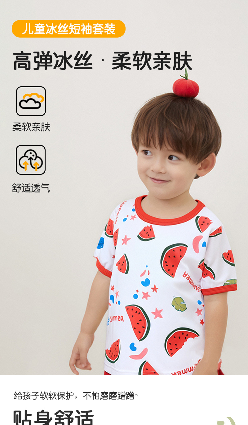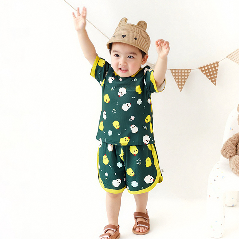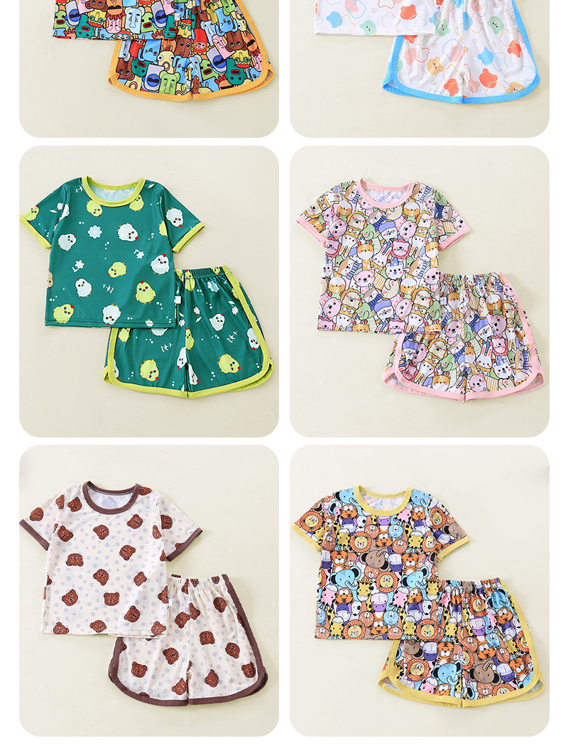 어린이 세트 아이스 실크 짧은 소매 반바지 여름 소년 소녀 만화 캐주얼 빠른 건조 티셔츠 투피스 아동복 도매스토어 가기