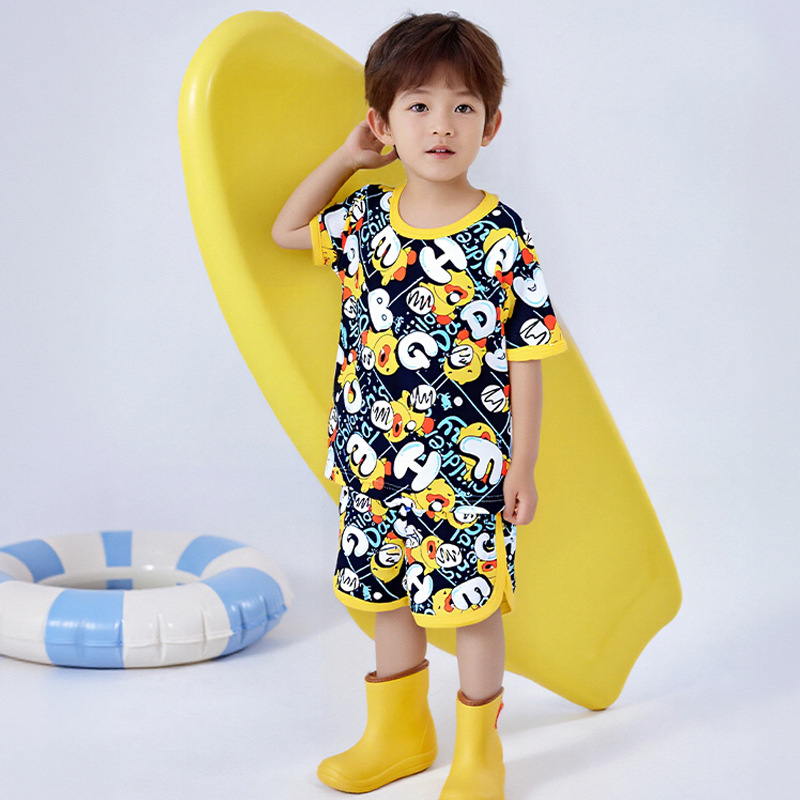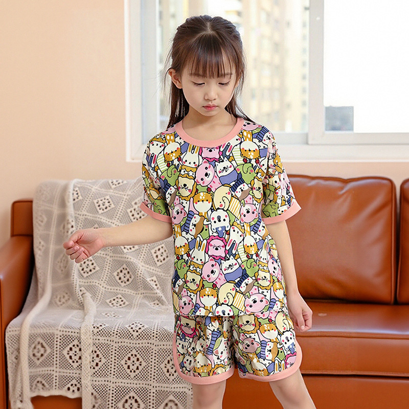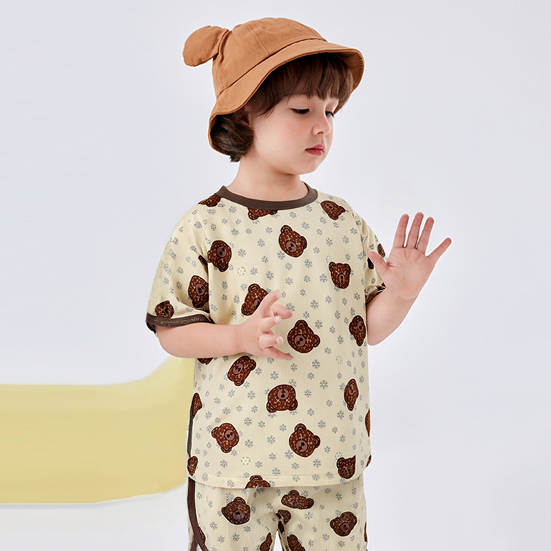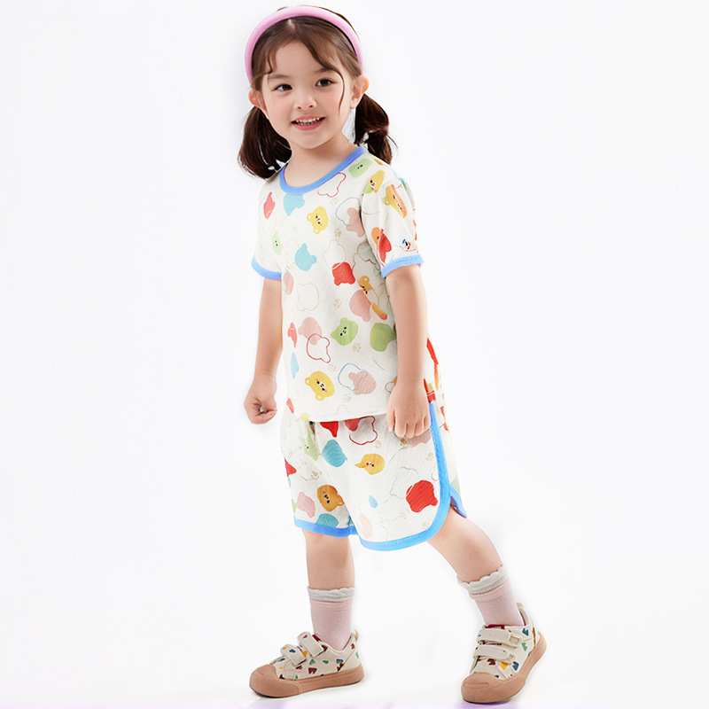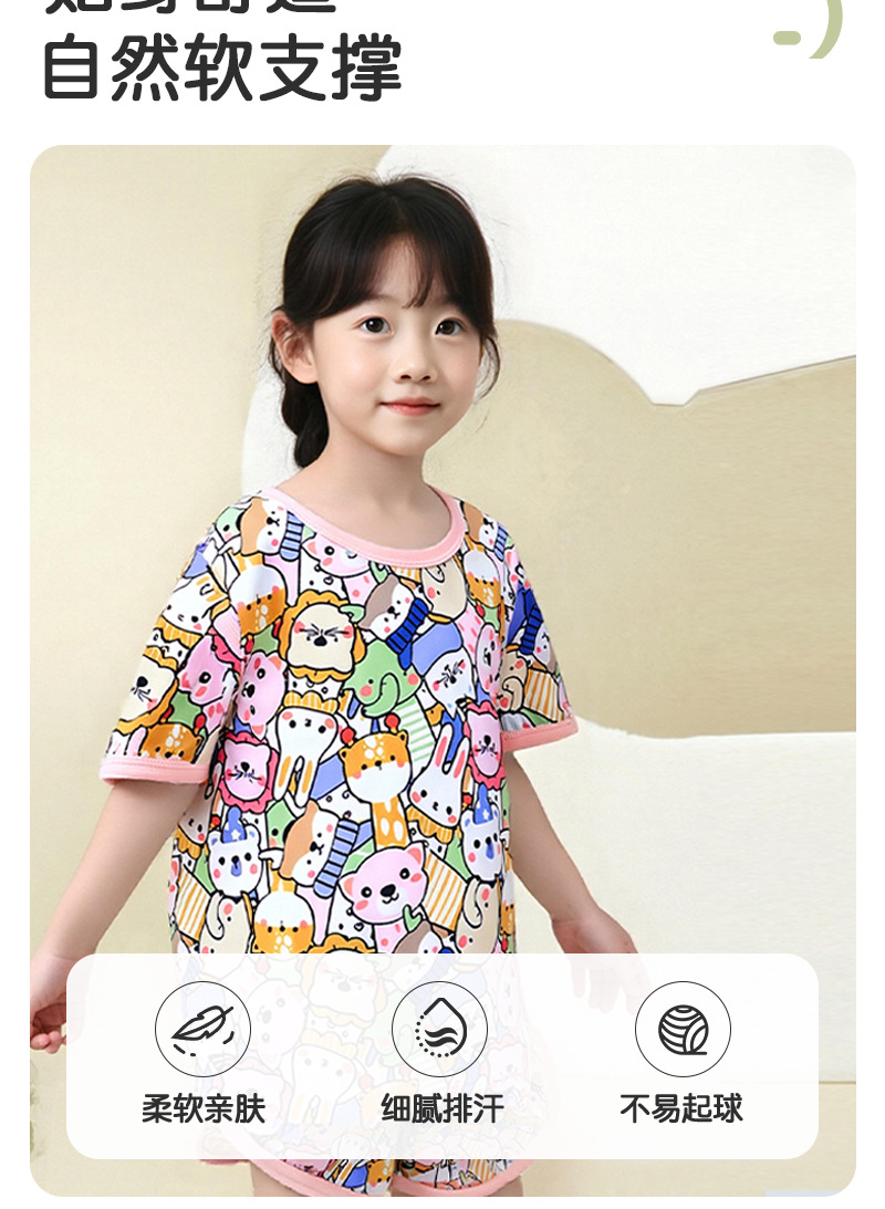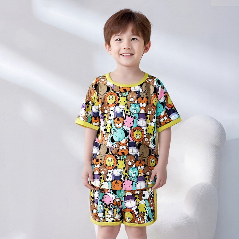 어린이 세트 아이스 실크 짧은 소매 반바지 여름 소년 소녀 만화 캐주얼 빠른 건조 티셔츠 투피스 아동복 도매스토어 가기