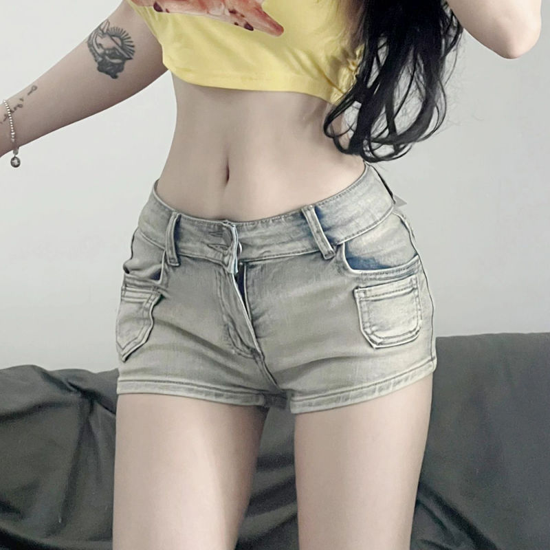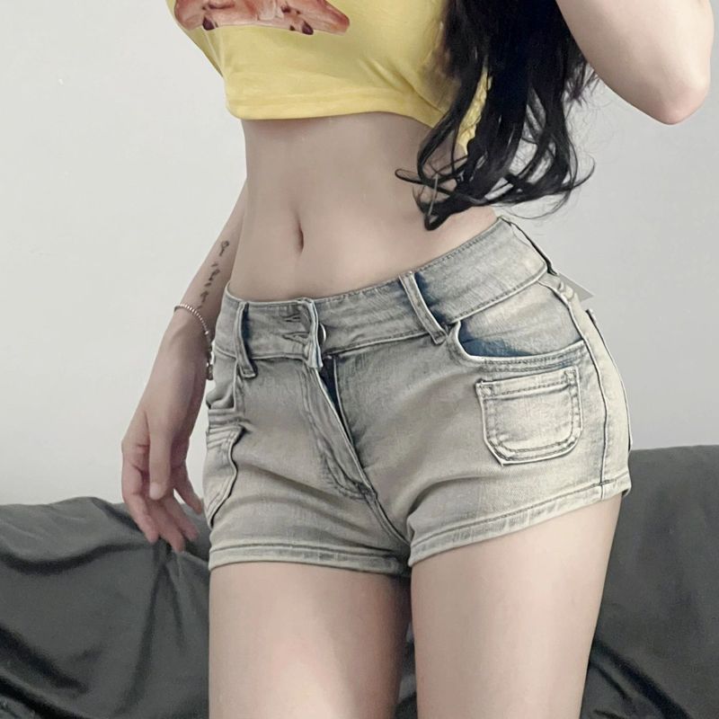 데님 반바지 여자 2024 새로운 여름 높은 허리 키 슬리밍 올매치 A-워드 레트로 올매치 와이드 레그 핫 팬츠스토어 가기