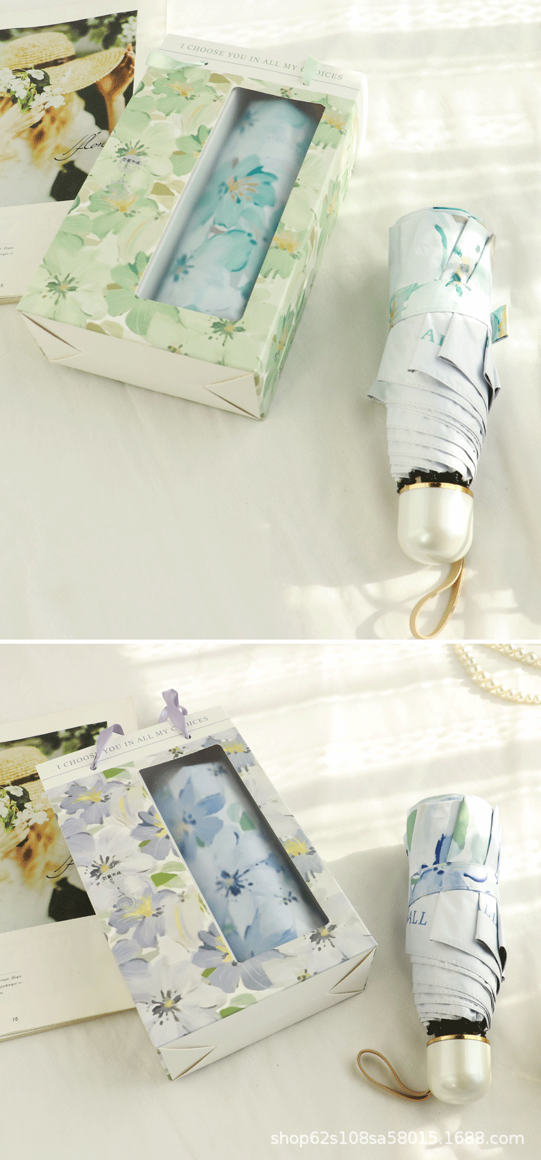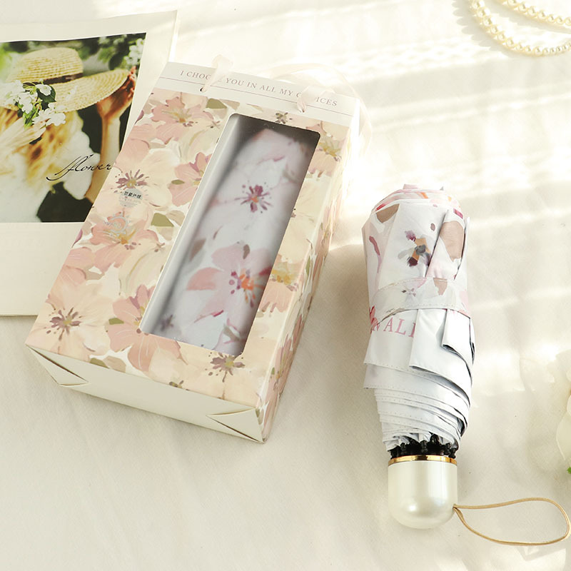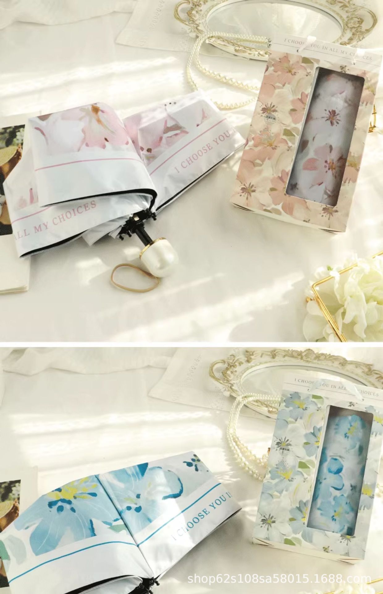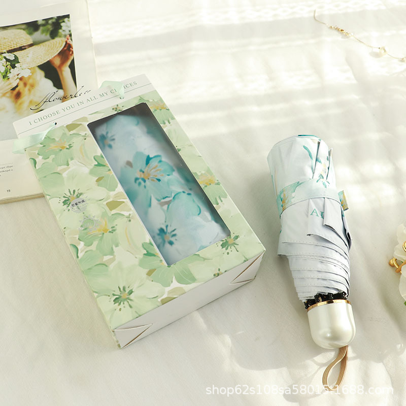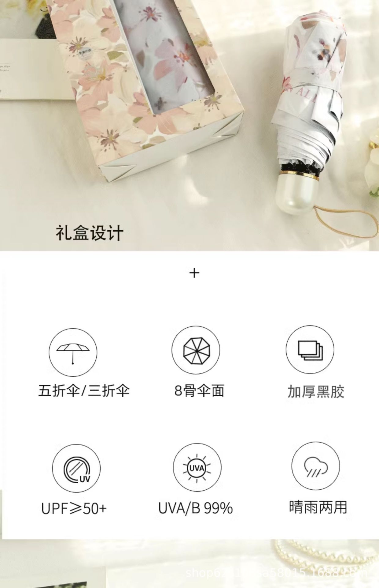 선물 상자 미니 소형 휴대용 5 배 우산 꽃 검은 접착제 자외선 차단 맑고 내수 있는 이중 사용 태양 우산스토어 가기