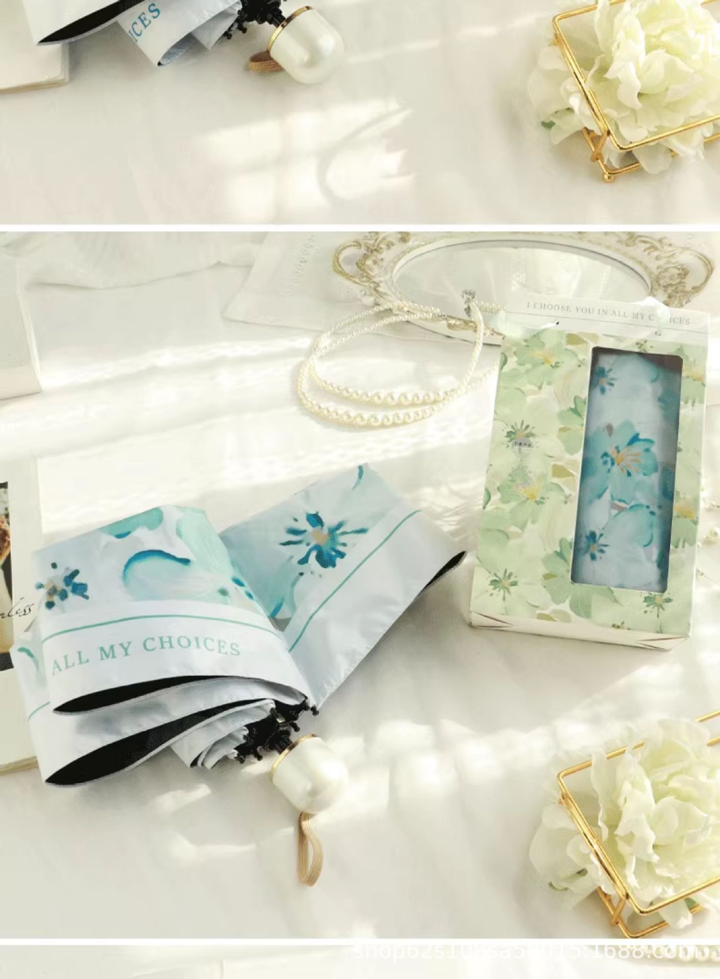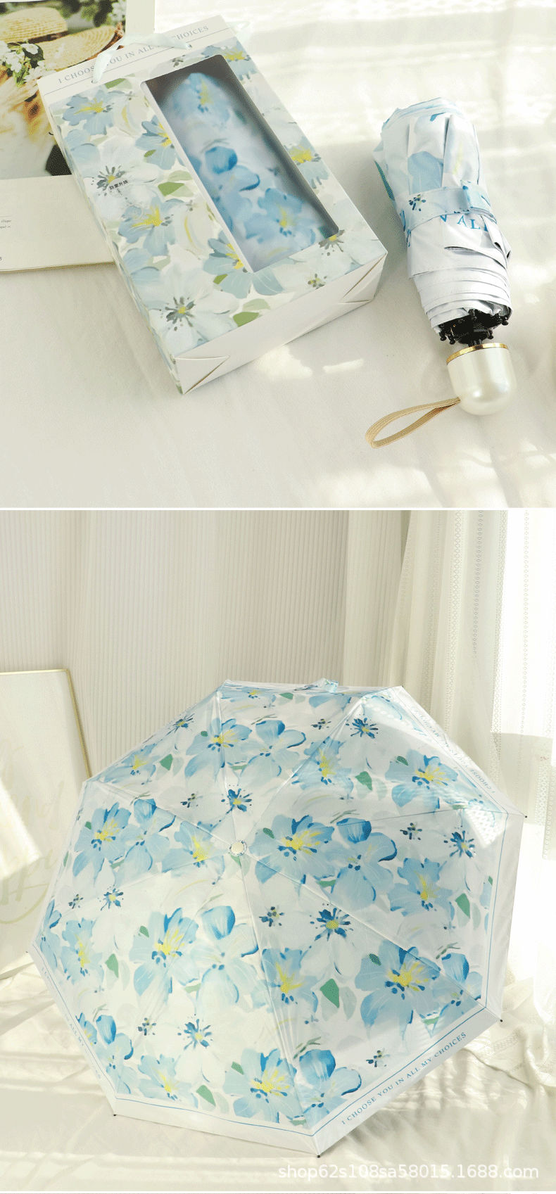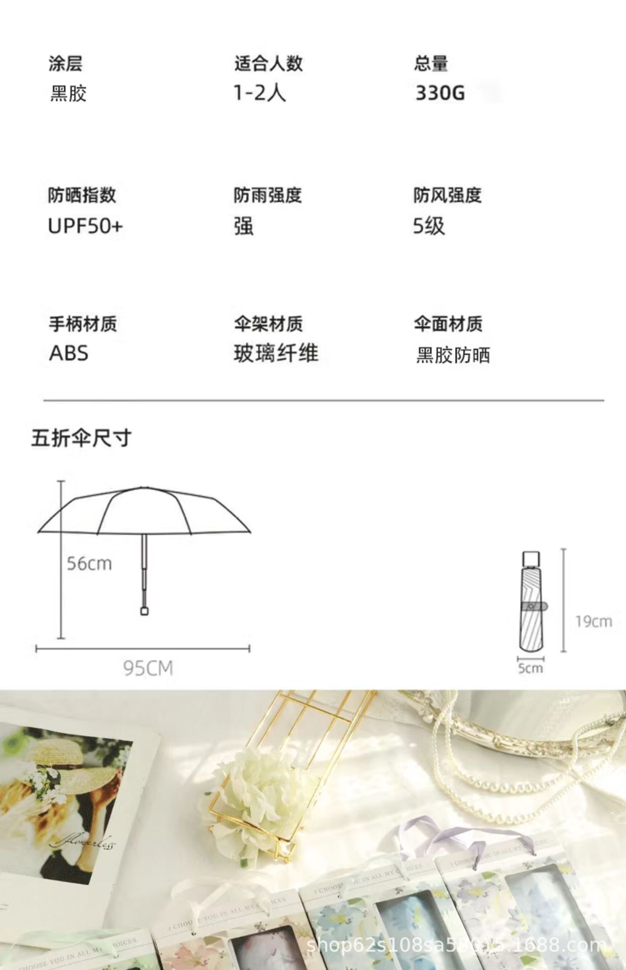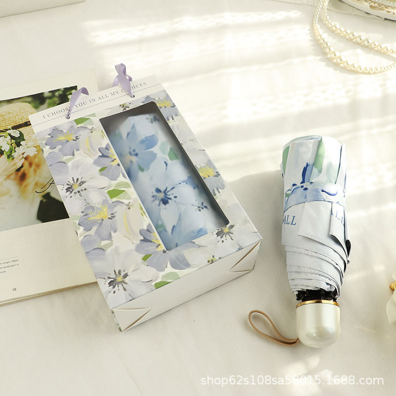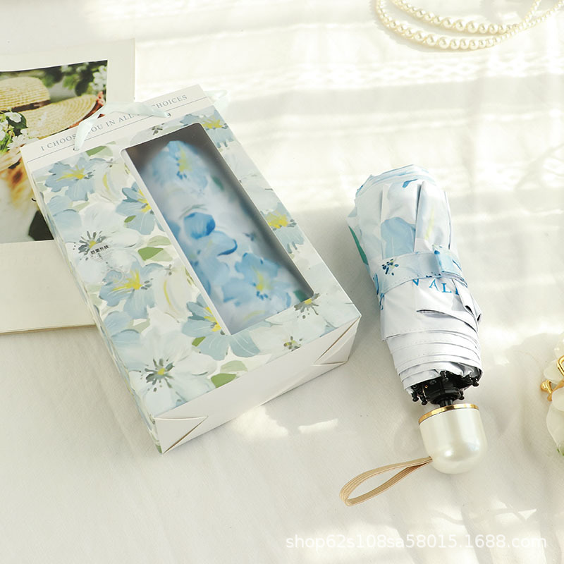 선물 상자 미니 소형 휴대용 5 배 우산 꽃 검은 접착제 자외선 차단 맑고 내수 있는 이중 사용 태양 우산스토어 가기
