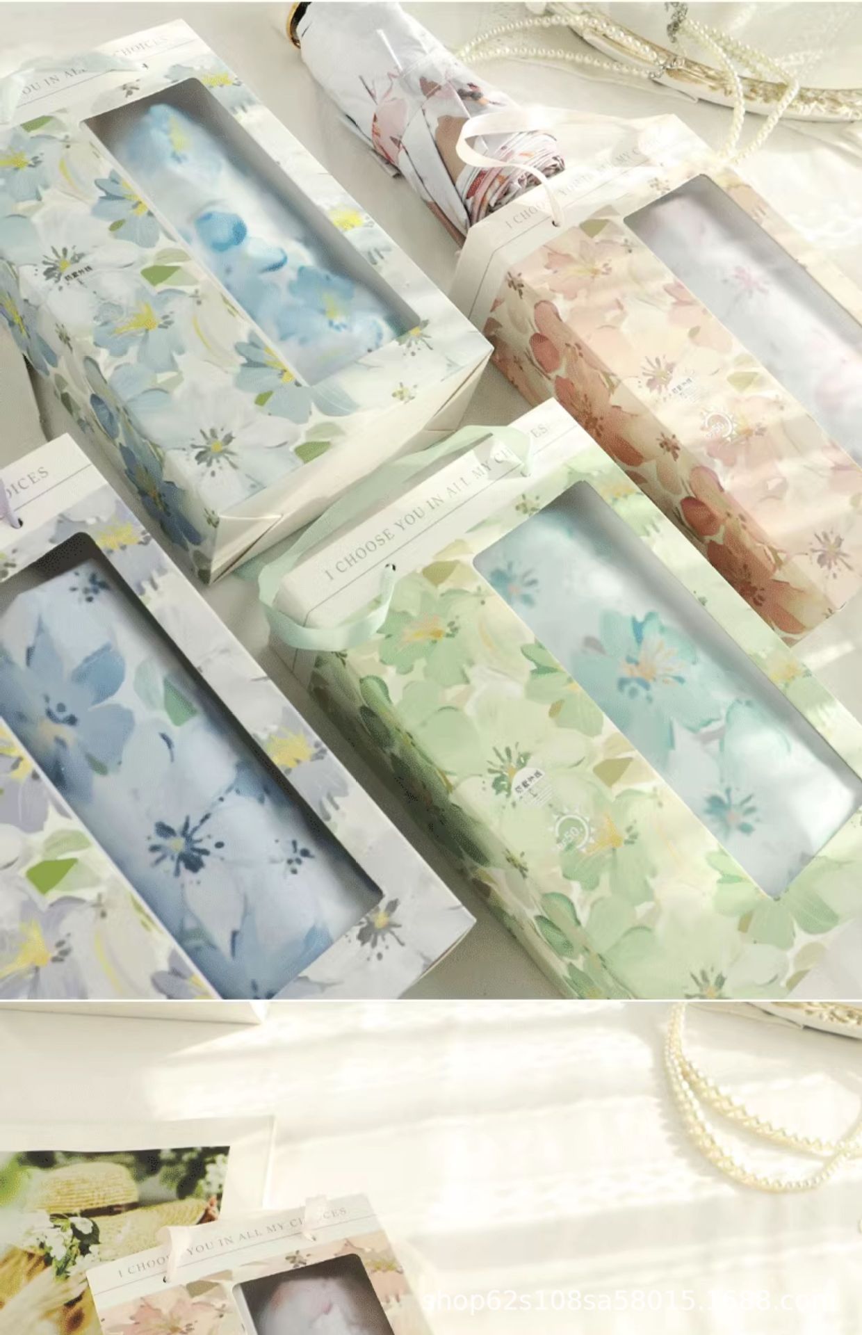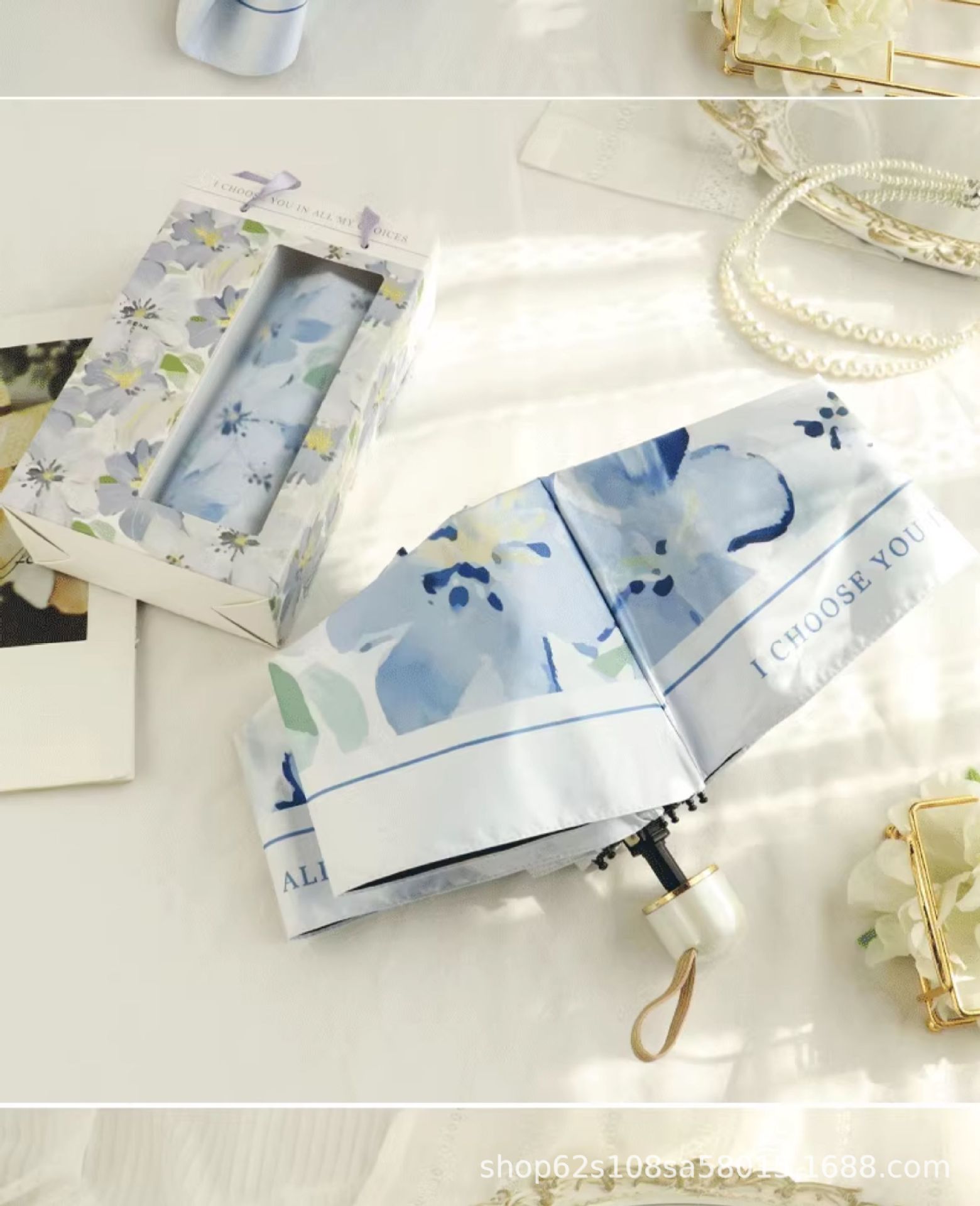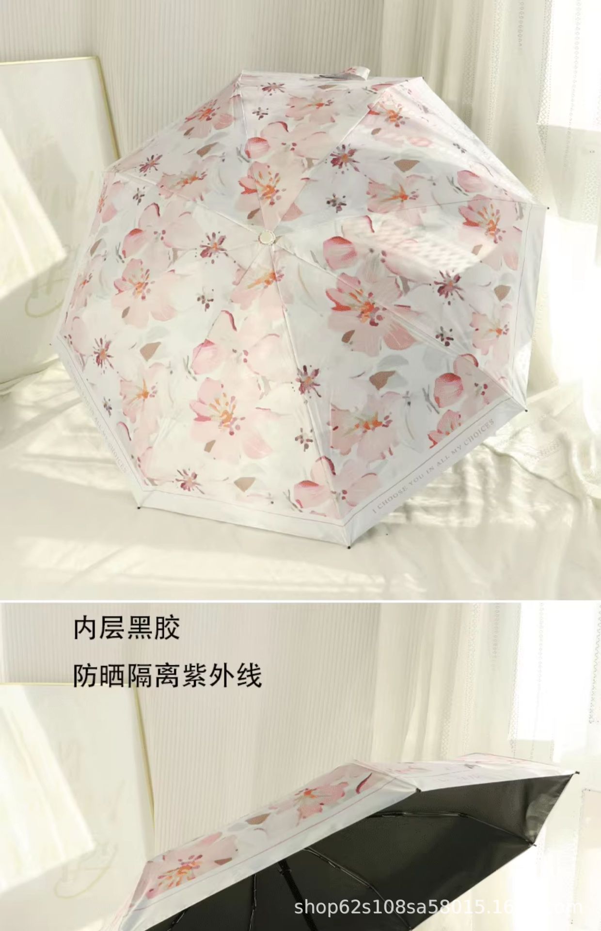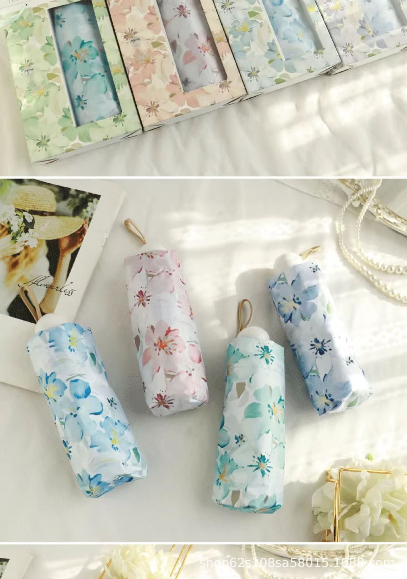 선물 상자 미니 소형 휴대용 5 배 우산 꽃 검은 접착제 자외선 차단 맑고 내수 있는 이중 사용 태양 우산스토어 가기