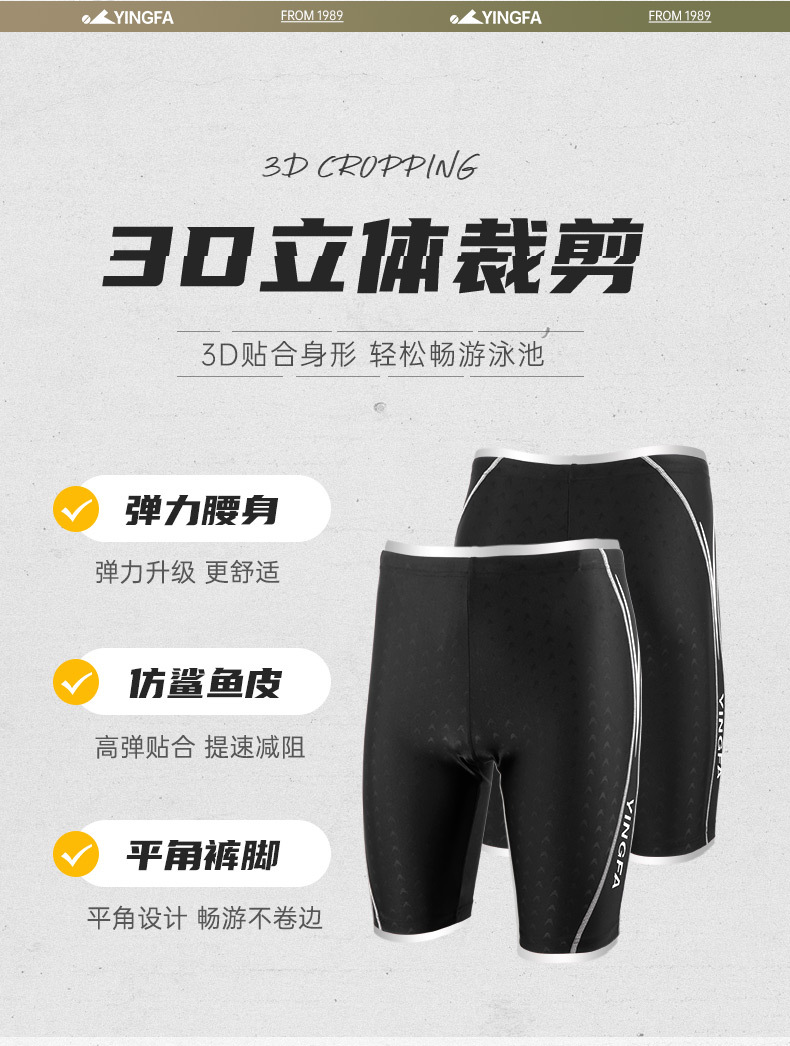 Yingfa 수영 트렁크 남자 전문 훈련 Sharkskin 수영 트렁크 2024 새로운 5 점 당황하지 않는 빠른 건조 수영 트렁크