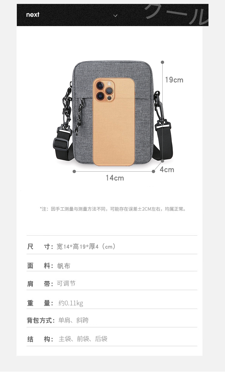 휴대 전화 가방 대용량 캔버스 경량 휴대용 소형 배낭 옥스포드 천 남성 가방 캐주얼 남성 어깨 크로스 바디 백