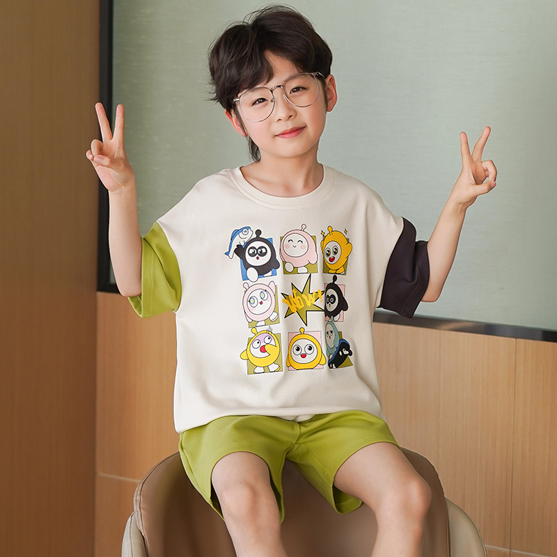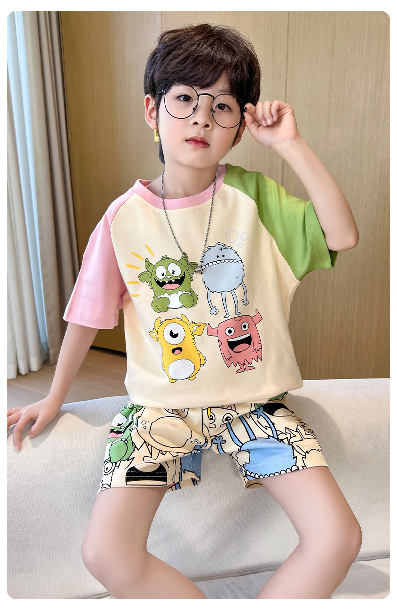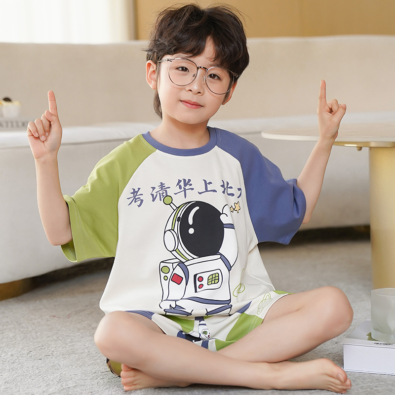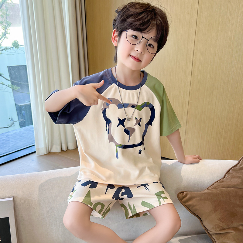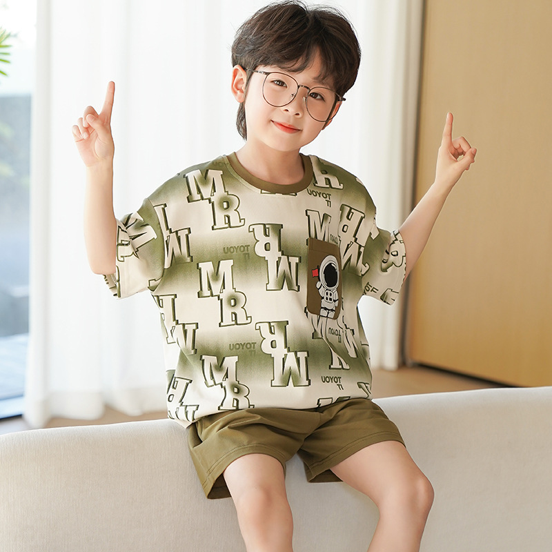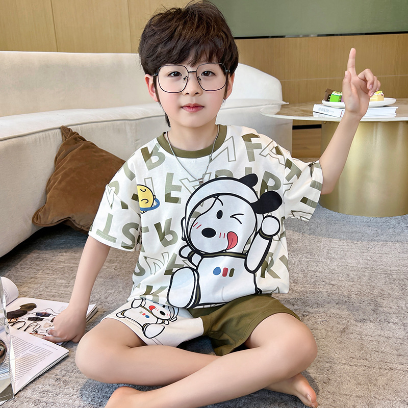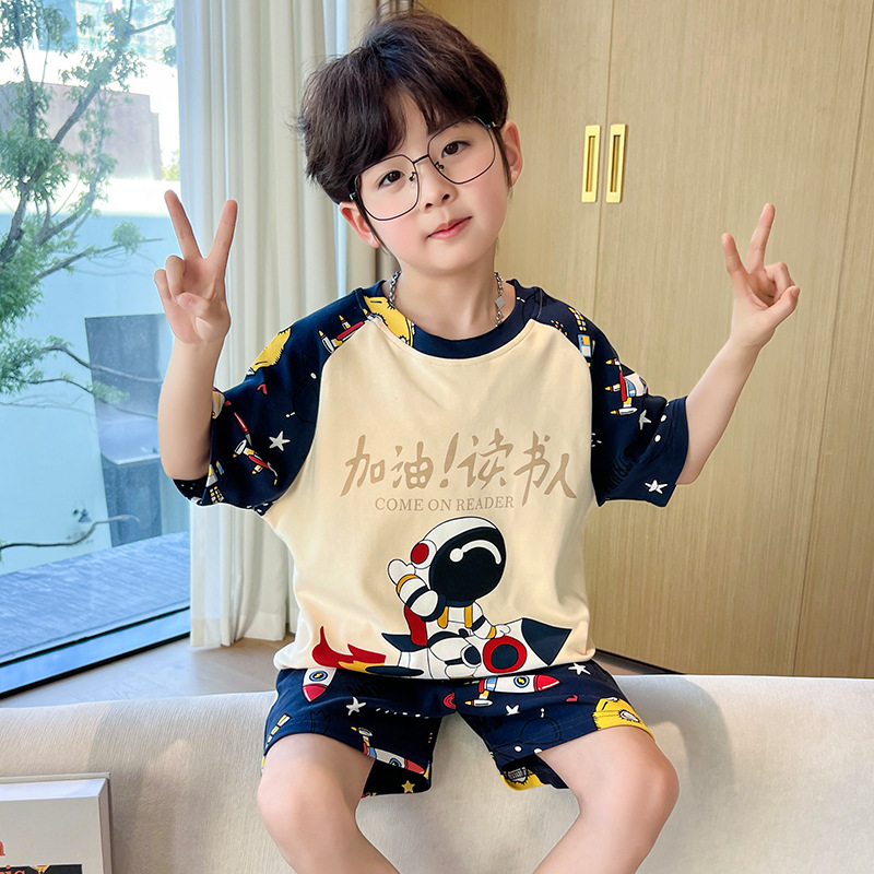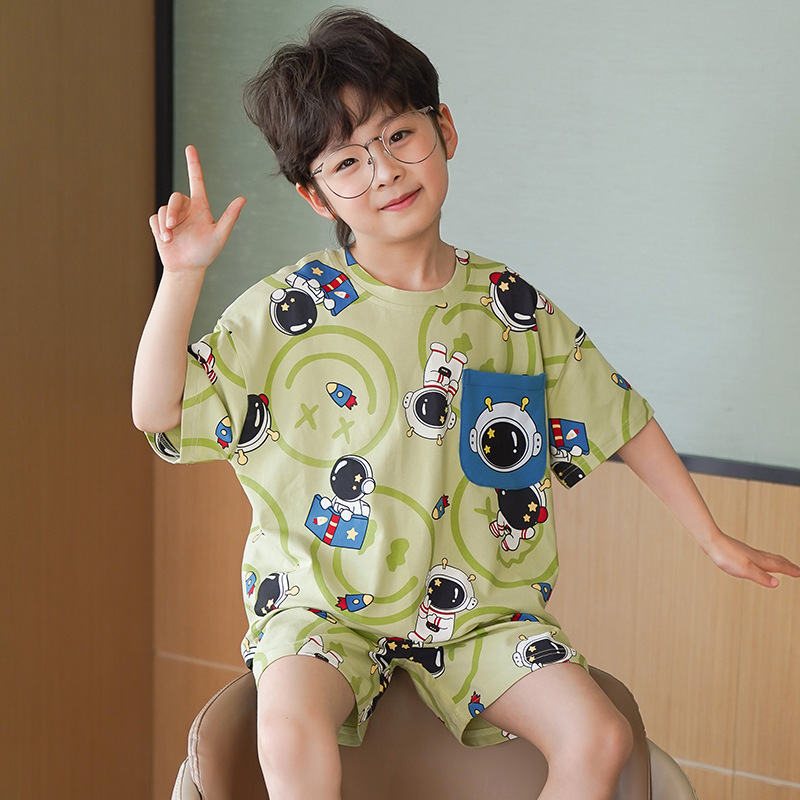 남학생 잠옷 여름 2024 새로운 순면 얇은 코튼 소년 중 큰 어린이 집 세트 여름스토어 가기