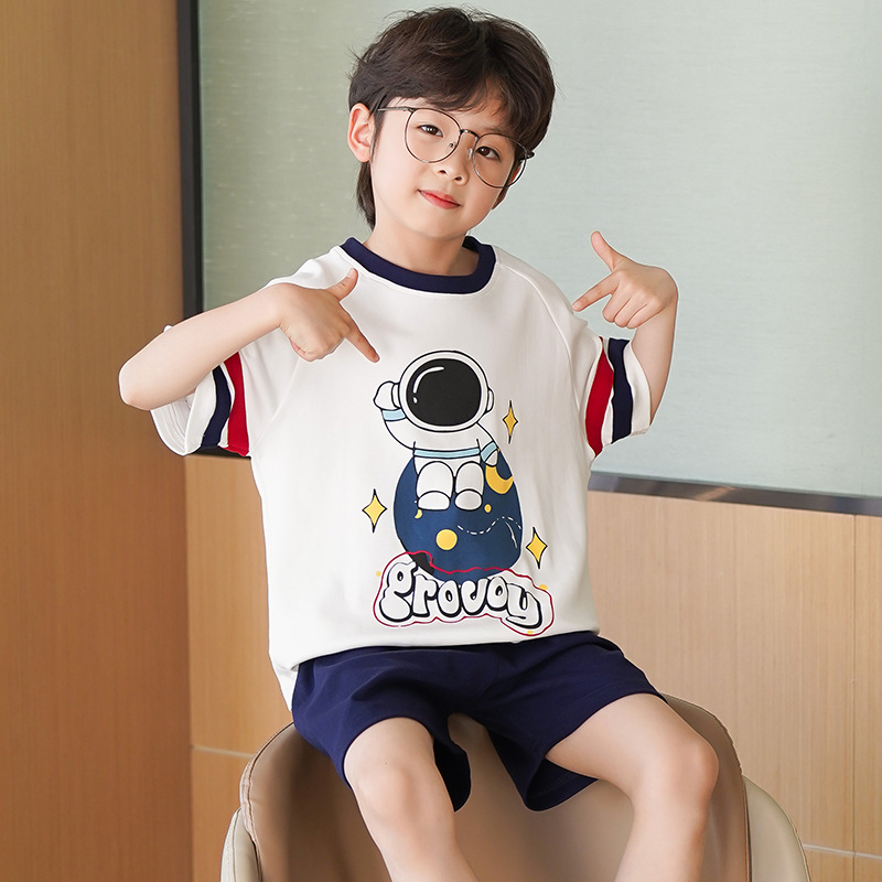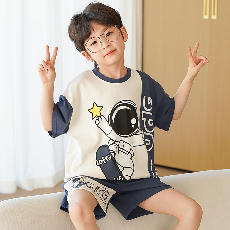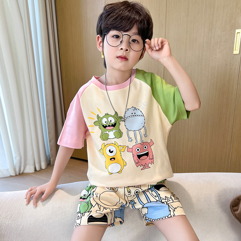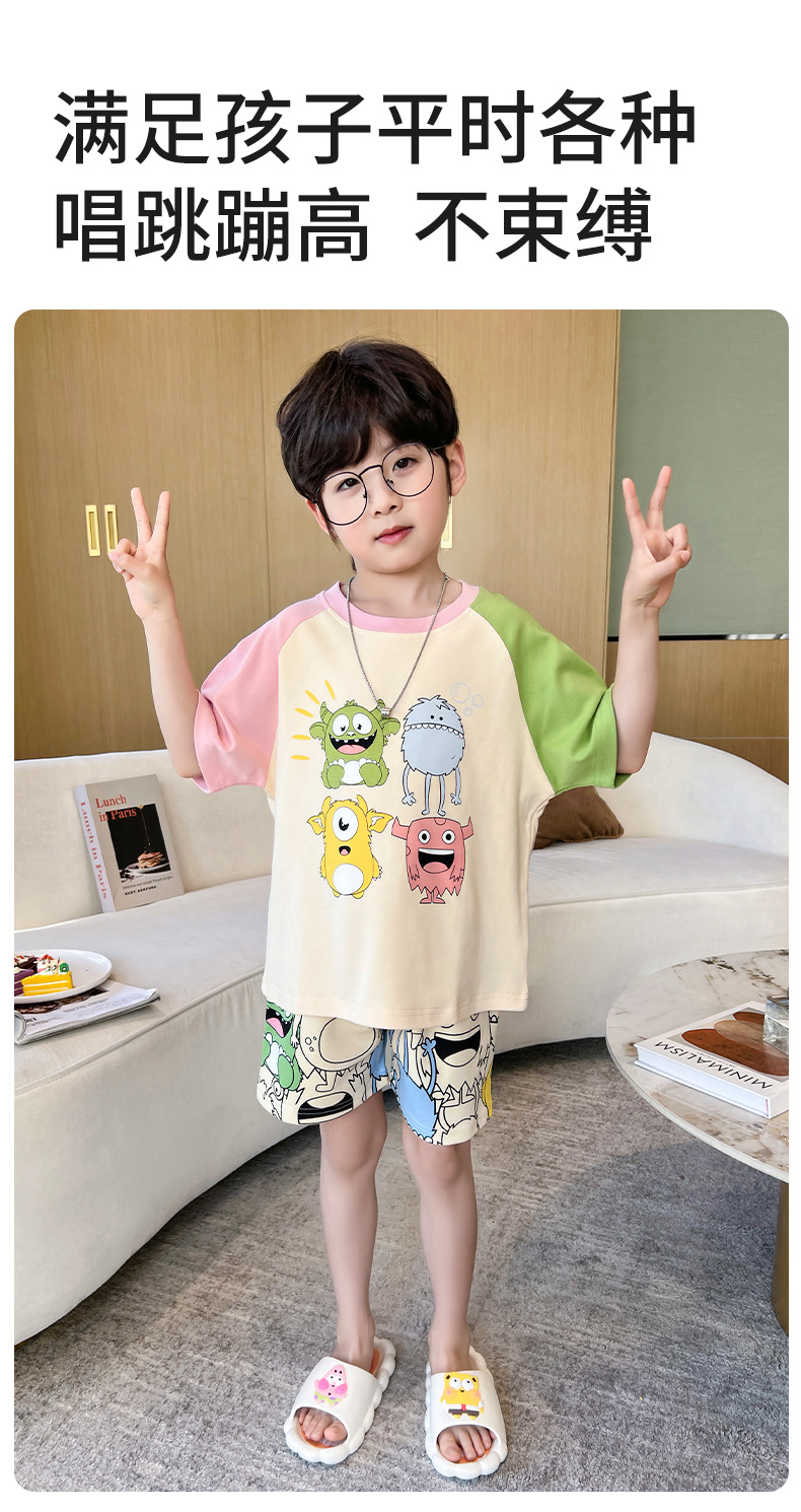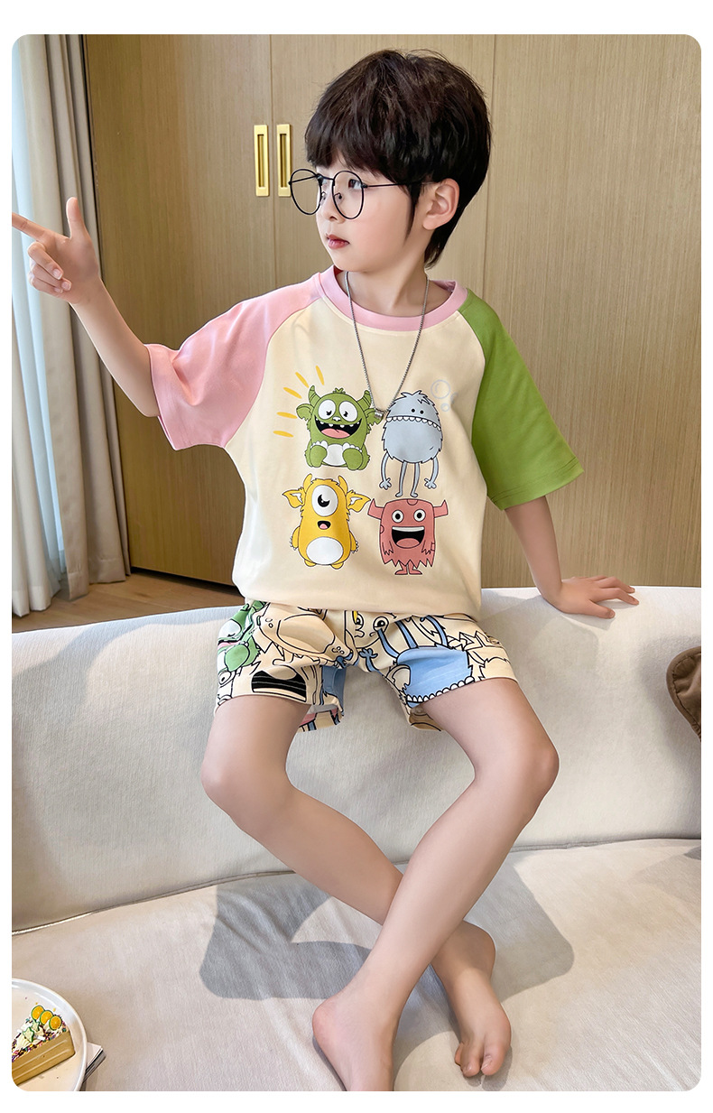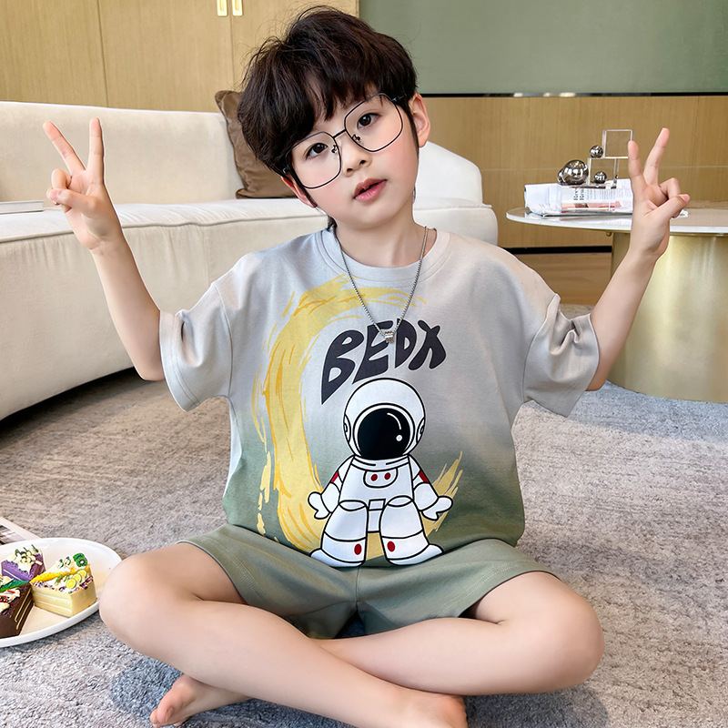 남학생 잠옷 여름 2024 새로운 순면 얇은 코튼 소년 중 큰 어린이 집 세트 여름스토어 가기