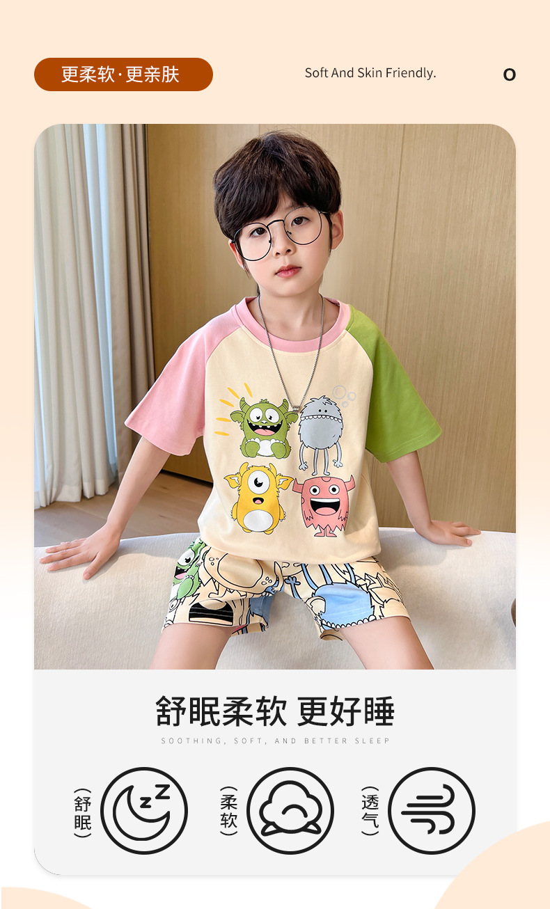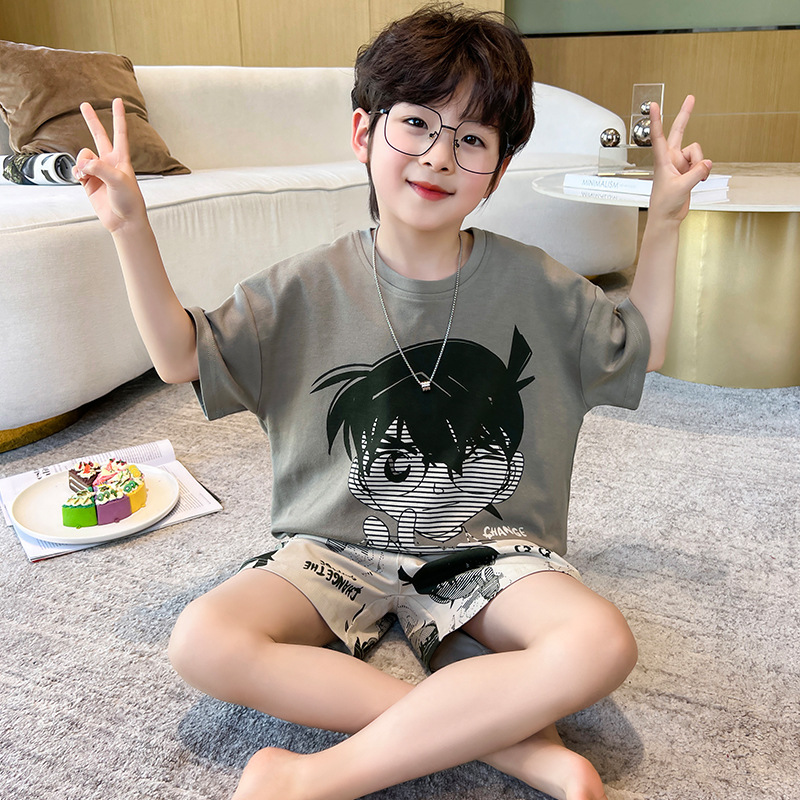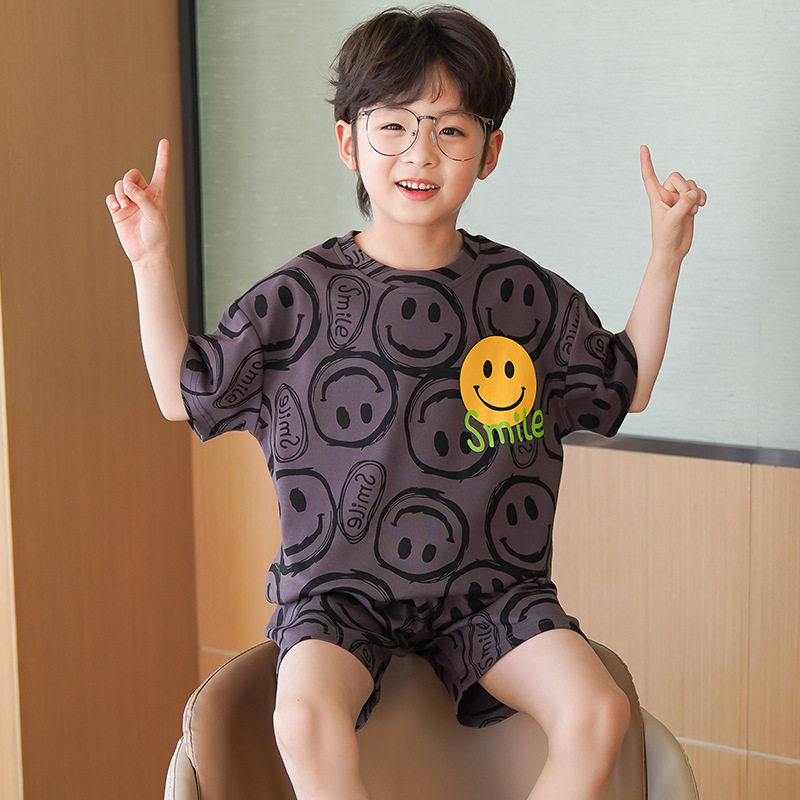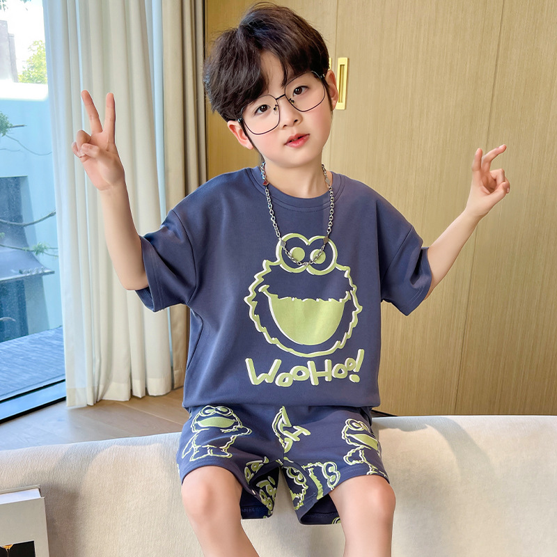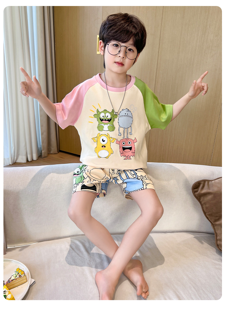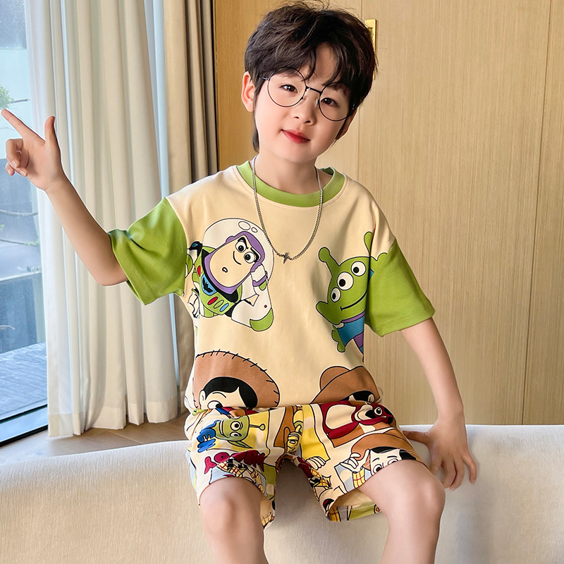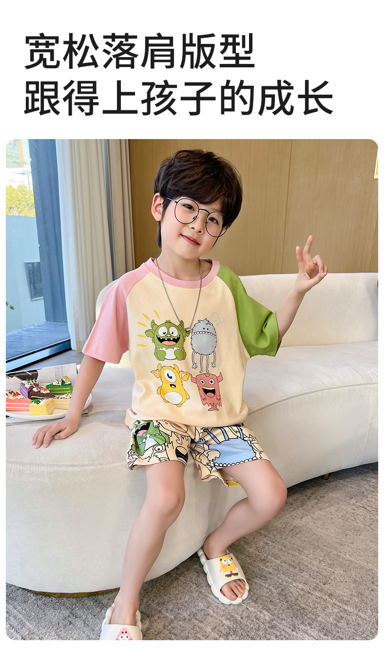 남학생 잠옷 여름 2024 새로운 순면 얇은 코튼 소년 중 큰 어린이 집 세트 여름스토어 가기