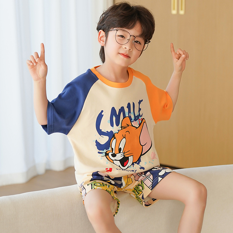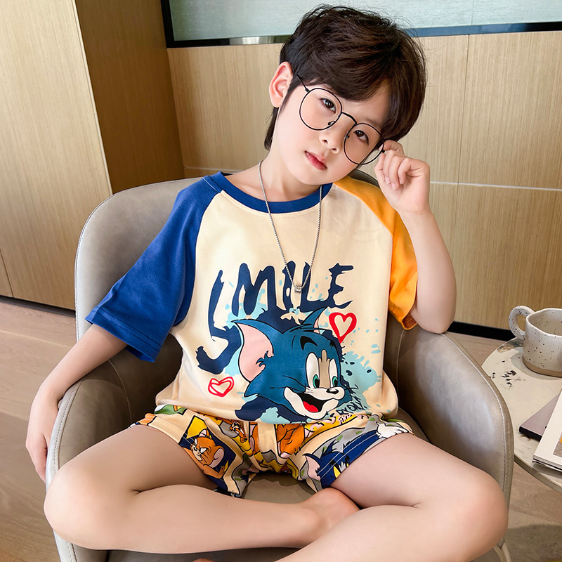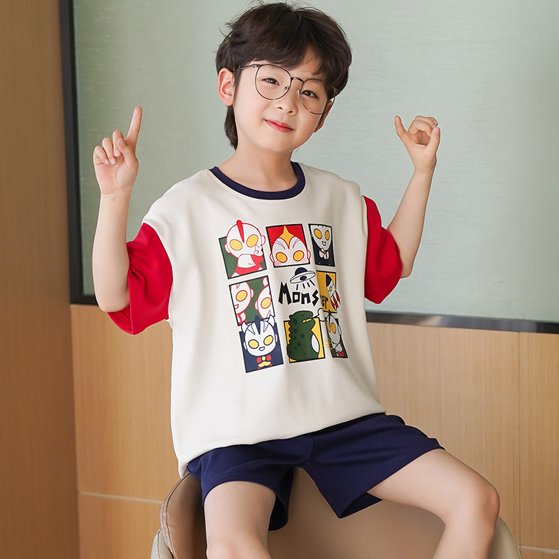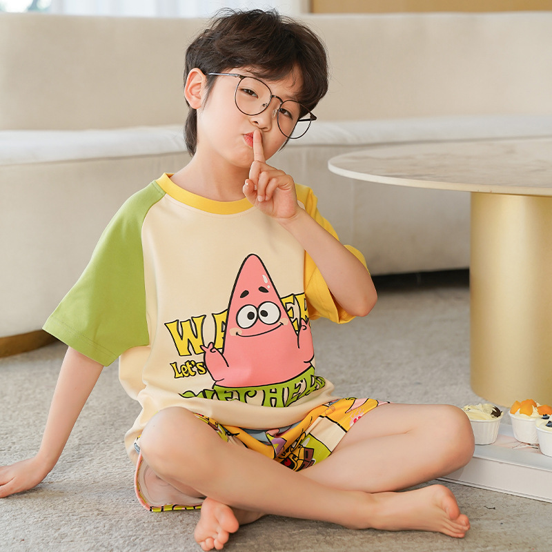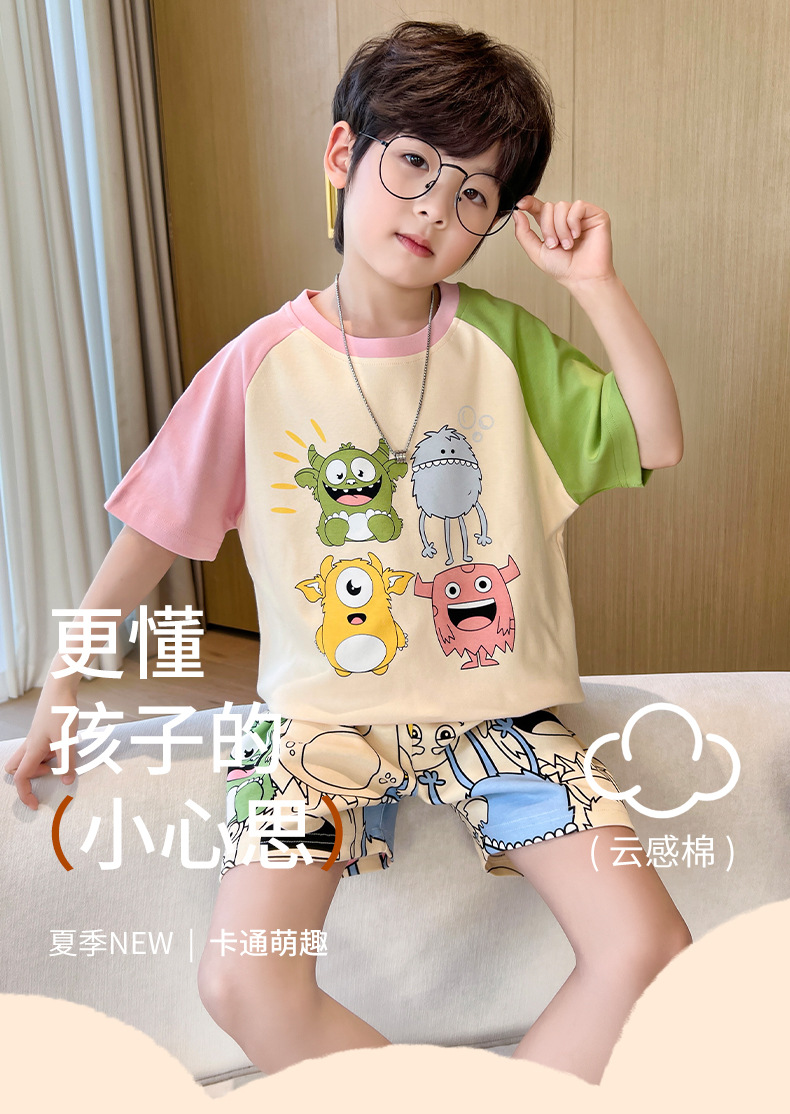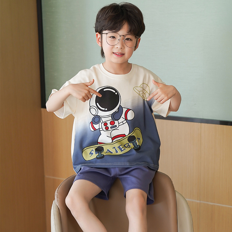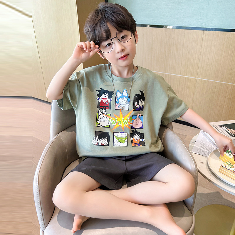 남학생 잠옷 여름 2024 새로운 순면 얇은 코튼 소년 중 큰 어린이 집 세트 여름스토어 가기