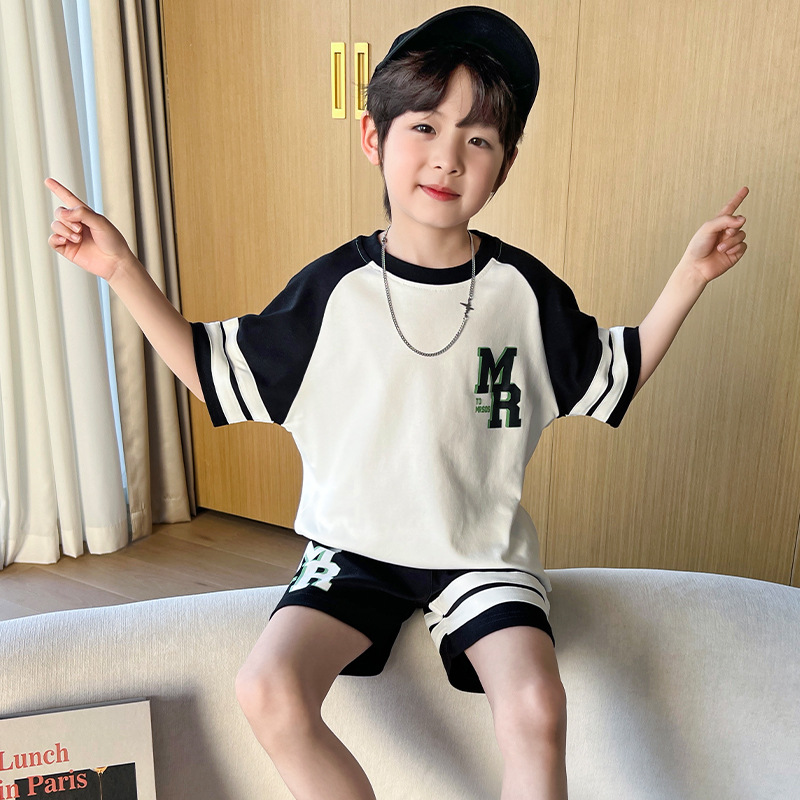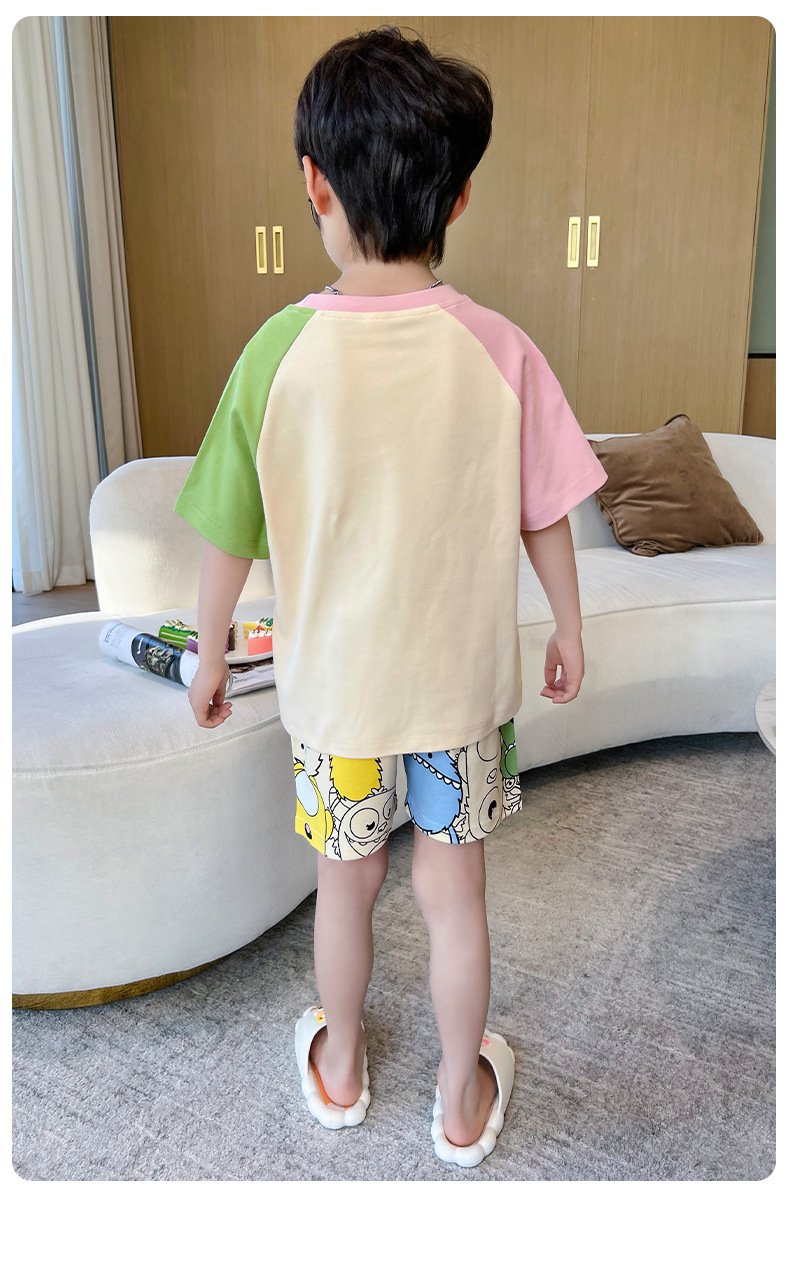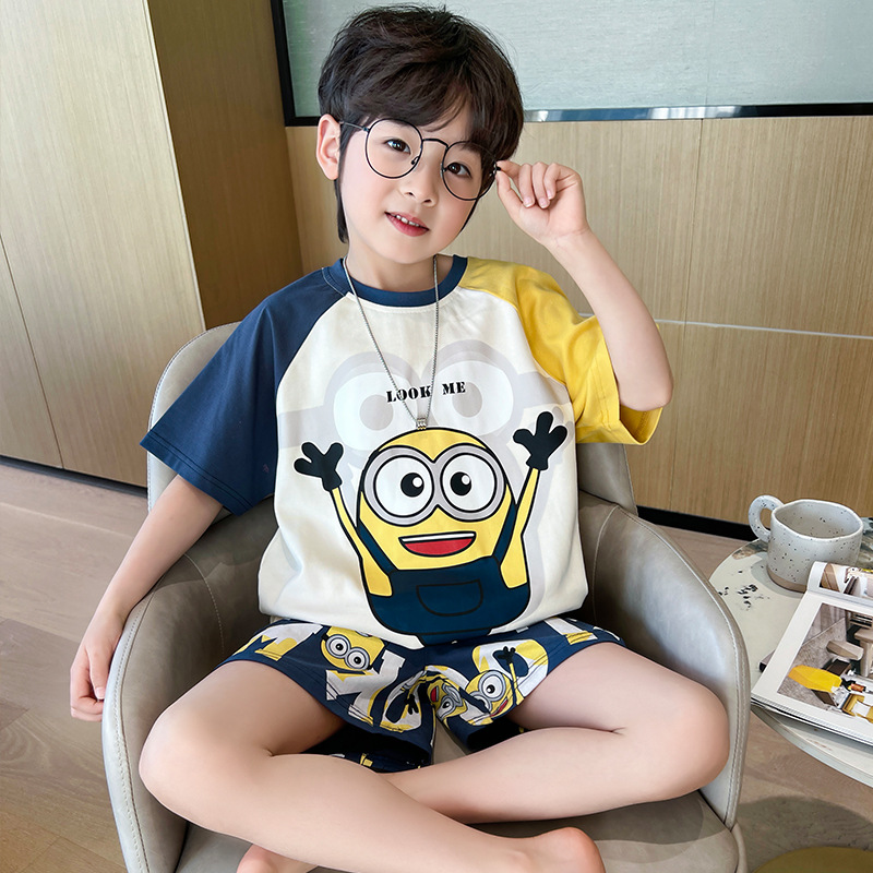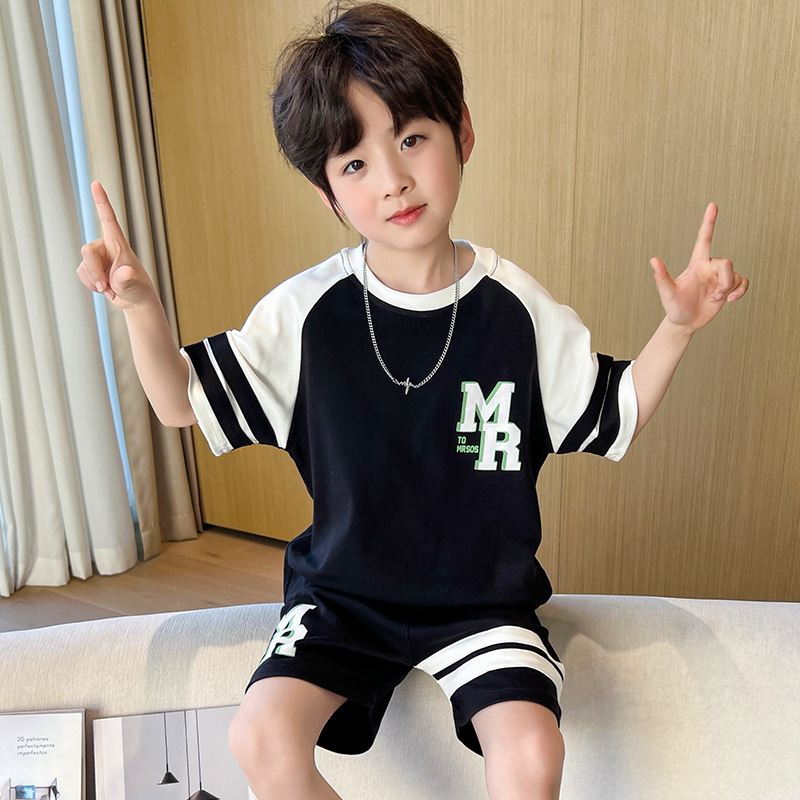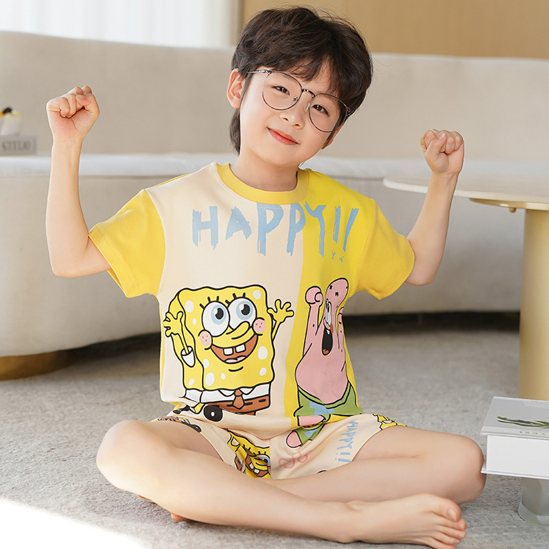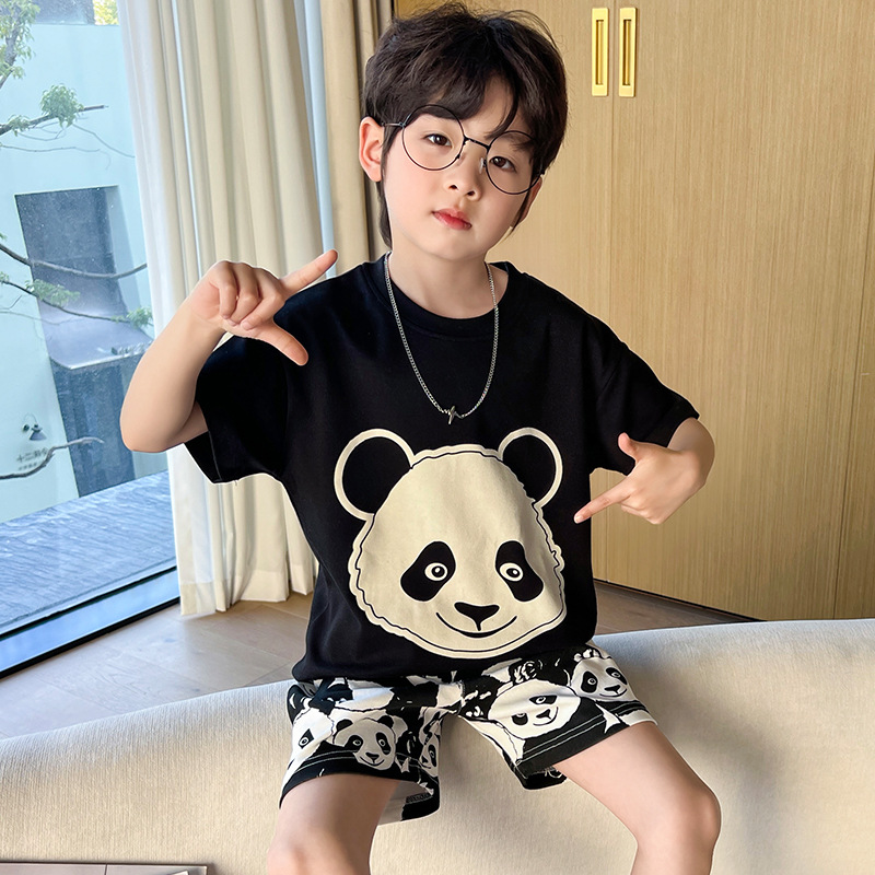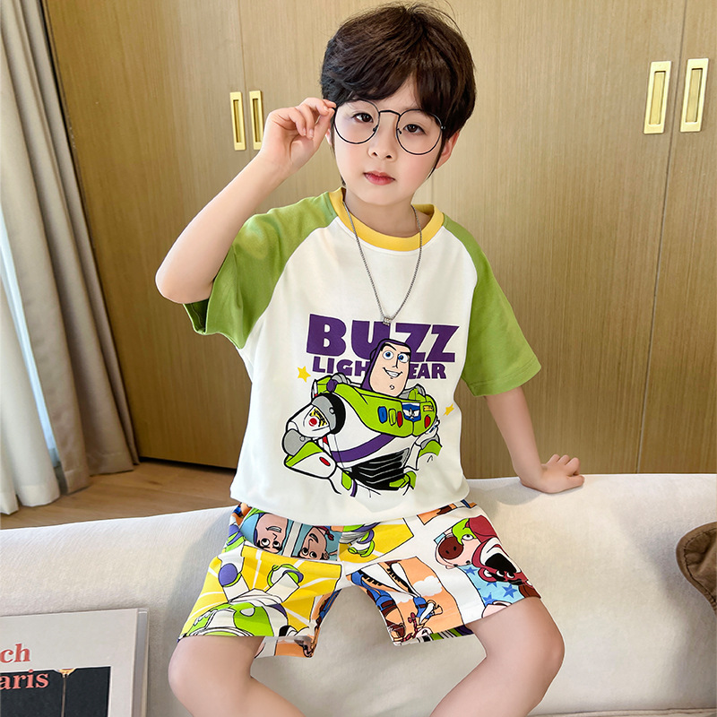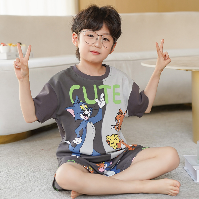 남학생 잠옷 여름 2024 새로운 순면 얇은 코튼 소년 중 큰 어린이 집 세트 여름스토어 가기
