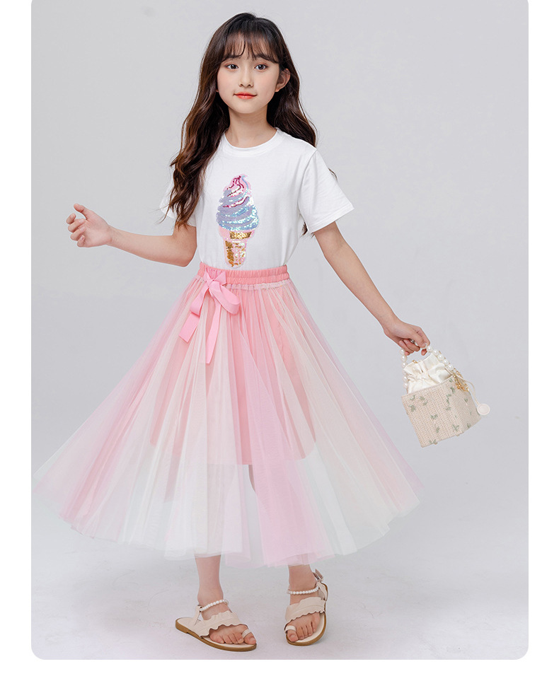새로운 대형 스윙 요정 소녀 어린이 컬러 매칭 소프트 메쉬 슬리밍 우아한 대형 및 중형 어린이 긴 원피스 활 치마스토어 가기