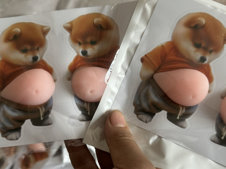 • 큰 배를 가진 강아지 한 쌍
